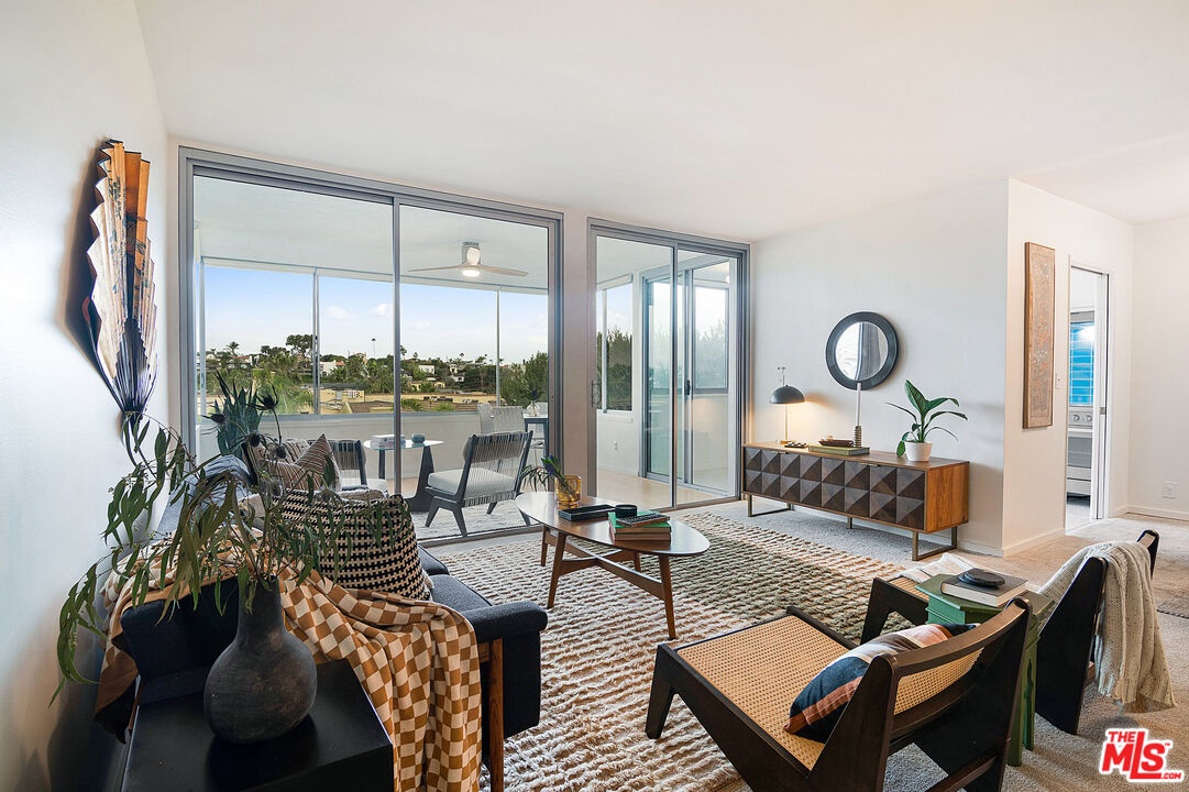 Briarcliff mid-century modern condo with tranquil west-facing exposure and beautiful sunset skies. Open floor plan features entry foyer, spacious living room with wet bar, dining area, and updated kitchen with high-end Bosch appliances/convection oven, quartz countertops, and period-inspired backsplash. Two private bedroom suites on opposite sides of the home offer upgraded bathrooms and excellent closet space. The primary suite enjoys dual vanities and an upgraded shower. Sun-filled enclosed patio with walls of glass extending the living room, kitchen, and secondary bedroom suite, creating seamless flow. Period specific terrazzo floors and lighting fixtures throughout. Thoughtful, significant upgrades completed for personal enjoyment; job relocation necessitates sale. Community amenities include a large, grassy central courtyard, pool, and lounging areas. Two tandem parking spaces in a secure garage plus additional private storage. Enjoy elevated coastal living in the heart of Silicon Beach, several blocks to Playa Del Rey Beach and to a wide array of shops, dining, and nightlife. Building has EQ insurance. HOA has approved in unit Washer/Dryer installation.