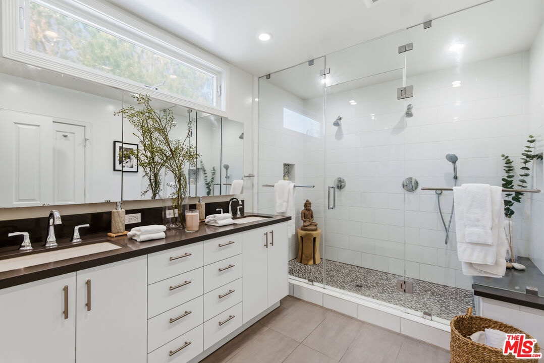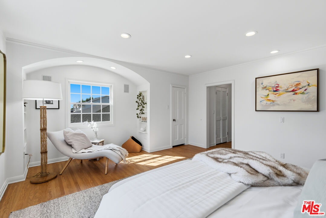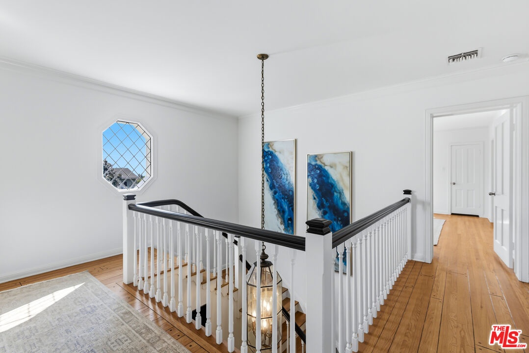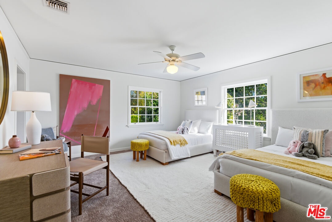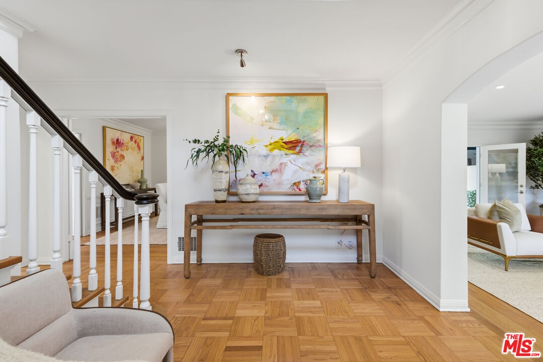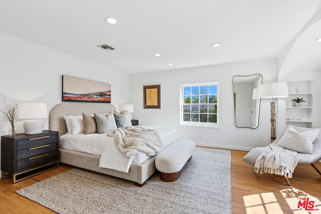 Nestled in the prestigious and highly coveted Westwood Hills neighborhood, north of Montana Avenue, this beautifully maintained 4-bedroom, 3.5-bathroom Traditional home offers timeless elegance, warmth, and beautifully integrated outdoor living. The two-story foyer reveals a gracious floor plan leading into a spacious step-down living room featuring classic Colonial Revival millwork, including wainscoting, framed medallions, crown molding, and hardwood floors, creating an inviting space rich in character. The formal dining room is ideal for gatherings, while the charming breakfast room provides a relaxed setting for everyday living, both of which open to the outdoor entertaining areas. A beautiful den with built-ins, and diamond-pane leaded glass casement bay window offers an additional warm and inviting retreat. The kitchen is appointed with a Viking range and Sub-Zero refrigerator. The main level also includes an en-suite bedroom and a traditional powder room. Upstairs, the bright and airy primary suite offers comfort and functionality, featuring a charming reading nook, dual closets, and a spacious spa-like bathroom with a large shower. An additional upstairs bedroom is generously sized with ample closet space and connects via a Jack-and-Jill bathroom to another bedroom, which opens to a porch overlooking the backyard. Designed for effortless entertaining, the home opens to a large, flat backyard framed by a magnificent Chinese Elm canopy. The expansive outdoor space features a sport court, built-in barbecue, warming drawer, outdoor television area, overhead heaters, and an area for al fresco dining and gathering, ideal for enjoying Southern California's year-round indoor-outdoor lifestyle. Ideally located near UCLA and within the highly sought-after Warner Avenue Elementary School district, offering close proximity to Westwood Village, Century City, Brentwood, and access to world-class dining, shopping, and entertainment while maintaining the tranquility of a residential neighborhood.