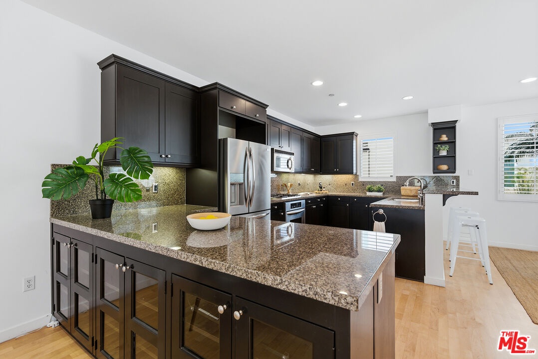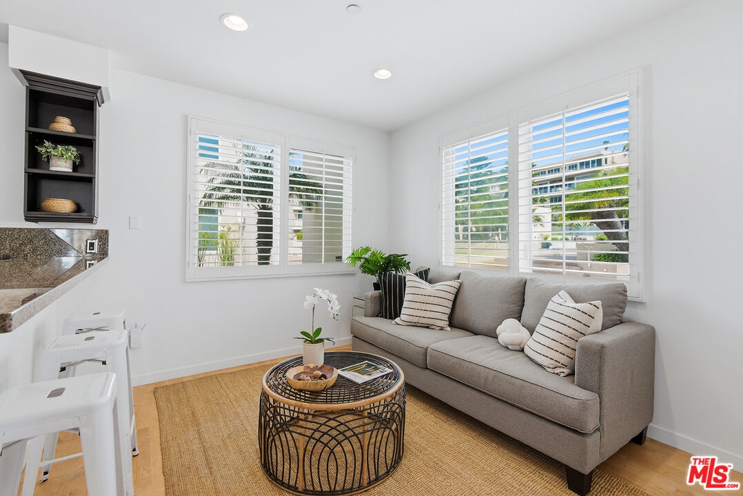Bright and airy 3 bed, 3 bath corner townhome with spectacular ocean views. Just steps from the sand with private beach access in the exclusive Breakers community, this home offers effortless coastal living. Enter into the oversized, light-filled living room featuring high ceilings, hardwood floors, and an expansive front patio perfect for entertaining. A lovely fireplace separates the living and dining areas, creating a warm and inviting flow. The dining area opens to a well-appointed chef's kitchen with stainless steel appliances, granite countertops, ample cabinet space, and a breakfast bar. Just off the kitchen is a versatile sitting area ideal for a home office or flex space. Upstairs, you'll find three bedrooms, including a large primary suite with a private balcony overlooking the ocean, a spacious walk-in closet, and a luxurious en-suite bathroom with dual sinks, a soaking tub, and a glass-enclosed shower. Two additional generously sized bedrooms and a shared bathroom complete the upper level. Additional features include a spacious laundry room, two side-by-side parking spaces, private storage, and plenty of guest parking. Resort-style amenities include a pool, spa, gym, basketball court, clubhouse, and beautifully maintained grounds. A rare Playa del Rey beach retreat, just moments from trendy restaurants, boutiques, and coffee shops, offering the perfect blend of serenity and vibrant community life.