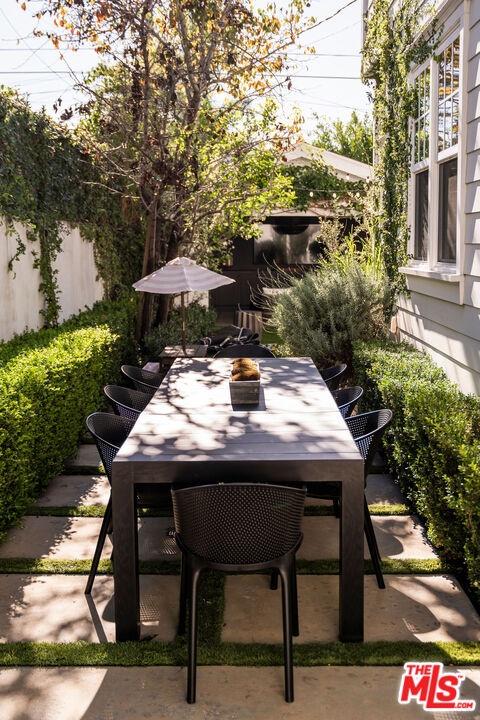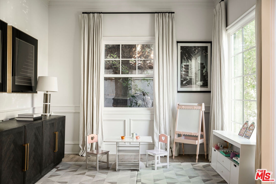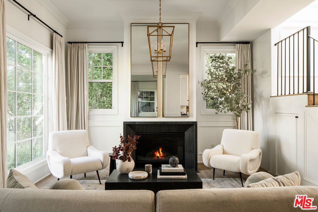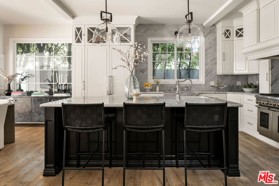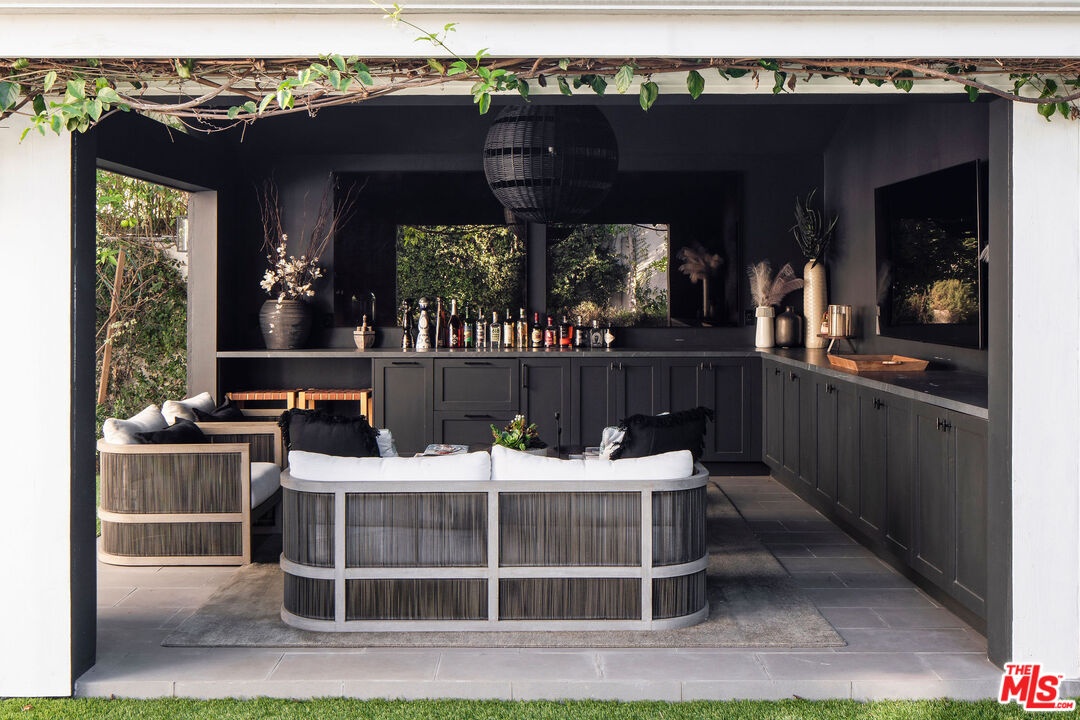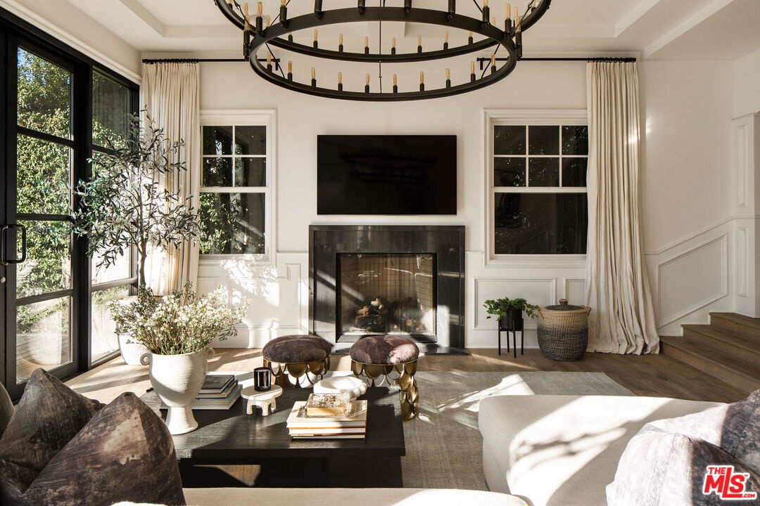 Situated in prime Beverly Grove, this warm and elegant Traditional residence offers timeless design and refined luxury living. Gated and maturely hedged for complete privacy, this beautifully curated 4-bedroom, 5-bathroom home offers inviting indoor and outdoor living spaces designed for comfort and effortless entertaining. The home features a gracious formal living and dining room alongside an open-concept kitchen finished with Statuario marble, Ann Sacks and Tabarka encaustic tiles, and custom iron-cast doors. High ceilings and distressed French oak floors throughout create a sense of warmth, character, and understated sophistication. The thoughtfully designed floorplan includes one guest bedroom on the main level and three bedrooms upstairs, each with its own en-suite bathroom ideal for comfortable family living and hosting guests. The expansive primary suite is a serene retreat, complete with a generous walk-in closet with custom built-ins and a spa-like bathroom designed for relaxation. The grand living room opens seamlessly to a lush backyard, featuring a sparkling pool, entertainer's cabana, and a large grassy area perfect for gatherings, play, and everyday indoor-outdoor enjoyment. Ideally located moments from The Grove, Beverly Center, and Melrose Place, with close proximity to premier dining and shopping, this turnkey residence offers a rare blend of warmth, elegance, and prime city living.