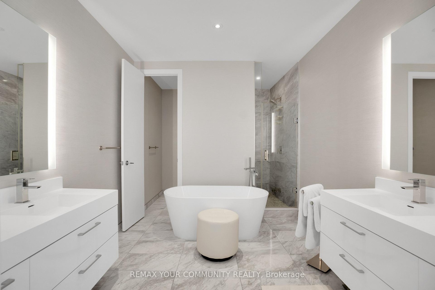 Fully furnished true executive suite in the heart of Yorkville! This Penthouse Collection unit is the architect's own one of a kind design with 3 bedrooms and a fully enclosed den with custom desk/full size murphy bed (1900sqft appr.) 4 bathrooms (each bedroom has its own plus a powder room!), 10 foot ceilings, a sumptuous primary bedroom suite (oversized for King bed),with a large walk-in closet and a spa-like bath (his & hers vanities, standalone tub, bidet &toilet room) clad in marble and adorned with opulent wallpaper. Approx. 200K in upgrades including incredible storage/built-ins, a designer marble living room wall with large Samsung Frame TV, and full size appliances. Two guest rooms are furnished with a full-sized bed and daybed that turns into a king size bed. Beautiful furnishings cared for by the owners. 1 parking incl. Short term 1 mo min. Available as of February 16th. All inclusive including internet and cable.