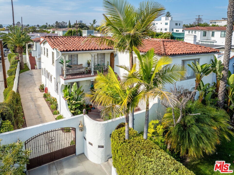 1930s GRAND VILLA SPANISH TROPHY TRIPLEX COMPOUND. Rare opportunity to own a character-rich Spanish compound in coveted Longwood Highlands, blending timeless architecture with thoughtful modern upgrades. The front duplex features two expansive 3-bedroom, 2-bath residences with oversized rooms, abundant natural light, and refined period details throughout. The rear 2-bedroom, 1-bath unit sits privately above the 4-car garage, offering separation and flexibility. Set behind a perimeter wall with an electronic gated driveway , this compound delivers privacy, security, views from the upper units and exceptional curb appeal. A private hedged front yard with mature, lush landscaping and intercom system welcomes you into a beautifully maintained courtyard setting with classic wrought iron detailing. High-end improvements include solid slab Italian marble wainscots, tile floors and countertops, designer fixtures, refurbished period lighting and energy-efficient systems. Major infrastructure upgrades include updated plumbing, electrical, and sewer lines. Additional features include beautiful oak hardwood floors, A/C, individual gas and electric meters, common area lighting as well as an abundance of off-street parking. The extra-large lot includes strong in-place rents, creating an attractive income profile with long-term upside potential. Upper level owner's 3 Bed unit will be delivered vacant, presenting an exceptional opportunity for an owner-user or investor. A rare blend of scale, character, privacy, and income in one of the area's most desirable neighborhoods.
