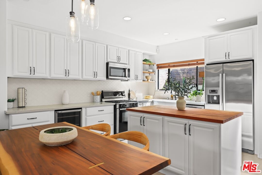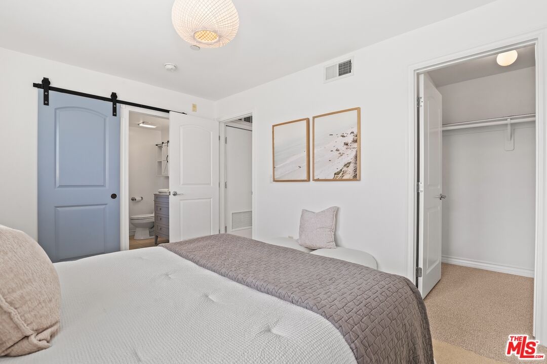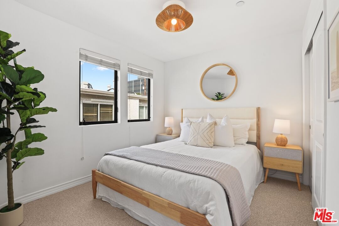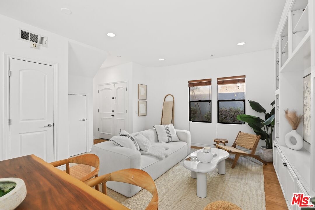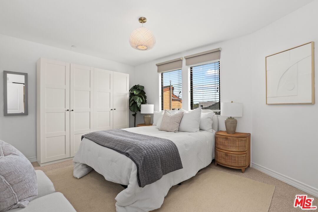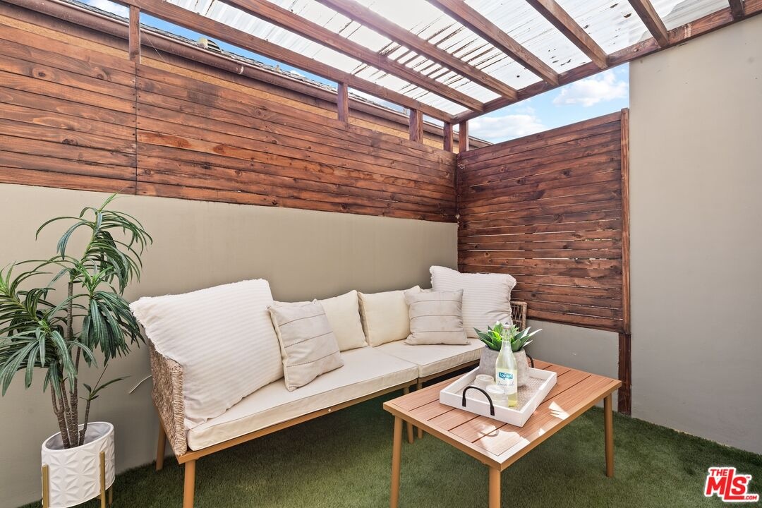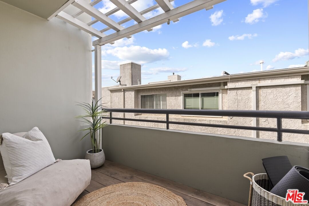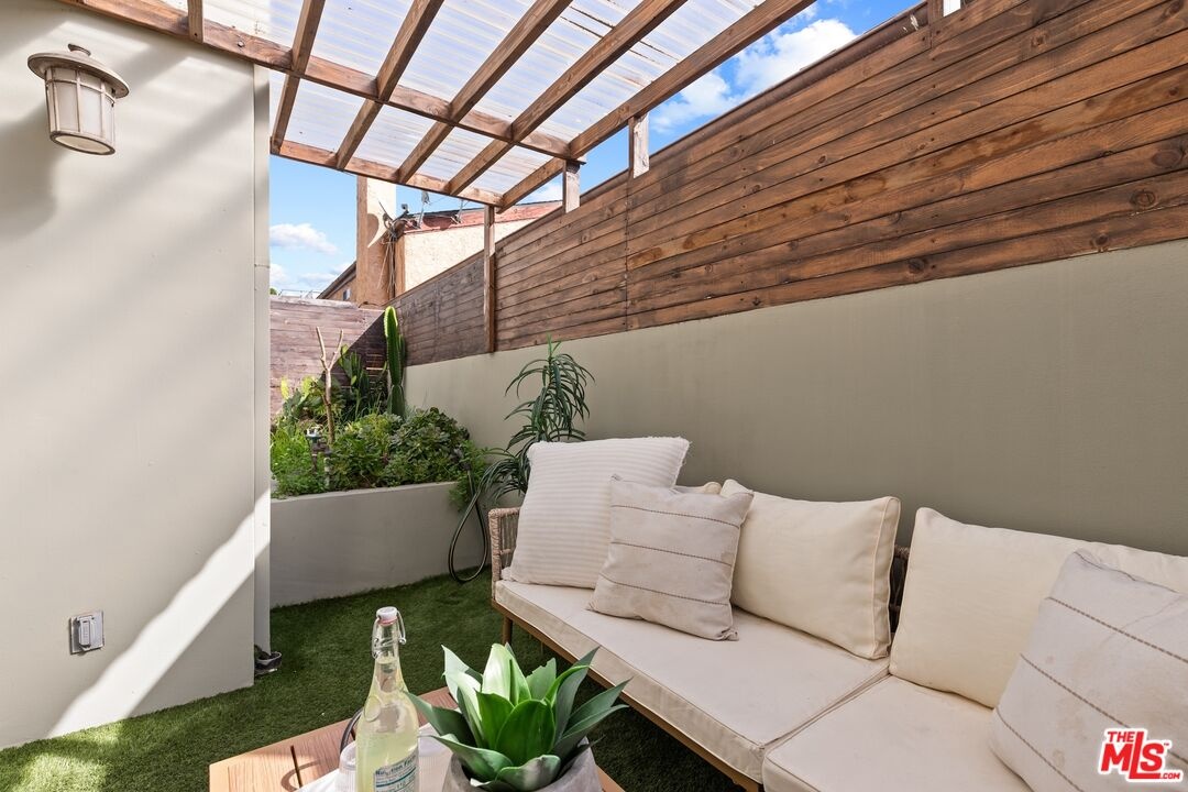 Welcome home to an elevated Santa Monica retreat - a beautifully updated 2-bedroom, 2.5-bath townhouse built in 2007, offering refined indoor-outdoor living in one of the Westside's most coveted walkable neighborhoods. Located in an intimate four-unit building, this residence combines privacy, exclusivity, and boutique-style charm. The main level features a bright open-concept layout with a remodeled kitchen flowing seamlessly into the dining and living areas - ideal for entertaining and everyday comfort. The living room enjoys no shared walls, while a custom-built entertainment/library wall unit adds architectural character and smart storage. A guest powder room, full-size stackable laundry, and ample closets enhance everyday ease. A French door opens to a private pergola-crowned patio with a sculptural cactus garden and mature plumeria tree - a serene outdoor retreat perfect for morning espresso or golden-hour gatherings. Upstairs, two bedroom suites each feature ensuite baths and brand new plush Berber carpet. The primary suite offers a walk-in closet and additional wardrobe storage, while a second French door opens to a pergola-covered balcony with glowing northwest sunsets - an intimate setting for evening unwinding. Additional highlights include two side-by-side gated, covered parking spaces, and 2024 building improvements including a full exterior repaint and roof updates. Enjoy Michelin-recognized dining at Citrin, Fia, and The Chelsea, or take a relaxing walk at nearby Douglas Park. Experience the vibrant Santa Monica city energy just outside your doorstep, then retreat to your cozy, peaceful four-unit enclave. This turnkey Santa Monica property is connected, private, and exceptionally located.