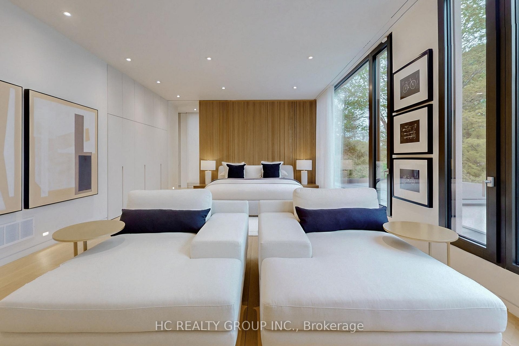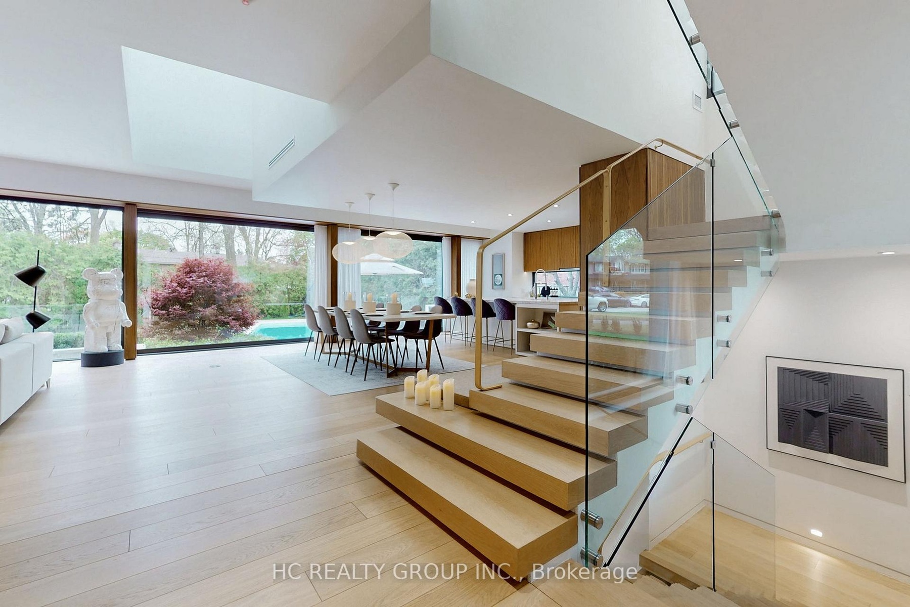 Nestled in the highly sought-after Eastlake neighborhood of Oakville, this stunning contemporary home is a masterpiece of design. Ideally situated near renowned private schools such as Appleby College and SMLS, as well as top-rated public schools, this property offers an unparalleled combination of style, convenience, and educational excellence.Designed by an exceptional architect, the home embodies the perfect fusion of Eastern and Western aesthetics, elevating minimalist design to its finest expression. The seamless integration of the house with its natural surroundings creates a harmonious living environment that is both sophisticated and inviting.This modern detached home features four bedrooms, each with its own en-suite bathroom, offering privacy and comfort for every family member. The main floor boasts an open-concept layout, with a dual-kitchen design catering to diverse culinary needs. The backyard is an oasis of relaxation and entertainment, complete with a swimming pool, hot tub, and built-in BBQ grill.The fully finished basement provides personalized recreational spaces for every family member, offering the perfect setting to pursue their individual passions and hobbies.This home is a true gem, offering a luxurious lifestyle in one of Oakvilles most prestigious communities. **EXTRAS** All Windows coverings, All ELFS, GDO remote controller, Grill, Car lifter, Hot tub & Pool equipment, Outdoor fireplace, steam in Master-ensuite and sauna, irrigation system.