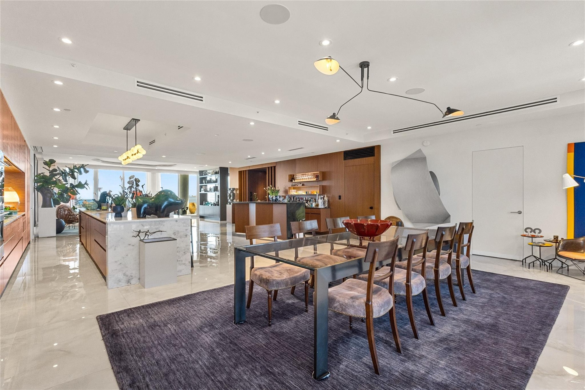 This is more than a penthouse. It’s a private sanctuary in the sky, designed for those who want every day to feel extraordinary. Floor to ceiling glass, panoramic views of the ocean, River, Intracoastal & skyline. Sophisticated design & masterful craftsmanship create an atmosphere of effortless elegance. The open concept layout flows seamlessly between two grand living rooms, a striking dining room & bespoke bar. Chef’s kitchen appointed w/Wolf & Sub-Zero appliances + butler's prep kitchen. East & west facing terraces w/ over 1,162 square feet & summer kitchen. Spacious Primary suite w/ sitting room, spa-inspired bathroom & custom designed closets. Private 2 car garage & 2 storage rooms, boat slip, private climate control wine room/storage. Dedicated golf & kayak lockers.Remodeled - 2023