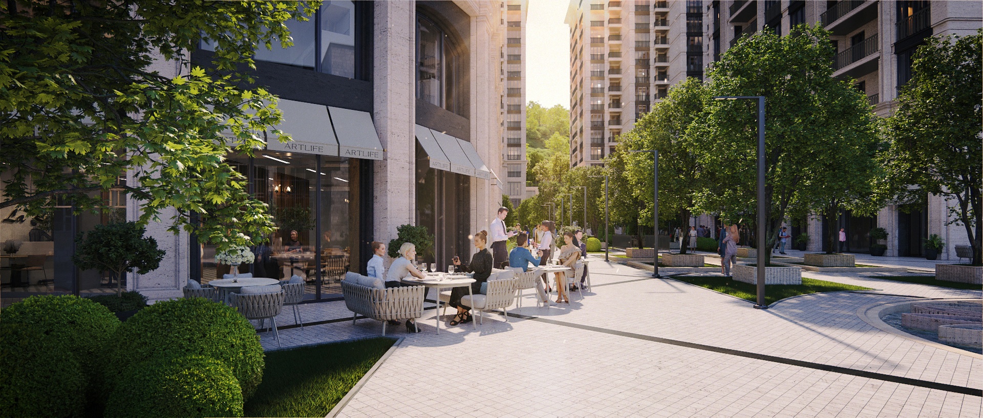 Owning an apartment in the city center, on the other hand, is about becoming a part of the entertainment and numerous events that the complex offers to the fullest extent.To establish an opulent and luxurious ambience, a wide French-inspired boulevard adorned with exquisite fountains, decorative ora, and trees has been crafted.