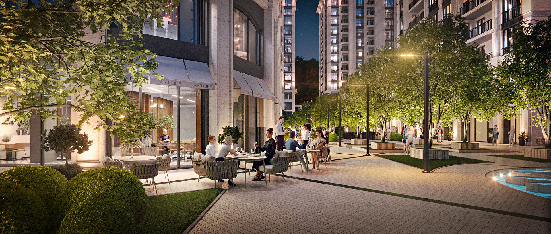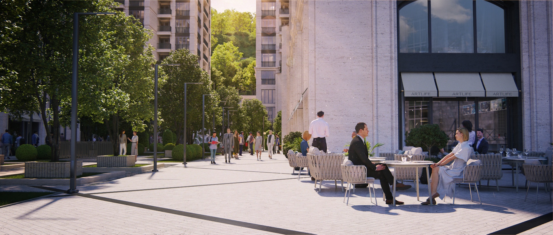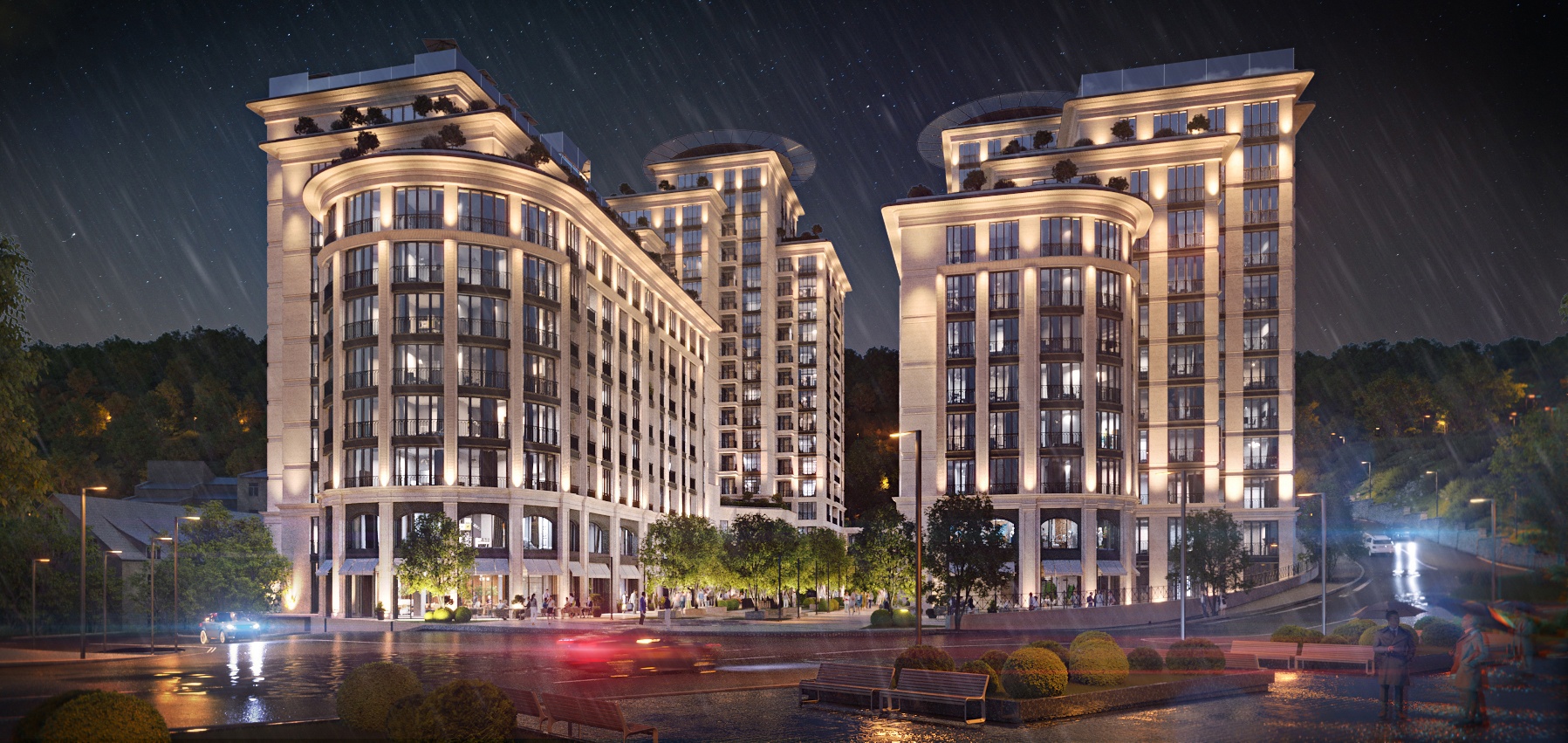 A new high-end lifestyle and entertainment destination in Yerevan. The key idea of the project is to create a luxury entertainment and residential complex that will be open to both city residents and tourists. We opted not to pursue the concept of a closed club complex, as individuals seeking a secluded environment can get private houses to enjoy a tranquil atmosphere.