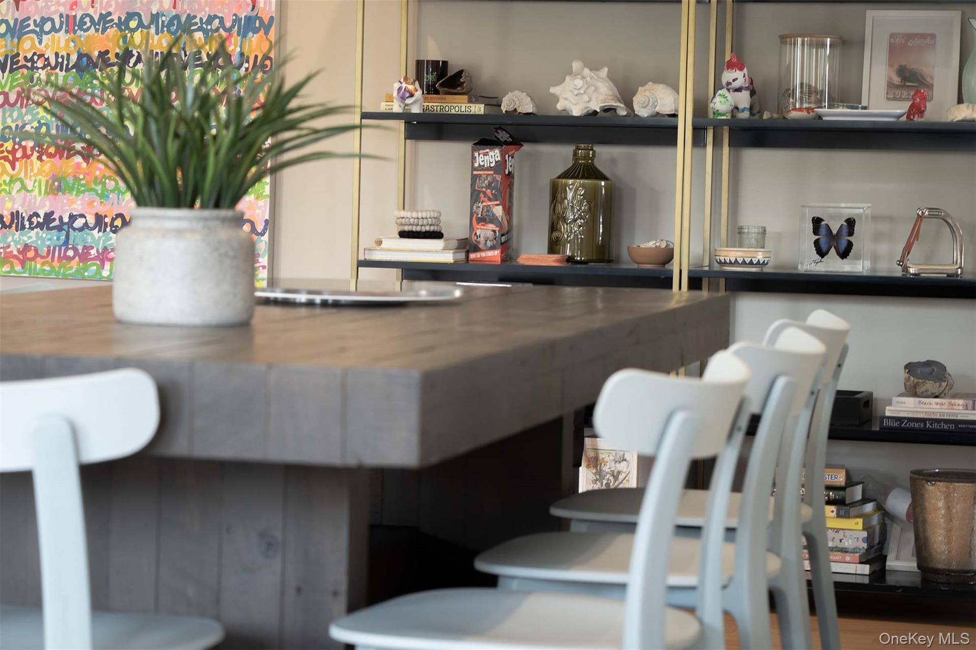 The kitchen finally makes sense. It’s got the island for prep, but there’s also a separate counter/bar seating area, so everyone can hang out near the kitchen without crowding whoever’s cooking. And the genius part? From the barstools you can still see the TV over the fireplace, so people can snack, talk, watch something, everybody’s in the same space but not bumping elbows like we’re working a brunch shift.