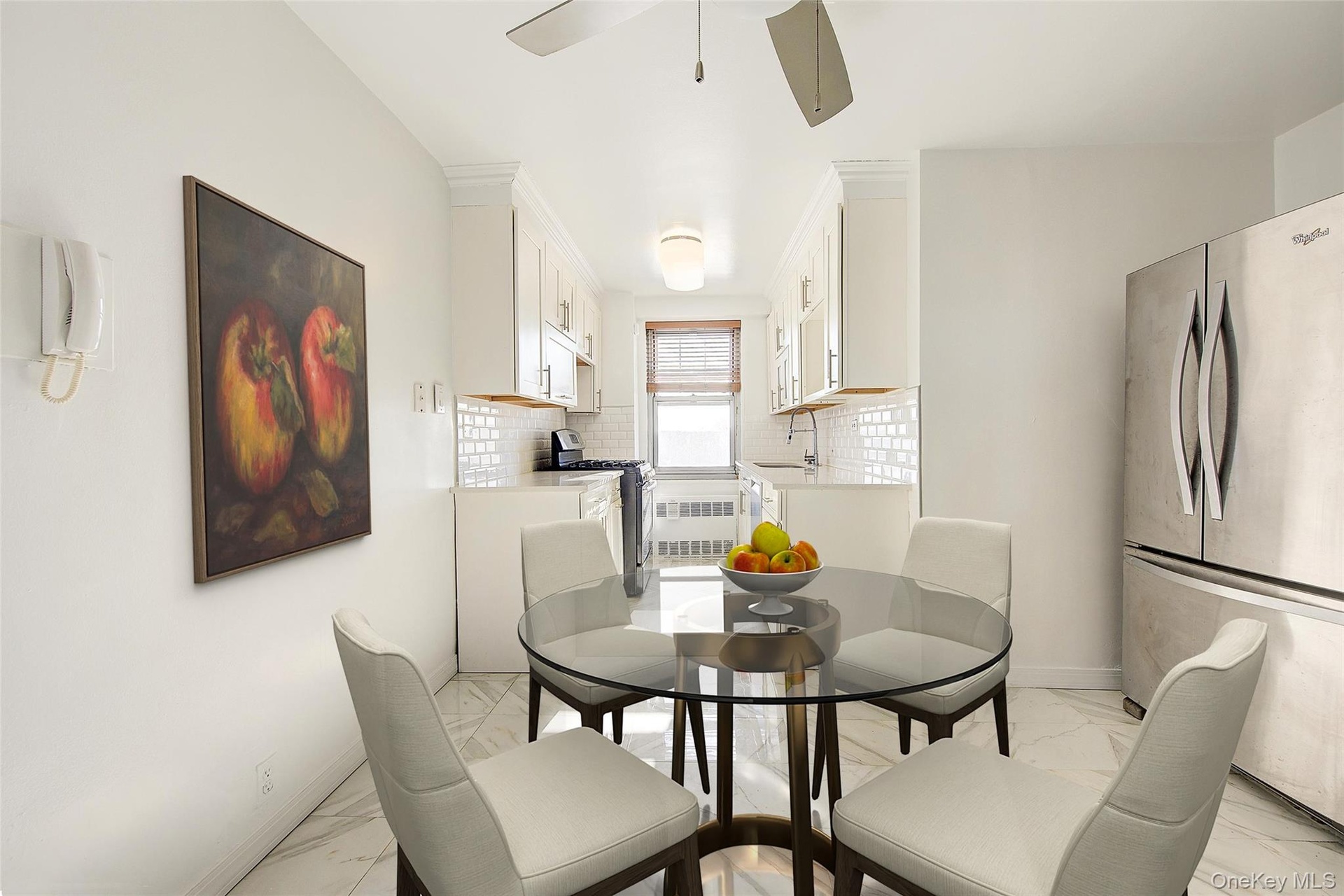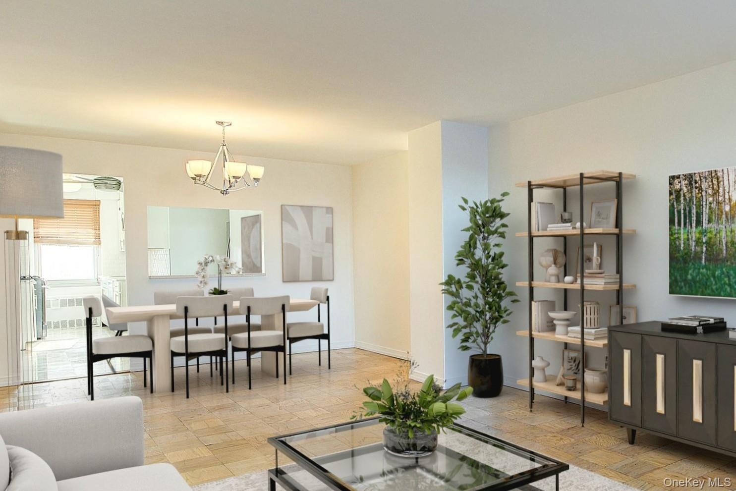 The expansive layout, ideal for both comfortable living and entertaining, includes an entry foyer, a large living room, a formal dining area, and fully renovated windowed Eat-in Kitchen with modern cabinets, Quarts countertops, stainless steel appliances and ceramic floor tiles.