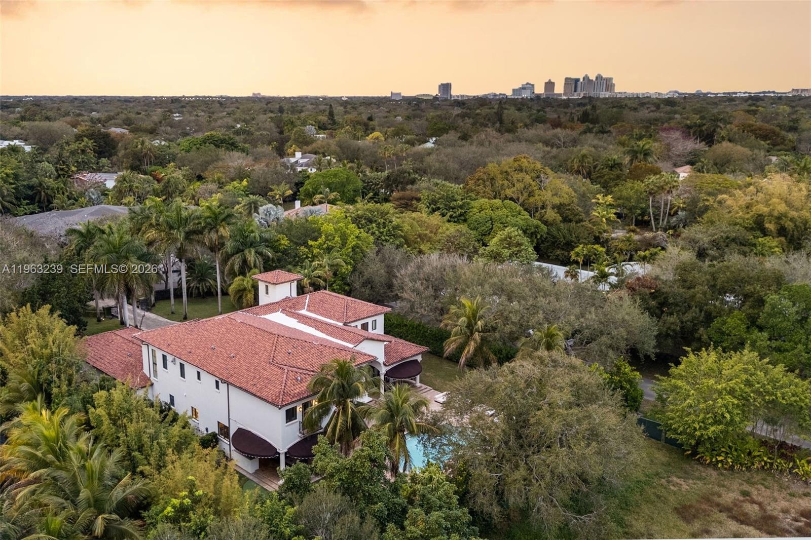 Mediterranean masterpiece on secluded Killian Park Rd in the heart of Pinecrest. This nearly 11,000 total SF estate sits on almost an acre of lush, private grounds and offers the ideal layout for everyday living and effortless entertaining. Behind a gated entry, discover soaring ceilings and walls of windows that flood the home with natural light and showcase tranquil garden views from nearly every room. The gourmet chef’s kitchen anchors multiple entertaining spaces, while all six bedrooms are en-suite, complemented by a private office and an upstairs loft. The expansive ~1,200 SF primary suite features dual walk-in closets, spa-like bath with double shower, wet bar, and private terrace. Elevator access and a three-car indoor garage provide ultimate convenience. Outdoors, enjoy a true backyard oasis with a massive pool surrounded by mature oak, avocado, mango trees, and manicured hedges—perfect for entertaining or quiet family enjoyment. Additional features include complete impact glass windows, smart-home Savant automation, fireplace, and meticulous craftsmanship throughout. Ideally located within a few miles of top-rated schools (Gulliver, Pinecrest, Palmetto, etc.) and fine dining, shopping, and cultural attractions, this elegant estate seamlessly blends luxury, comfort, and privacy—an exceptional place to call home.