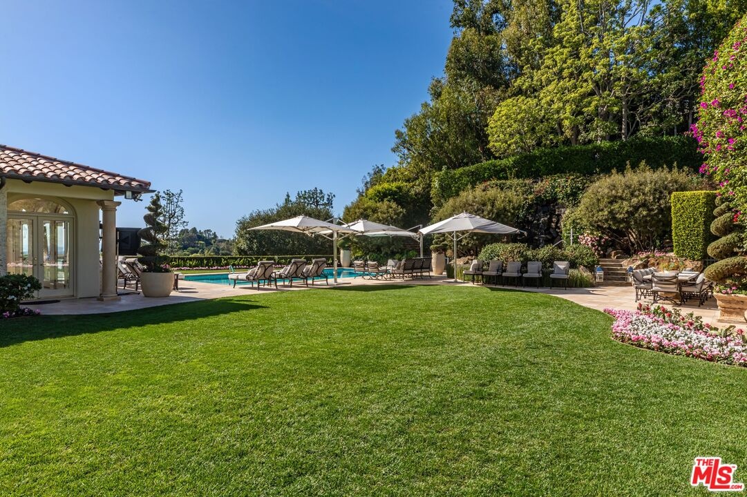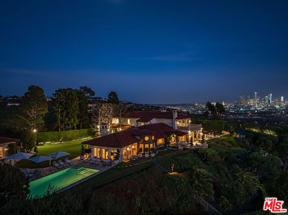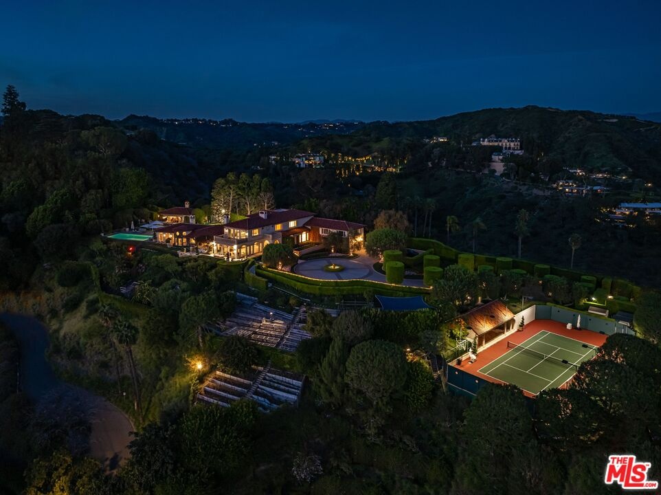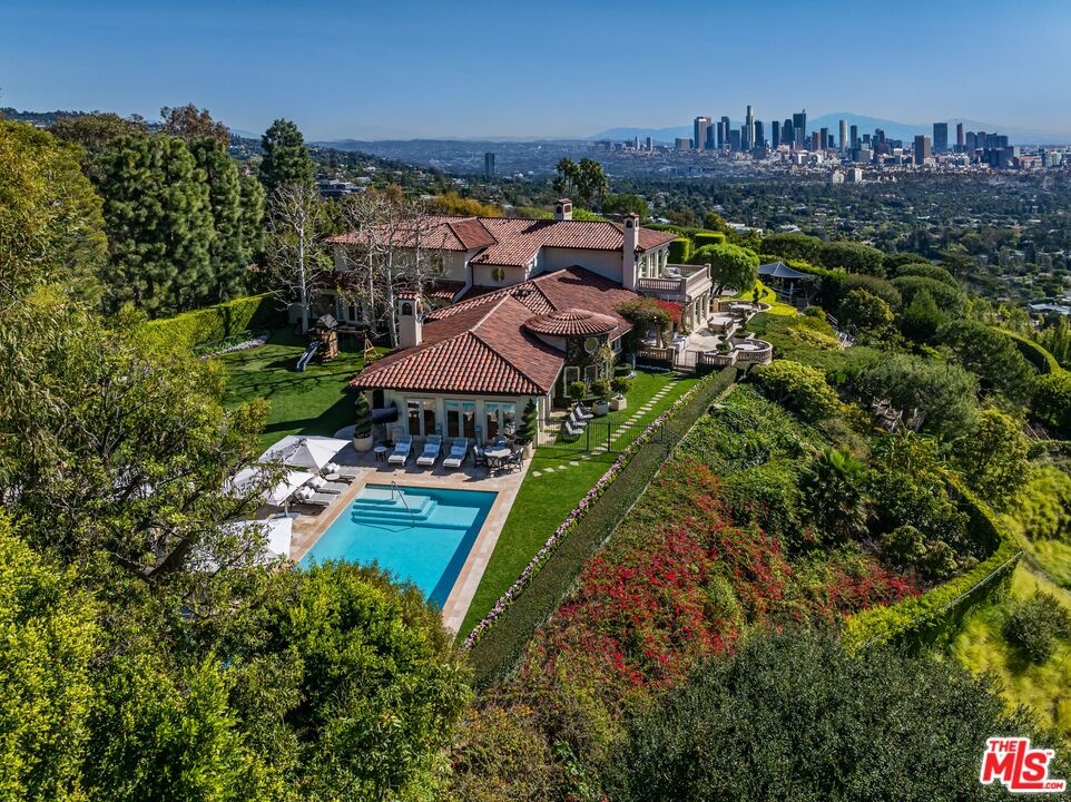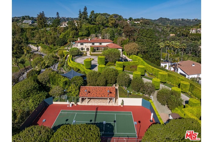 The number one best iconic 2.2-acre view property in the city that has it all. In the heart of Beverly Hills, just minutes from the legendary Beverly Hills Hotel, 1309 Davies Way delivers total privacy, panoramic city views, and a level of refinement reserved for the truly exceptional. Set on its own private promontory and located adjacent to the Pritzker, Murdoch, and future Gates family estates, this Modern Tuscan masterpiece is steeped in rare Hollywood legacy. Once home to Ricky Martin for many years, previously owned by English actor Michael Caine, and before that held by Doris Day's family, the estate carries an iconic lineage that mirrors its stature. Behind gates, a long, curving, tree-lined drive builds cinematic anticipation before opening to a grand motor court. Recently reimagined through a multi-year renovation, the residence blends timeless Mediterranean romance with modern precision, offering a living experience that feels both classic and commanding. Inside, walls of glass frame explosive head-on city and coastal views stretching across the city to the Pacific. Nearly every primary room, terrace, and outdoor retreat is oriented to the horizon, creating a constant dialogue between architecture and landscape. By day, the home is flooded with light; by night, it hovers above a constellation of city lights. The grounds unfold like a private resort: expansive lawns, manicured gardens, orchard, guest house, and a championship tennis court with pavilion, all designed for grand-scale entertaining and effortless SoCal living. The great room and chef's kitchen open directly to the outdoors, while a private theater and spa-level amenities complete the experience. The primary suite is a sanctuary in the sky, featuring its own terrace, sitting room, dual baths and dressing rooms, and flexible spaces tailored to a world-class lifestyle. Private, gated, and irreplaceable in location, history, and view, 1309 Davies Way is not just a residence, it's a legacy estate reserved for the few.