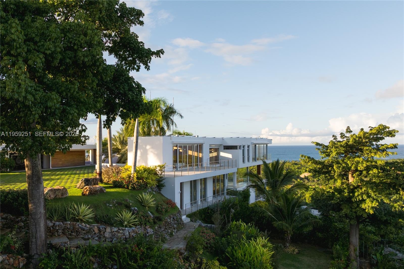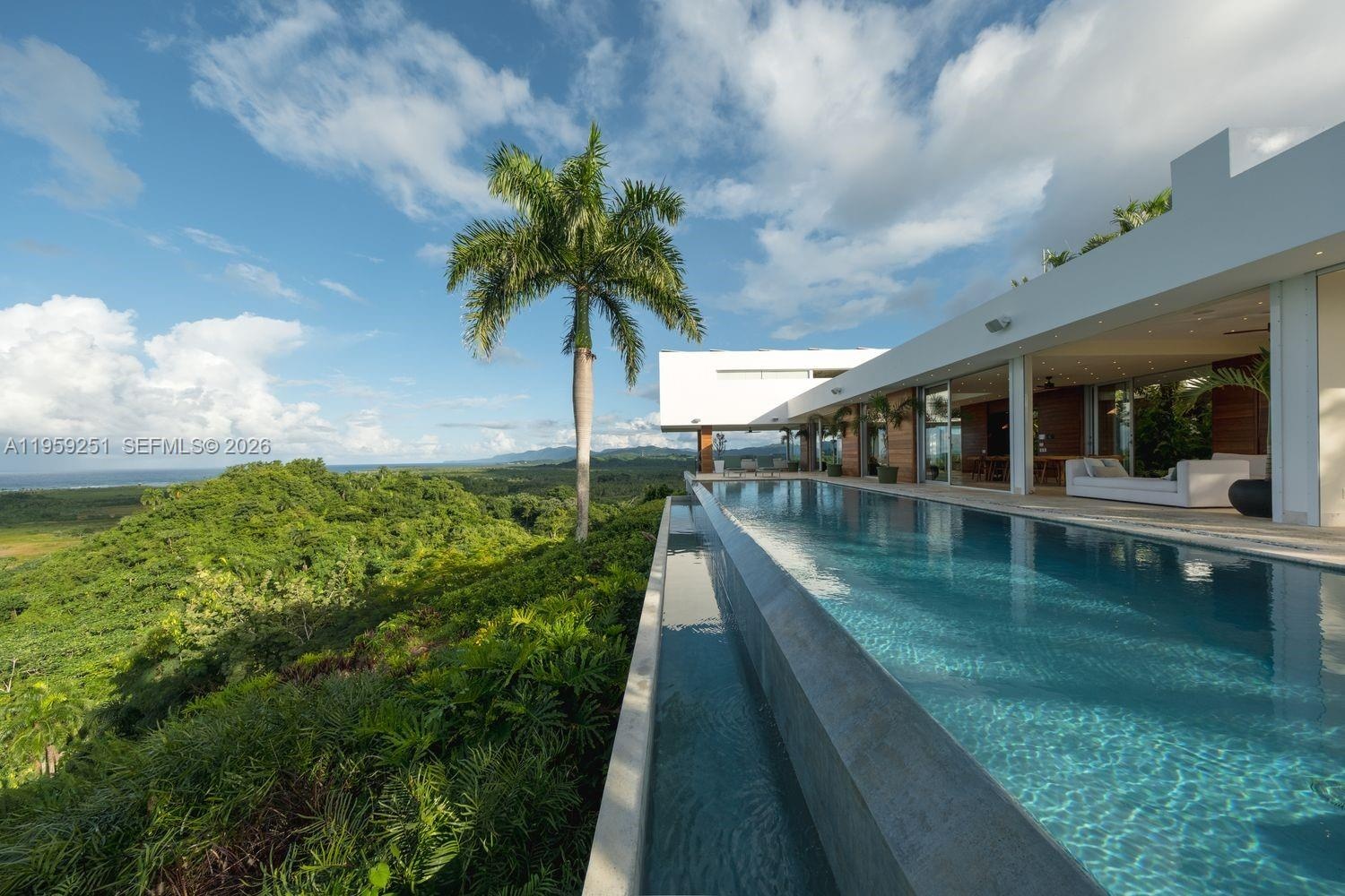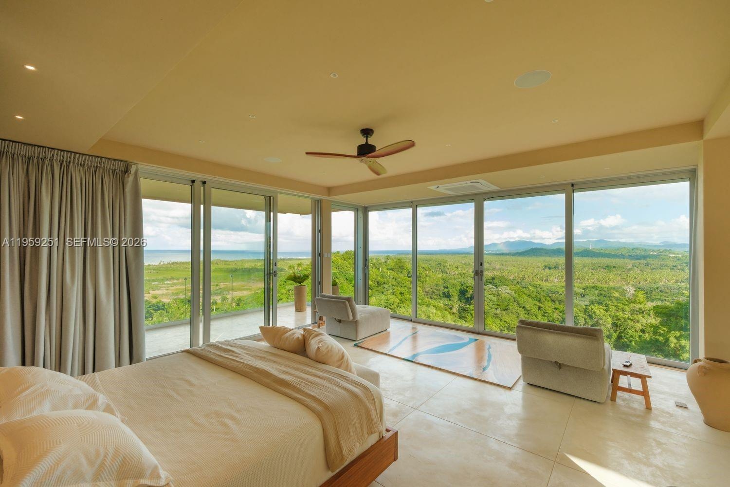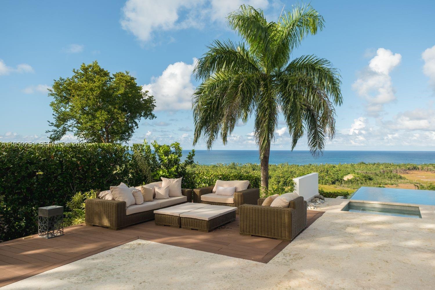 Built in 2012 and thoughtfully enhanced in 2025, Villa Aura is a statement of elevated Caribbean living, commanding one of the most breathtaking vantage points in Las Terrenas. Upon arrival, sweeping panoramic views of the ocean, rolling mountains, and lush tropical landscapes unfold in every direction. Perched at the highest elevation within the exclusive gated enclave of Loma Esperanza, the estate enjoys unobstructed 360-degree vistas. Spanning approximately 7,000 square feet on a 55,972-square-foot parcel, the home offers six bedrooms, six full baths, and three half baths designed for seamless indoor-outdoor living. Highlights include a European open-concept kitchen, infinity pool, expansive terraces, fruit gardens, refined finishes, resilient infrastructure, and approved expansion plans—creating a legacy retreat where luxury and nature exist in perfect harmony.