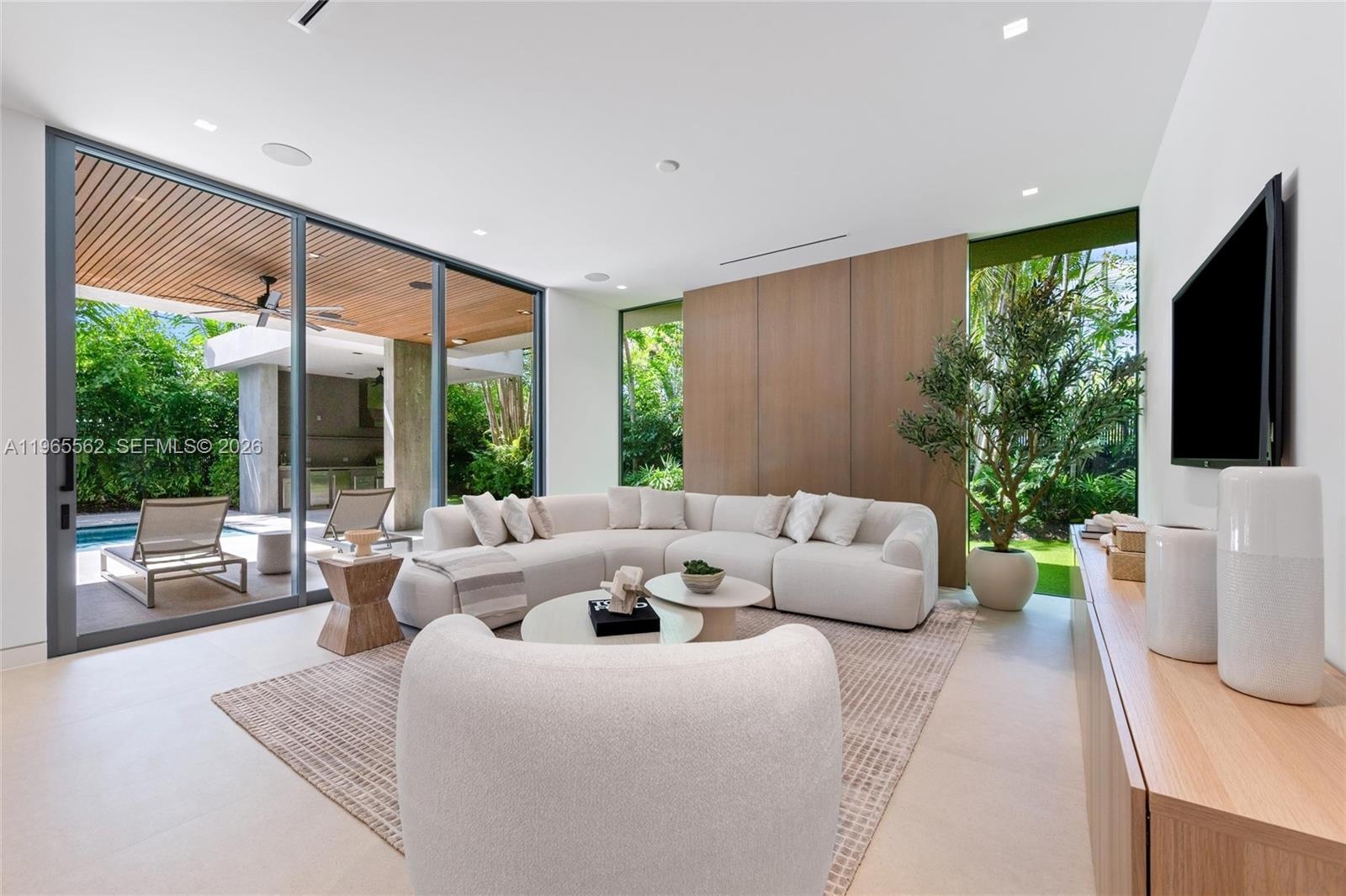 NEW CONSTRUCTION. Welcome to a newly completed modern residence in Bay Heights, one of Coconut Grove’s most exclusive enclaves with 24/7 police monitoring. This six-bedroom, six-bathroom home is thoughtfully designed for today’s luxury lifestyle, blending clean architectural lines with warm, sophisticated finishes throughout. The heart of the home is a custom Italian kitchen outfitted with Miele appliances and natural gas, perfectly suited for both everyday living and elevated entertaining. Expansive living spaces flow seamlessly to the outdoors, creating an effortless indoor-outdoor experience ideal for Miami living. The second level features four spacious bedroom suites, each with walk-in closets, offering privacy, comfort, and a true sense of retreat. Outdoors, a saltwater pool and spa, lush landscaping, and a separate gazebo with BBQ create a private oasis for relaxation and entertaining year-round. Additional highlights include a two-car garage plus two-car carport, smart design details, and exquisite finishes throughout. This is a rare opportunity to own a move-in ready luxury home in the heart of Coconut Grove—where elegance, security, and lifestyle come together effortlessly.