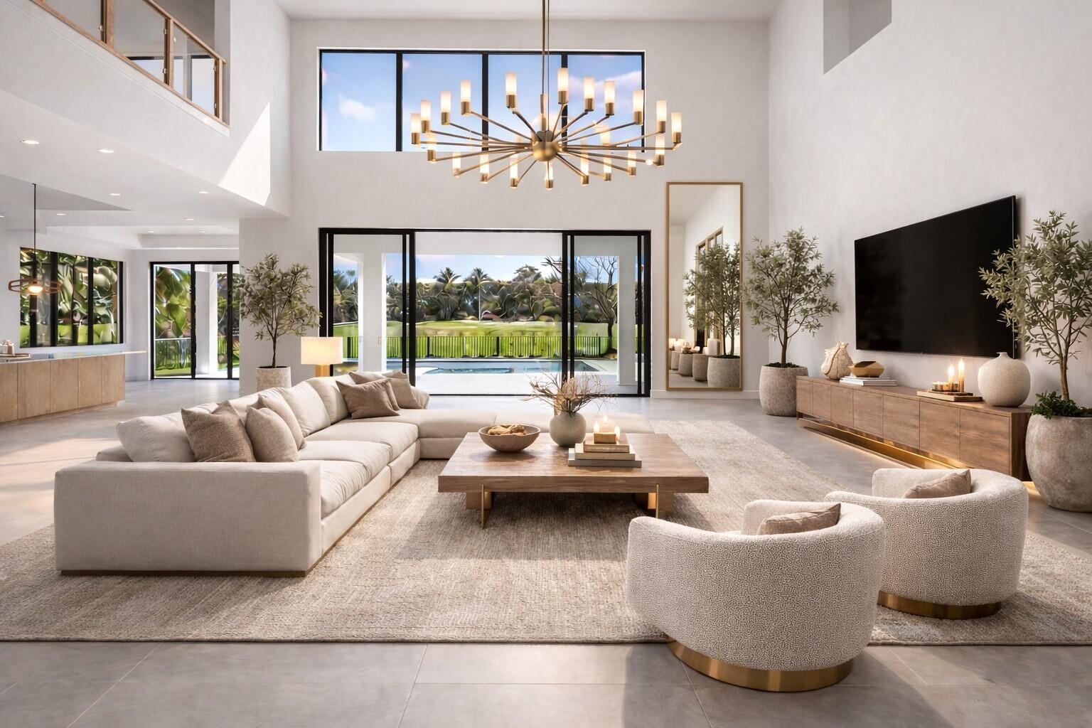 An incredible opportunity to own a stunning new construction home in the prestigious St. Andrews Country Club, offering breathtaking panoramic lake and golf course views. This expansive two story residence features 6 bedrooms and 8 bathrooms, along with two oversized extra rooms designed for ultimate flexibility and luxury living. One of these exceptional spaces is perfectly suited for both a golf simulator and a private theatre, creating the ultimate at home entertainment experience. Upstairs, a beautifully appointed VIP suite offers the feel of a second primary bedroom, complete with incredible views of the golf course and nearby lake, making it an ideal retreat for guests or multi generational living with added comfort and privacy. Designed with both elegance and flow in mind, the open concept layout seamlessly connects a chef's kitchen to the family room, creating an inviting space for gathering and entertaining. A private elevator adds everyday convenience, while multiple outdoor patio areas provide the ideal setting to relax and take in the spectacular surroundings. The backyard boasts a highly desirable southern exposure, filling the home with natural light throughout the day. Perfectly positioned on a prime lot within one of Boca's most exclusive gated golf course communities, this home offers access to world class amenities and an unparalleled lifestyle. Mandatory club membership required. Some images have been virtually staged for illustrative purposes, furnishings and decor are not included.