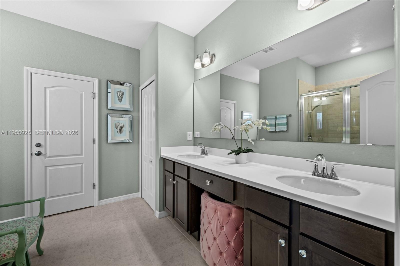 - Clean and modern primary bathroom