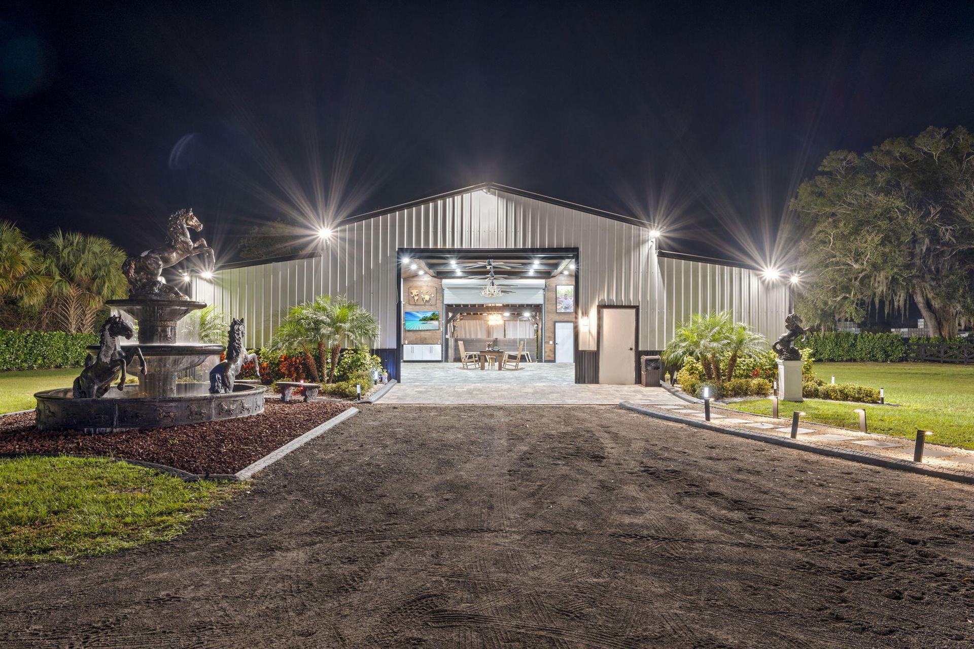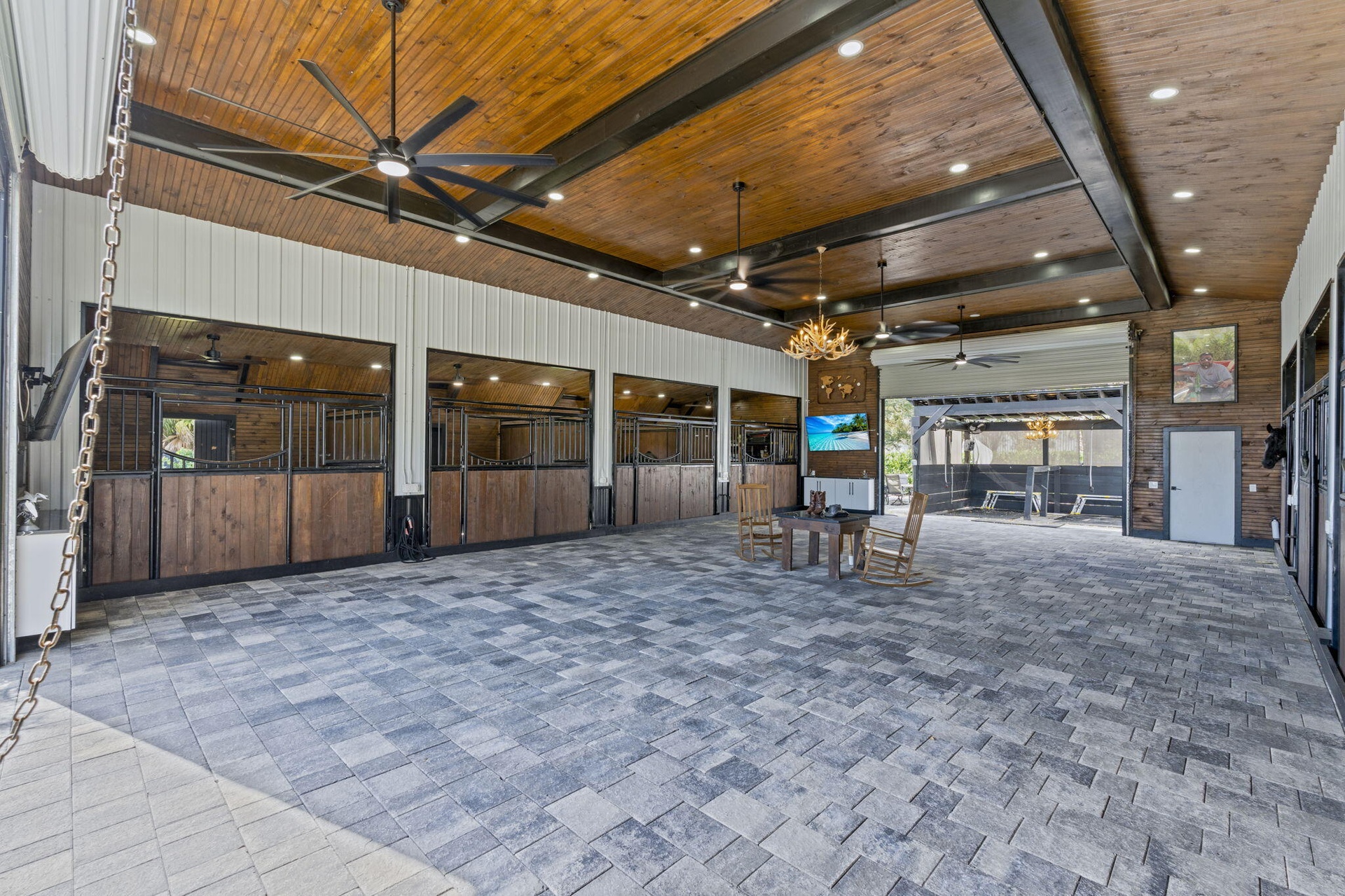 Security is comprehensive, with full-camera coverage, solar lighting, and illuminated grounds. This turnkey estate offers rare potential for private retreat living, equestrian pursuits, luxury events, or curated income opportunities.
