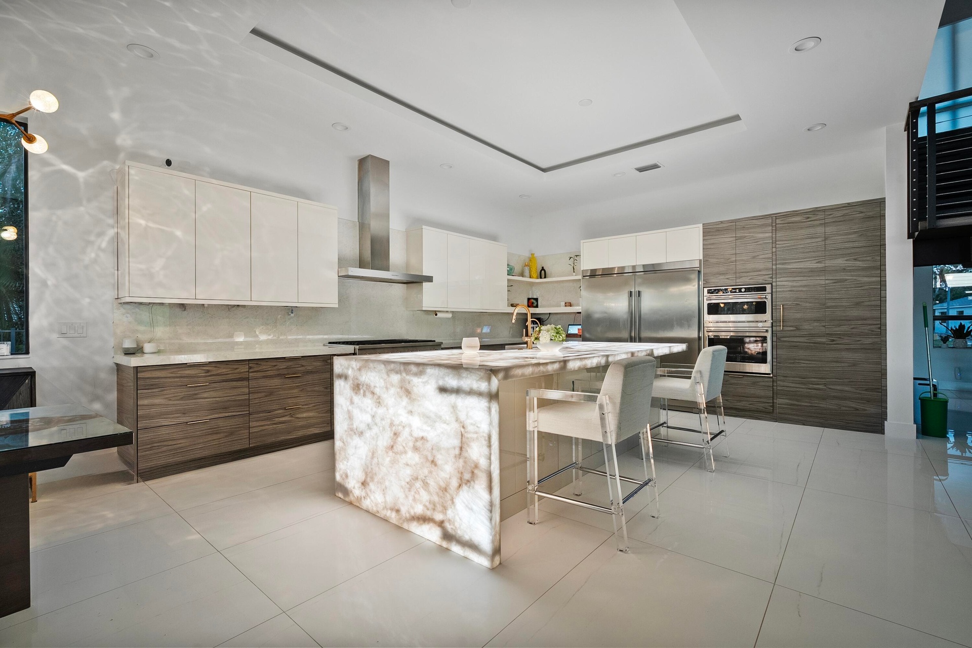 Experience modern waterfront luxury in this stunning contemporary masterpiece with impressive open floor plan and designer upgrades and finishes! This custom-built home showcases a sleek European kitchen with an illuminated quartz island, extra-large Frigidaire refrigeration, and premium finishes throughout. Luxurious master bedroom suite overlooking the water! Indulge in spa-quality details like the illuminated agate shell bathroom countertop and beautifully designed custom closets. With complete impact glass, a striking modern façade, whole-home water softener, and seamless indoor-outdoor living enhanced by roll-down patio screens, comfort meets style at every turn. The backyard is a true boater's paradise-featuring a 20,000 lb lift, 9,000 lb lift, 1,500 lb jet ski lift , and a secure sea wall, all set along a peaceful stretch of riverfront framed by breathtaking sunsets. Resort style waterfront living at its finest!
