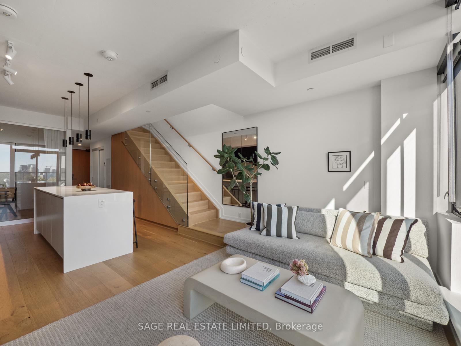 Welcome to The Carvalo on College, where refined design meets vibrant city living. This rare three-bedroom, two-storey loft captures the essence of Torontos west-end lifestyle modern, connected, and effortlessly cool. Inside, natural light pours through south-facing floor-to-ceiling windows, framing skyline and lake views that stretch from Trinity Bellwoods to the CN Tower. The main floor flows seamlessly from a chefs kitchen with custom black cabinetry and waterfall island, to an airy living space that opens to two private terraces ideal for morning coffee or sunset cocktails. Upstairs, the primary suite features its own terrace and a tranquil, spa-inspired ensuite, while two additional bedrooms offer flexibility for family, guests, or a home office. Every detail has been thoughtfully curated to balance style and comfort in this one-of-a-kind urban retreat. Set in the heart of College West, steps to Ossington's dining scene, Little Italy cafes, Trinity Bellwoods Park, and top schools this home is equally suited for families, creatives, or anyone who wants to live where culture meets comfort.