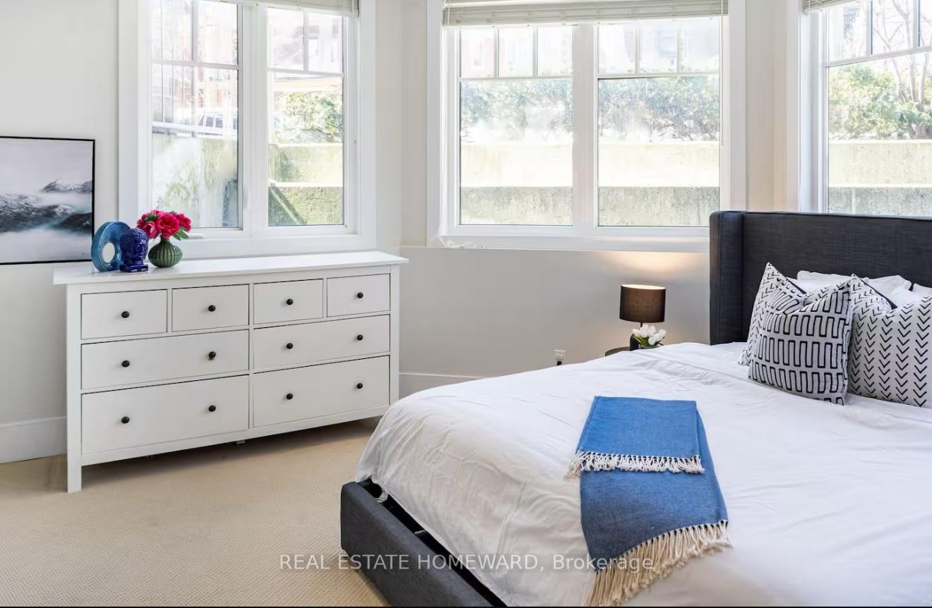 ** 1818 Sq. Ft. ** Fully Furnished - Utilities Included - 2 Parking Included ** Experience refined city living in this spacious 3-bedroom, 3-bathroom townhouse featuring a private patio, modern finishes, and engineered hardwood floors throughout. The open-concept living and dining area is ideal for entertaining, highlighted by 9-foot ceilings, crown moulding, bay windows, and stylish lighting.The chef's kitchen offers granite countertops, a large island, stainless steel appliances, and a gas range, with a sun-filled breakfast nook perfect for morning coffee. The primary bedroom is generously sized with bay windows and plush carpeting, while the second bedroom is equally comfortable. The third bedroom functions well as a den, nursery, or guest room. Enjoy summer evenings on the private deck with BBQ, ideal for outdoor dining and relaxation. Located near Dupont & Spadina, you're steps to restaurants, cafés, shops, transit, and daily essentials. Spadina subway station is just one block away. Includes: in-suite laundry, Heat, Hydro, Internet, Water, and 2 underground parking spaces.