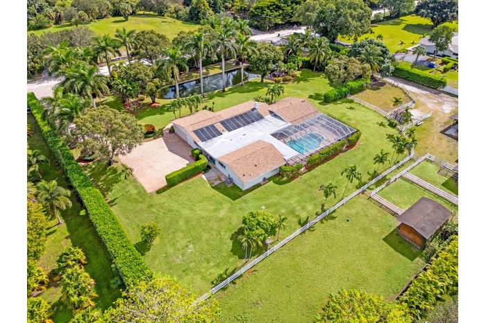 Private Tranquil Equestrian Estate in BBB Ranches! Enjoy luxury living on 2.33 acres with 5 beds, 4 baths, and a 2-car garage. This updated Parkland home features a new roof, impact glass windows, fresh paint inside & out, new bedroom flooring, brand-new chef’s kitchen with stainless steel appliances, and new lighting throughout. The property offers 9 horse stalls, 3 turnout areas, space for riding, lessons, RVs & campers. Perfect for entertaining with a summer kitchen, heated pool, and large patio. The front of the home boasts a pergola with fire pit, pond with fish, and waterfall fountain. A+ schools, no HOA—the ideal Parkland lifestyle with an abundance of privacy! Beautiful property with 2.33 acres! Updated home with brand new kitchen, new roof and impact windows. Enjoy all the benefits of living in Parkland with tranquility and privacy!
