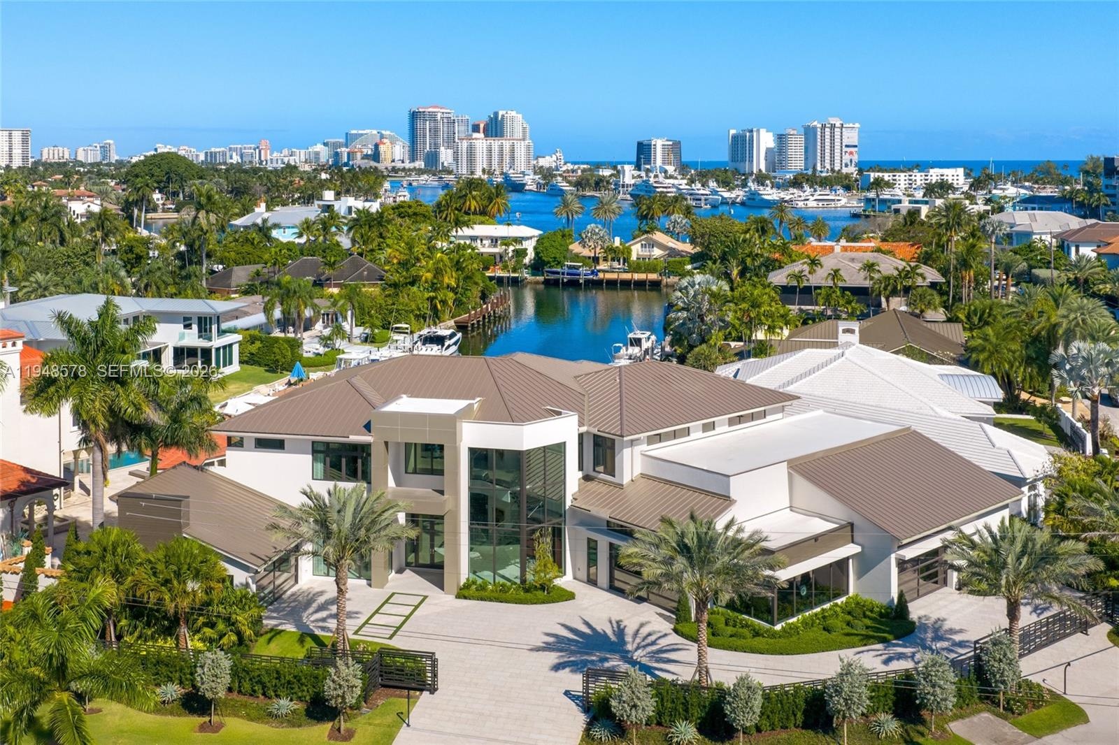 A truly one-of-a-kind waterfront estate, designed without compromise for the serious collector, entertainer, and yachtsman. Located within the prestigious Harbor Beach community, this architectural statement spans nearly 13,000 square feet & delivers 6 bedrooms, 6 full & 2 half bathrooms, offered fully furnished with bespoke, curated interiors. At its core is an extraordinary 3,000+ square foot, air-conditioned showroom garage engineered for vehicle lifts to accommodate 17+ cars, complemented by a separate 20’ x 20’ two car garage. Interiors impress with 48” porcelain flooring throughout, a dramatic floating staircase, custom ceiling details, 12-ft second-floor ceilings, and walls of glass framing serene water views. The chef’s kitchen features Italian Cesar cabinetry, Taj Mahal stone countertops, Wolf and Sub Zero appliances, a butler’s kitchen with integrated coffee system, and three dishwashers. Additional highlights include dual laundry rooms, elevator, gas systems, & fully built out closets. The first floor club room offers a private lounge experience with a pub-style full bar, wine coolers, & kegerator, complemented by dedicated media, gym, & theater rooms. Outdoor living rivals a private resort with a heated saltwater infinity pool, summer kitchen, primary suite terrace with outdoor bar, stained oak ceilings, & a new concrete dock & seawall with pedestals & generator providing immediate ocean access just minutes from the beach and Fort Lauderdale International Airport.
