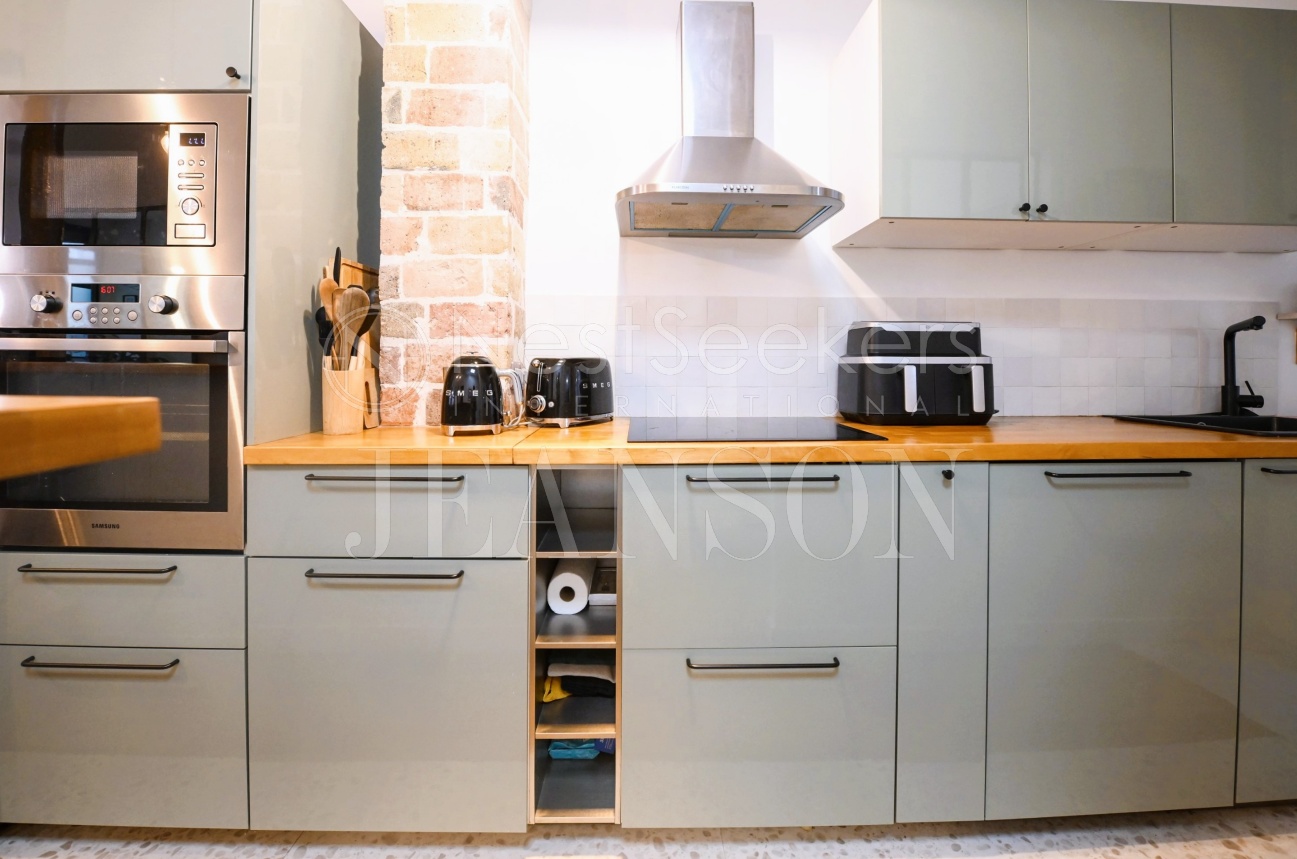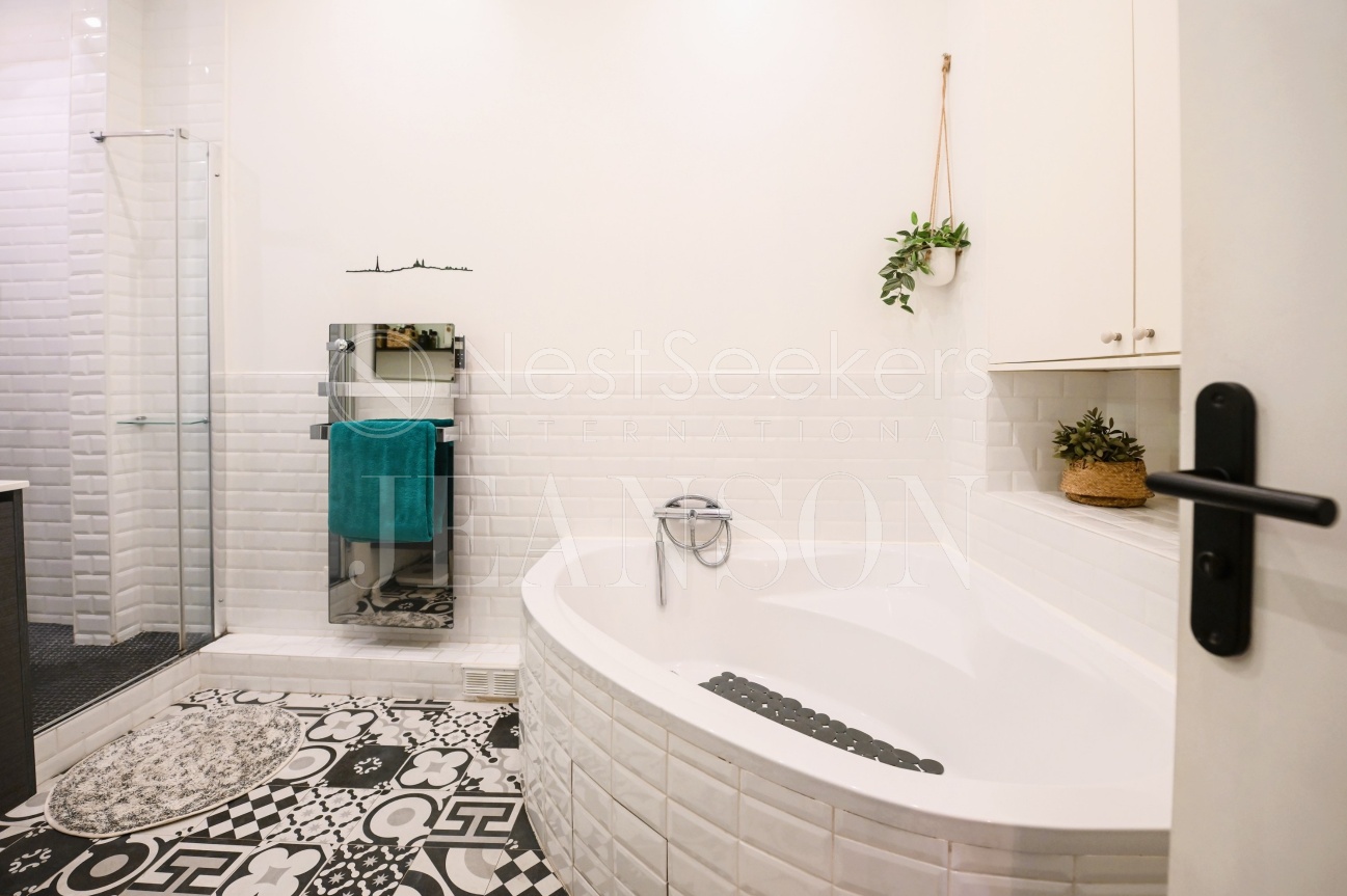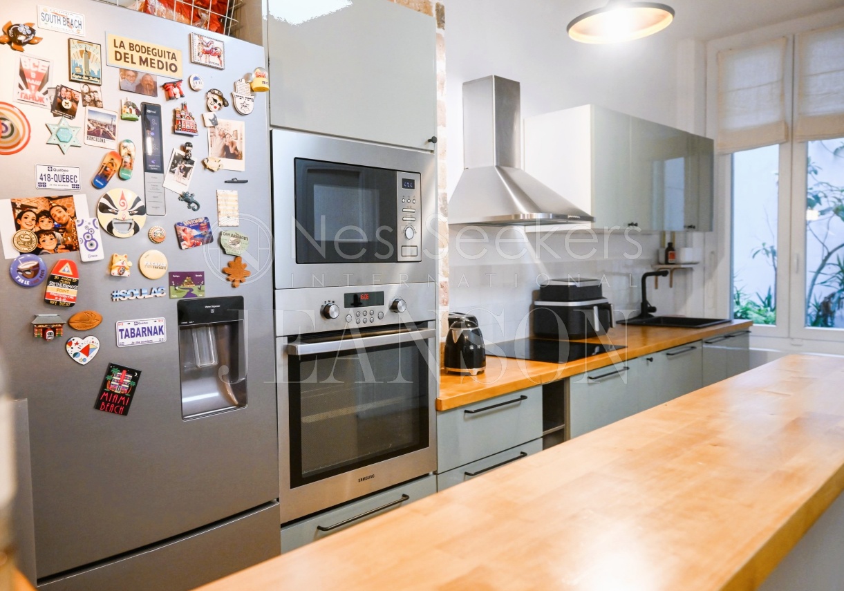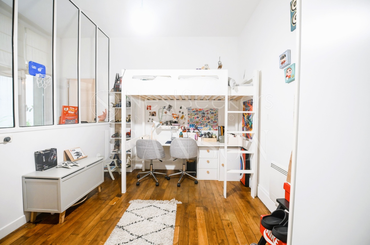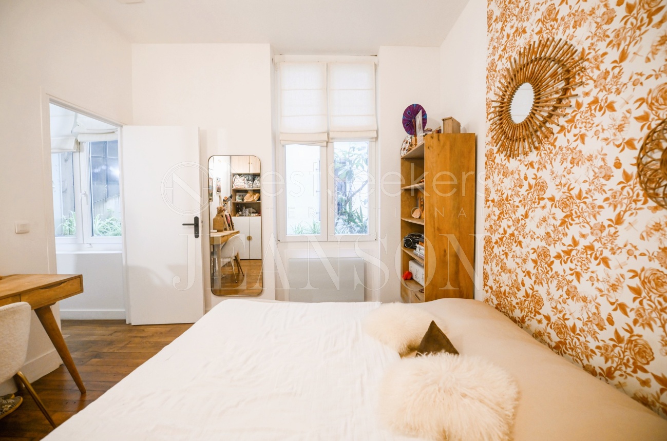 NestSeekers / Jeanson Properties presents this exceptional 108 m2 duplex loft, including 84 m2 of completely redesigned interior space in a contemporary style, offering generous and fluid volumes. Located on the ground floor of a cut-stone building, this property captivates from the moment you enter with its exceptional character, natural light, and optimized layout, designed for modern living comfort in the heart of Paris. The main level comprises an entrance hall with a spacious and bright double living room, a welcoming and modern open-plan kitchen, two bedrooms, including an elegant master suite, a bathroom with a corner bathtub and walk-in shower, and a separate toilet. The lower level, completely renovated, offers an additional bedroom and a laundry room. This flexible space is ideal for an office, guest suite, or independent living area. Insulated glazing ensures privacy and tranquility.