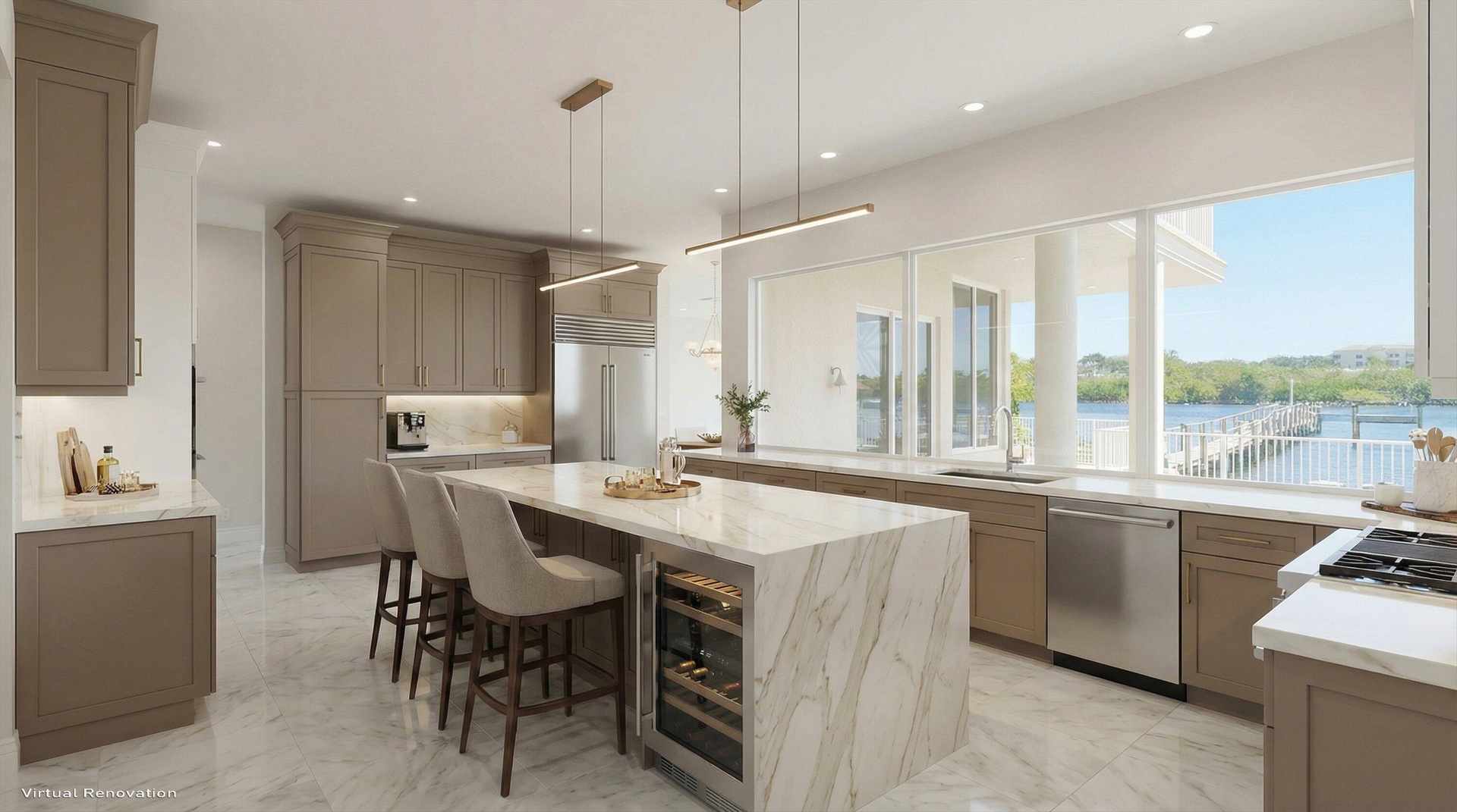 Meticulously maintained, the home spans approximately 4,381 square feet of living space and features four bedrooms, five full and one half baths, and a spacious three-car garage. A 2023 roof, hurricane-impact windows and doors, and three new air-conditioning systems provide peace of mind, while 22-foot soaring ceilings in the grand great room frame breathtaking water views the moment you enter. SEE ADDENDUM The thoughtfully designed split floor plan offers both openness and privacy, creating the perfect balance for everyday living and elegant entertaining.