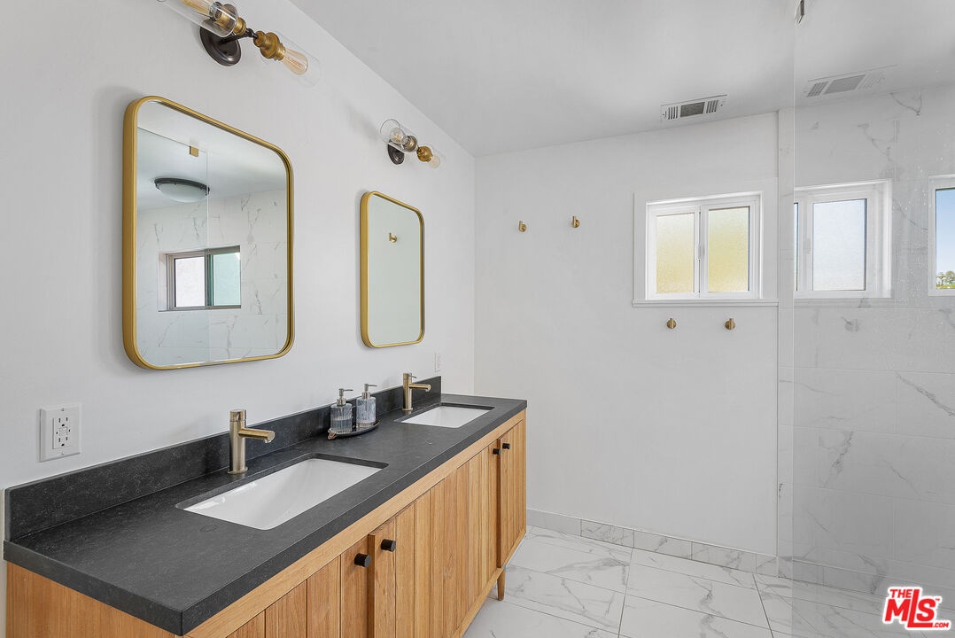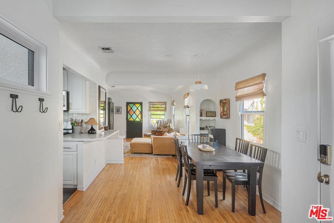 Classic Spanish-style elegance meets modern versatility in this nearly 1,800 sq. ft. four-bedroom, three full bath home in sought-after Culver Palms, complete with a rare private three-car driveway. Thoughtfully upgraded throughout with fresh paint and refined finishes, the home blends timeless architectural character including arched doorways, curated tilework, a classic red tile roof, and abundant natural light with a flexible layout designed for today's living. The kitchen features stainless steel appliances, generous cabinetry, and an easy flow into the dining area, ideal for everyday meals or entertaining, and opens directly to the back patio for effortless indoor outdoor living and al fresco grilling. A standout improvement is the reimagined primary suite, now fully closed off to create a true private wing with an en suite bath featuring a soaking tub, walk-in shower, dual vanity, and a custom walk-in closet with built-ins. Three additional bedrooms and two additional full bathrooms offer exceptional versatility for family, guests, or work-from-home needs. Three private outdoor areas enhance the home, creating multiple spaces for relaxing, dining, and entertaining. A newly renovated recreation room with a wet bar offers the perfect bonus space for game nights, a media lounge, or a dedicated home office. Ideally located near Downtown Culver City, the Culver Steps, The Platform, and the Culver Theatre, with close proximity to popular dining, cafes, fitness studios, parks, childcare options, and major tech and media hubs, this character-rich home delivers the perfect blend of style, comfort, and connectivity.