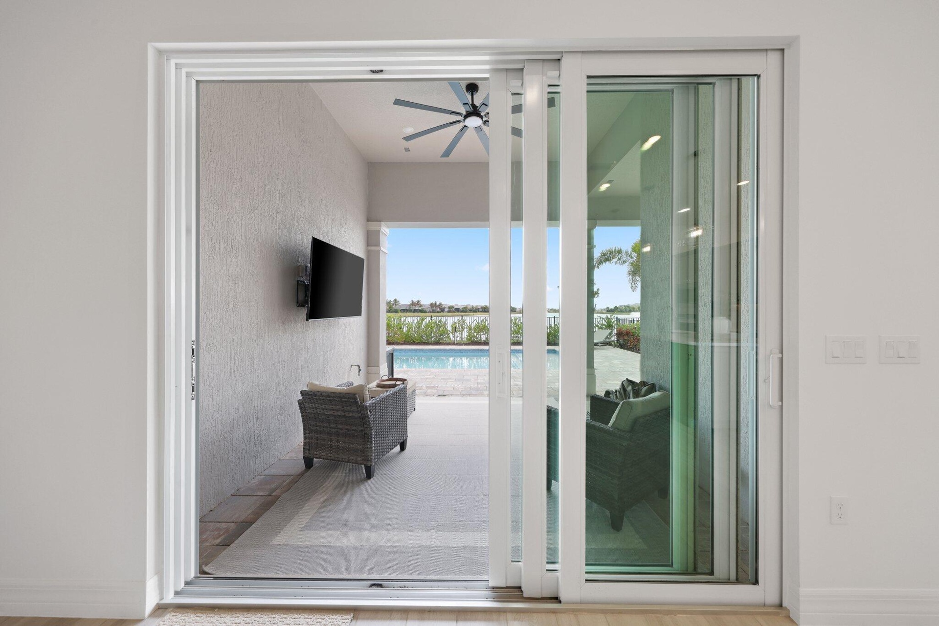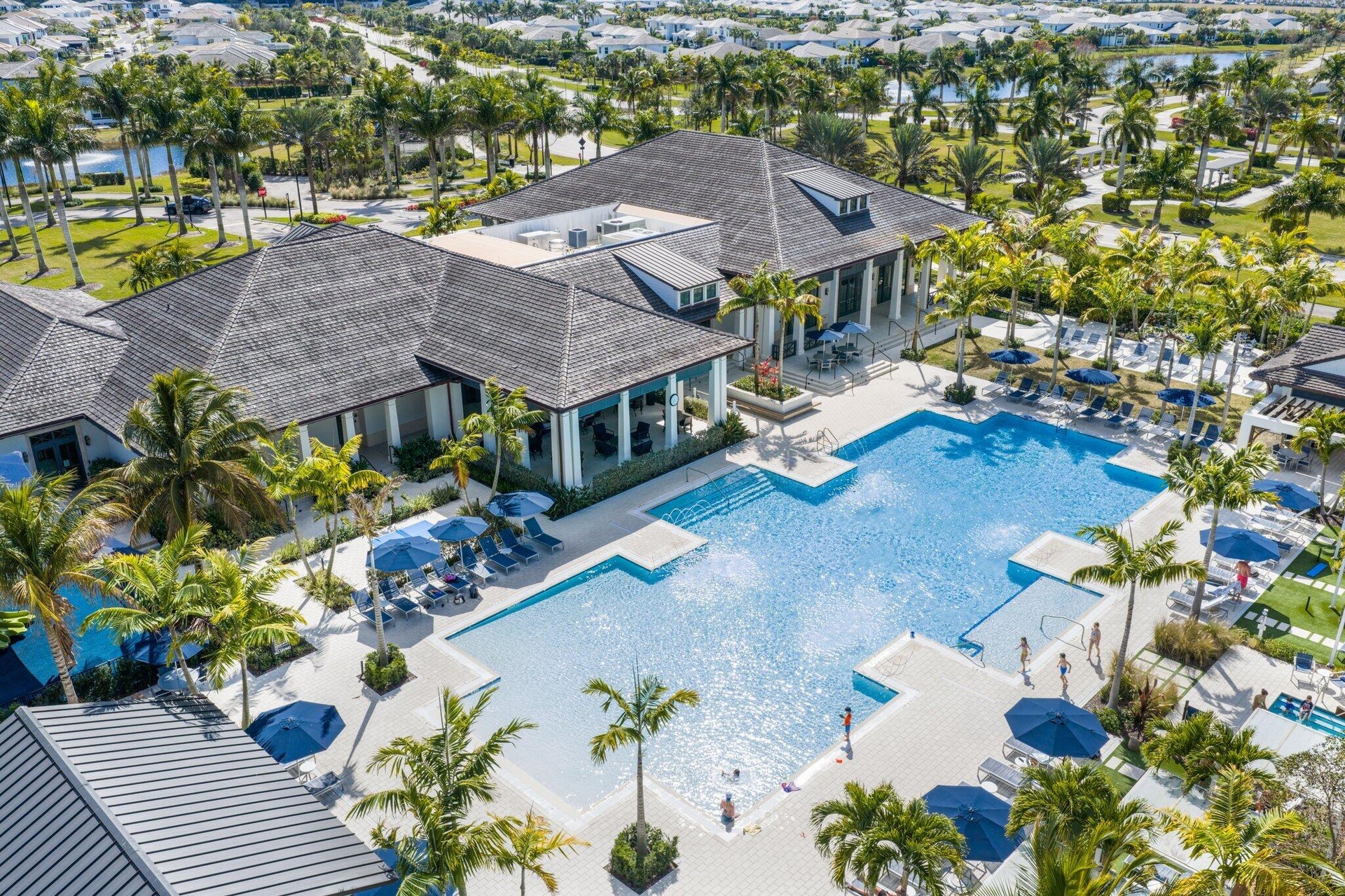 Welcome to an exceptional opportunity in the prestigious master-planned community of Avenir - where luxury, lifestyle, and location converge. This immaculate 2024-built lakefront home offers over 2,100 square feet of thoughtfully designed living space with sweeping water views throughout. Step inside to an inviting open-concept floorplan with wide-plank wood-look tile, high ceilings, and ease of access connecting indoor and outdoor living. The chef-ready kitchen boasts quartz countertops, stainless appliances with gas stove, and ample cabinet space. The primary suite is a serene retreat with dual walk-in closets and a spa-inspired en-suite bath. Outside, relax or entertain around your custom-tiled pool with a sun shelf, heated pool, and tranquil lake vistas. Home is pre-wired inside and out for speaker system. Resident only resort-style amenities include a clubhouse, leisure pool and lap pool, fitness center, tennis and pickleball courts, kids' splash pad and playground, scenic walking trails, and a vibrant calendar of social events. Beyond today's amenities, Avenir is rapidly evolving into a dynamic, self-contained town center destination. The highly anticipated Avenir Town Center - slated to open in Summer 2026 - will bring an array of grocery, retail, dining, services, and everyday conveniences, creating a walkable, golf-cart-friendly environment. Somerset Academy Charter School and firehouse are now open nearby as well as Jupiter Medical Center opening this year with 29 beds. Golf lovers will appreciate nearby, world-class courses such as Panther National, Sandhill Crane Golf Club, The Nest Par 3, and PGA National Resort.