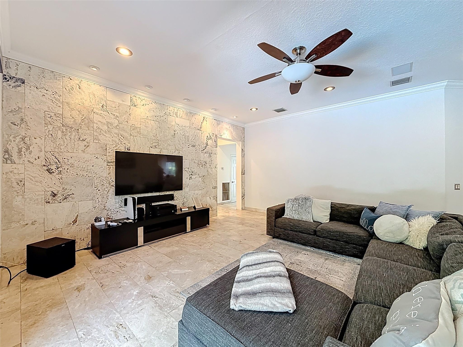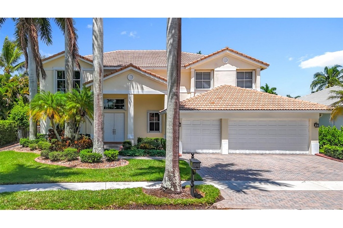 Gorgeous and bright home in the prestigious Weston Hills Country Club. This well-maintained residence offers 4 bedrooms, 4 full bathrooms, a loft upstairs, and a versatile den/office/bonus room ideal for a home office, media room, or guest suite plus a 3-car garage. Accordion hurricane shutters included. The grand entrance features soaring ceilings, top-of-the-line appliances, marble floors downstairs, and dark-wood laminate upstairs. Elegant recessed lighting adds warmth, while custom stone accent walls in the family and dining rooms create a designer touch. Step outside to your private backyard oasis with a custom-designed pool and beautifully landscaped grounds, perfect for outdoor living and entertaining.