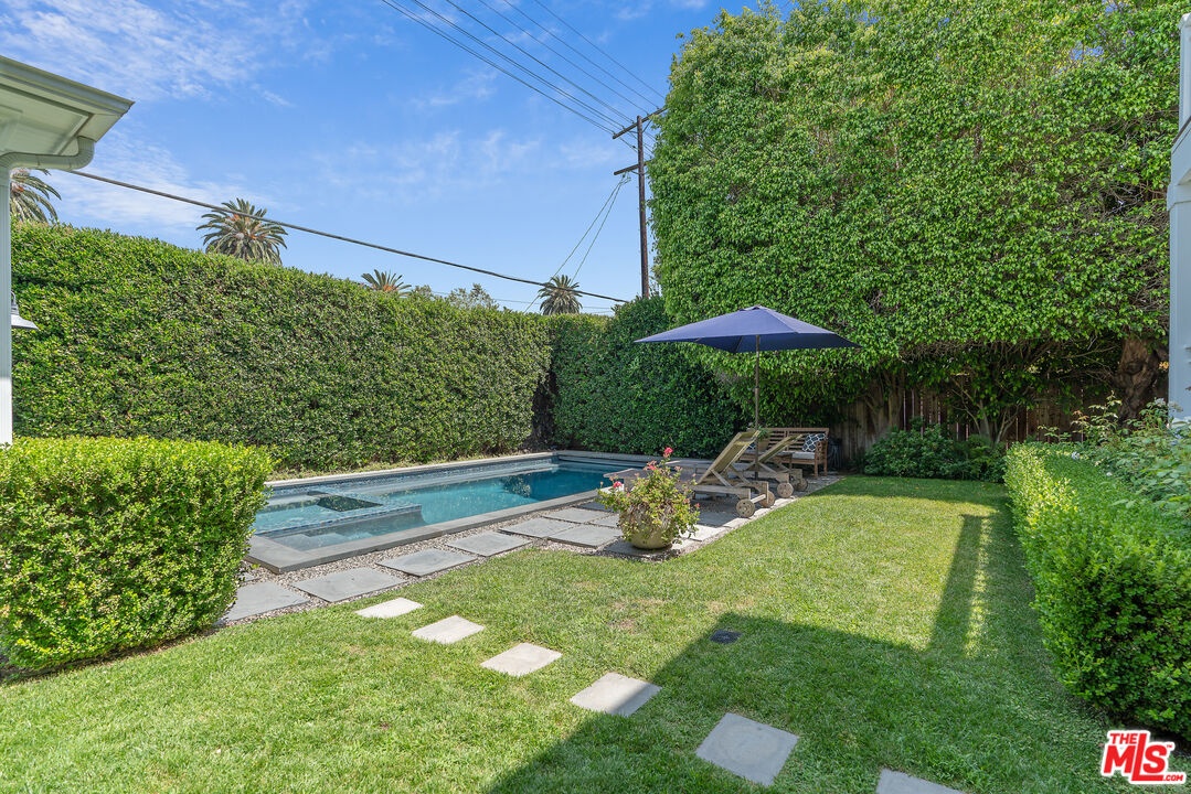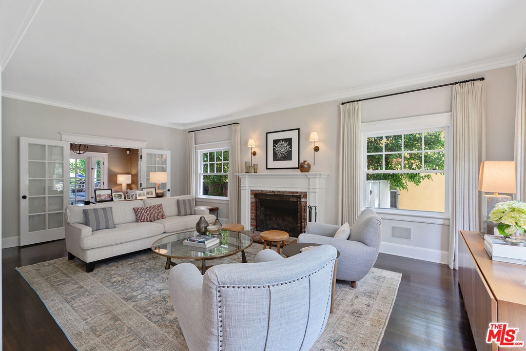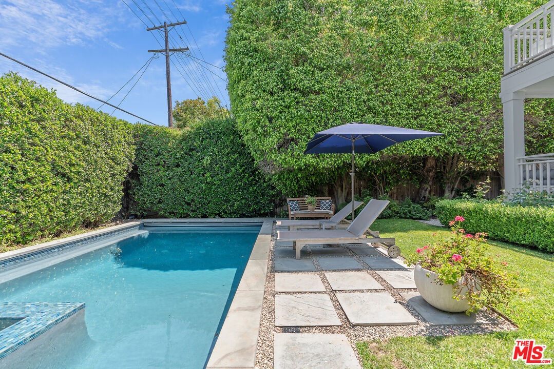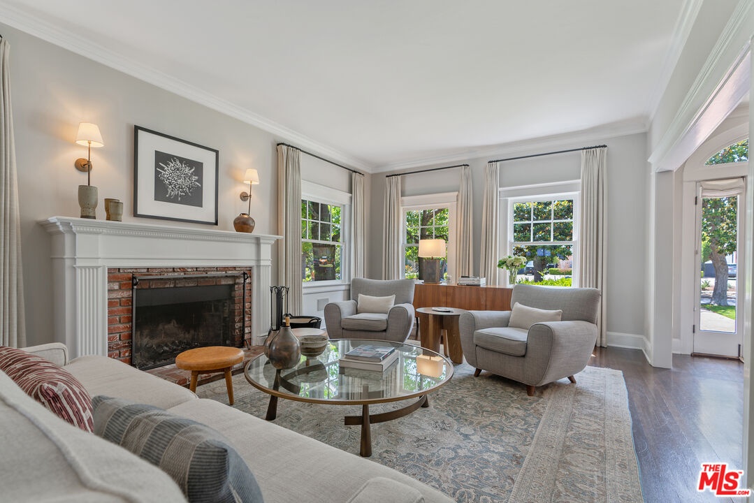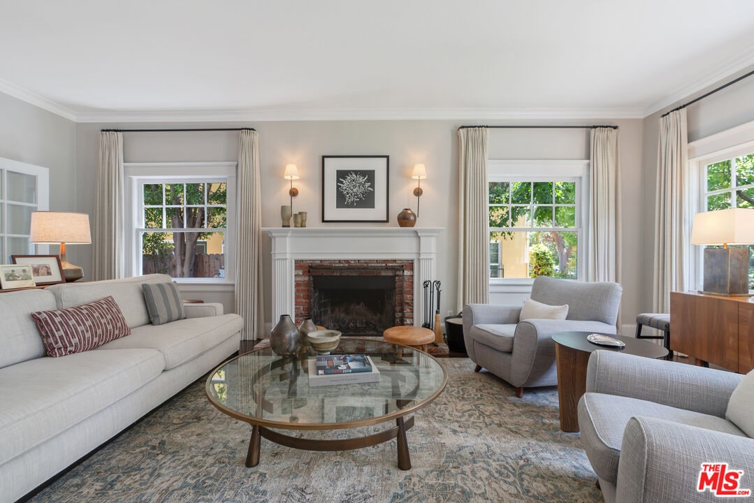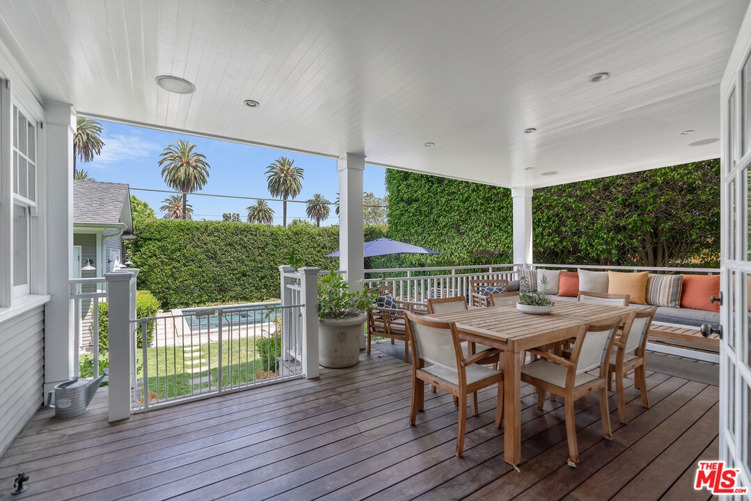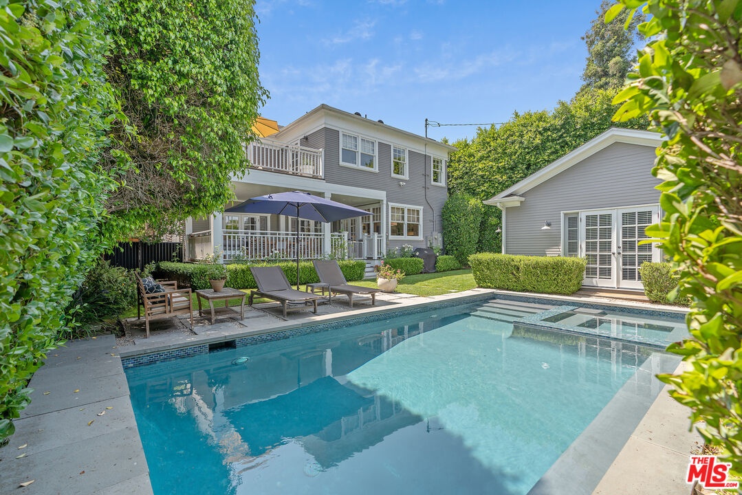 Beautiful East Coast Traditional on Coveted Irving Blvd in Prime Windsor Square. Welcome to this light-filled home that's been lovingly remodeled while keeping all its original charm. A graceful center hall with a sweeping staircase sets the tone as you step inside. To the right, a bright living room with a fireplace opens through French doors to a cozy den overlooking the yard, the perfect spot to relax, watch TV or read a book. A breakfast room connects to the fantastic cook's kitchen featuring high-end appliances, a large center island, tons of storage, and endless counter space. There's even a casual dining area and hangout space with views of the gardens. The back of the house opens to a large entertaining deck that's ideal for summer BBQs and family dinners. You'll also find a formal dining room, a small butler's pantry, and a stylish powder room on this level. Upstairs, the spacious primary suite sits quietly at the back of the house and includes a large walk-in closet, a spa-like bath with a steam shower, and a private roof deck with city and neighborhood views. Three additional bedrooms, two beautifully remodeled bathrooms, and a laundry room complete the second floor. The third floor offers a great bonus space perfect for a gym, playroom, or home office. Out back, the private, hedged yard feels like your own little retreat with a newer pool and spa, outdoor shower, and a great guest house for family and friends. All this just moments from Larchmont Village and everything Windsor Square has to offer. Square footage includes the main house, 3rd floor gym/office and guest house.