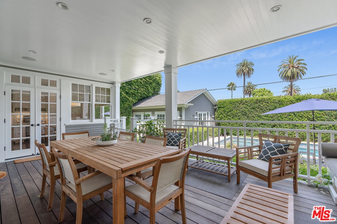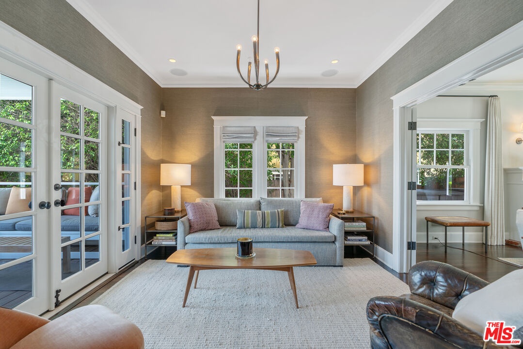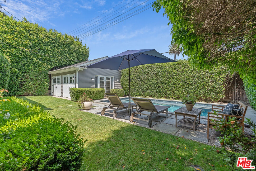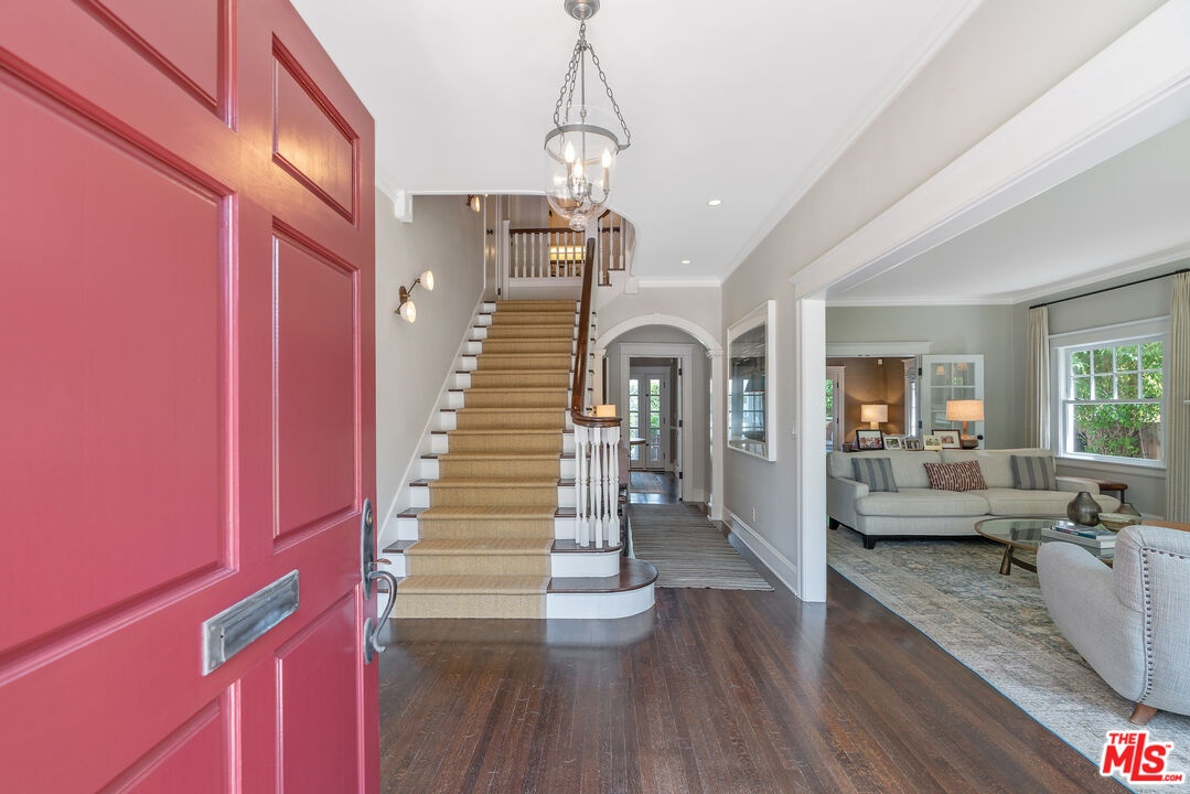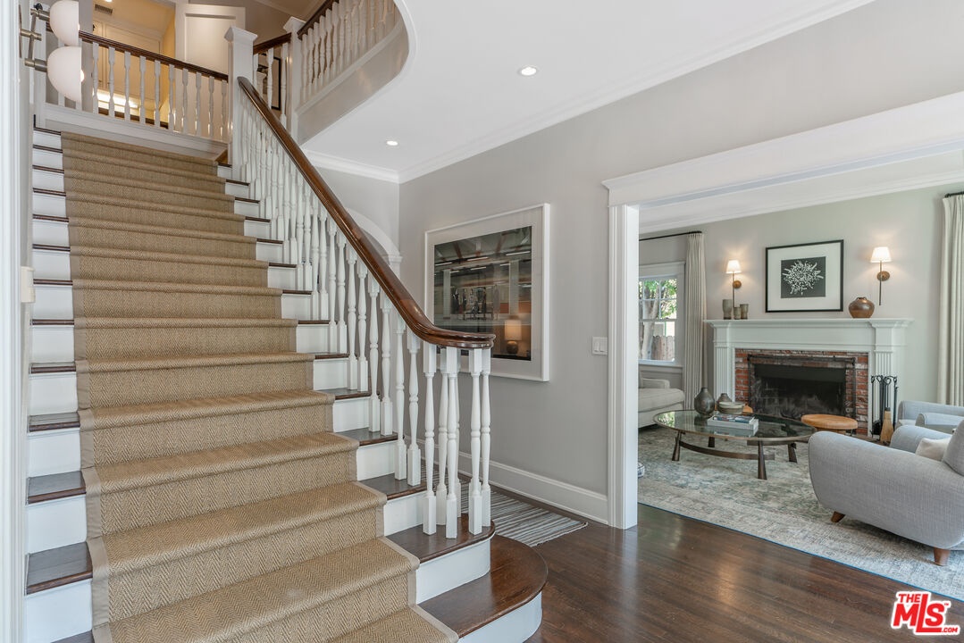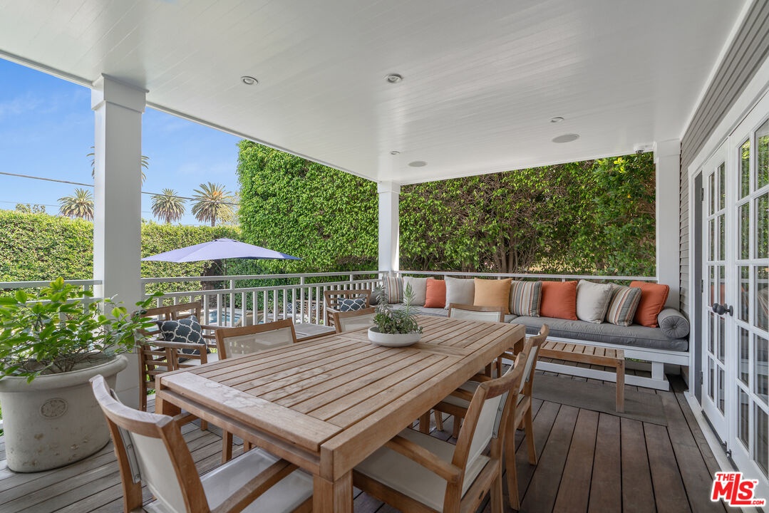 Beautiful East Coast Traditional on Coveted Irving Blvd in Prime Windsor Square. Welcome to this light-filled home that's been lovingly remodeled while keeping all its original charm. A graceful center hall with a sweeping staircase sets the tone as you step inside. To the right, a bright living room with a fireplace opens through French doors to a cozy den overlooking the yard, the perfect spot to relax, watch TV or read a book. A breakfast room connects to the fantastic cook's kitchen featuring high-end appliances, a large center island, tons of storage, and endless counter space. There's even a casual dining area and hangout space with views of the gardens. The back of the house opens to a large entertaining deck that's ideal for summer BBQs and family dinners. You'll also find a formal dining room, a small butler's pantry, and a stylish powder room on this level. Upstairs, the spacious primary suite sits quietly at the back of the house and includes a large walk-in closet, a spa-like bath with a steam shower, and a private roof deck with city and neighborhood views. Three additional bedrooms, two beautifully remodeled bathrooms, and a laundry room complete the second floor. The third floor offers a great bonus space perfect for a gym, playroom, or home office. Out back, the private, hedged yard feels like your own little retreat with a newer pool and spa, outdoor shower, and a great guest house for family and friends. All this just moments from Larchmont Village and everything Windsor Square has to offer. Square footage includes the main house, 3rd floor gym/office and guest house.