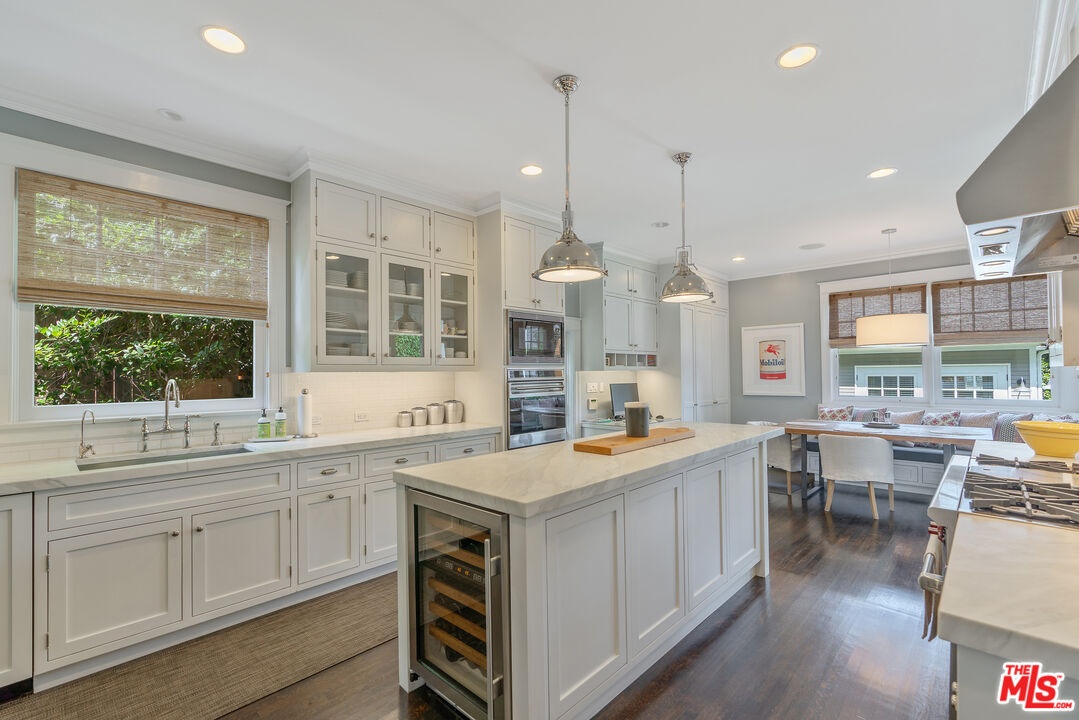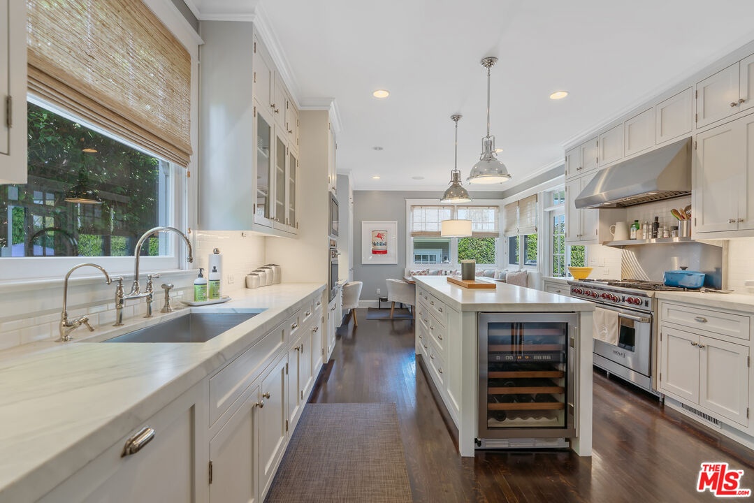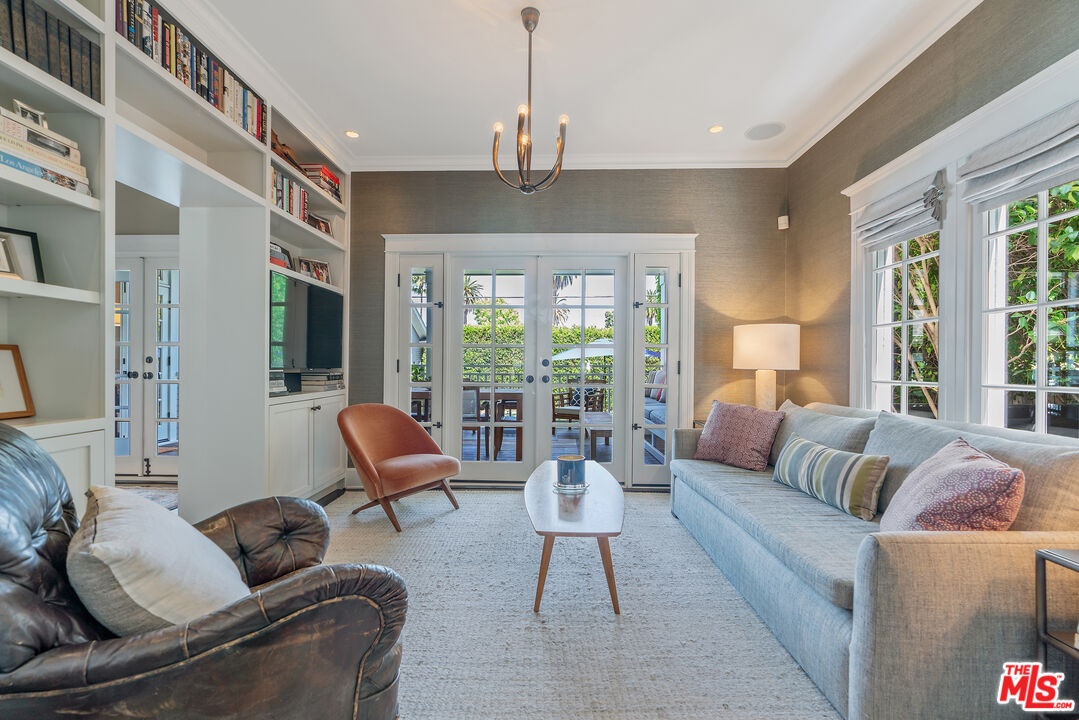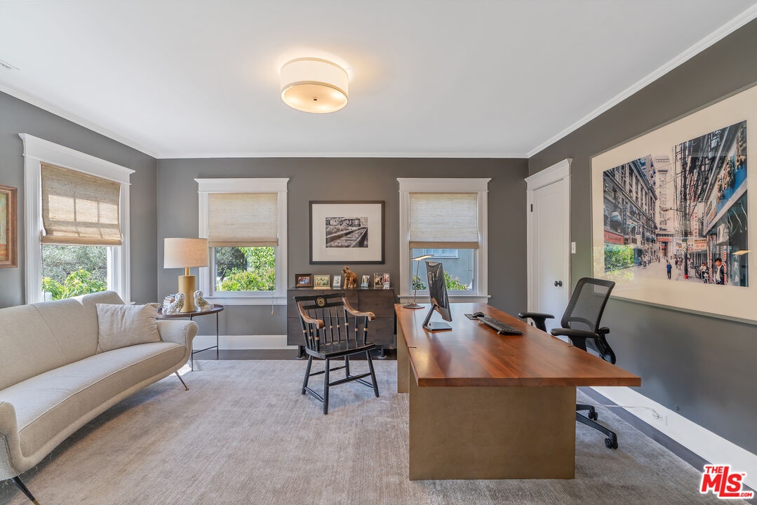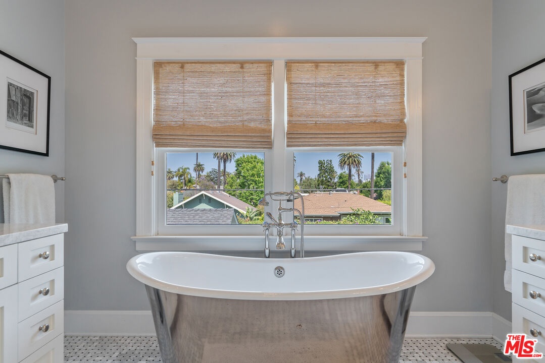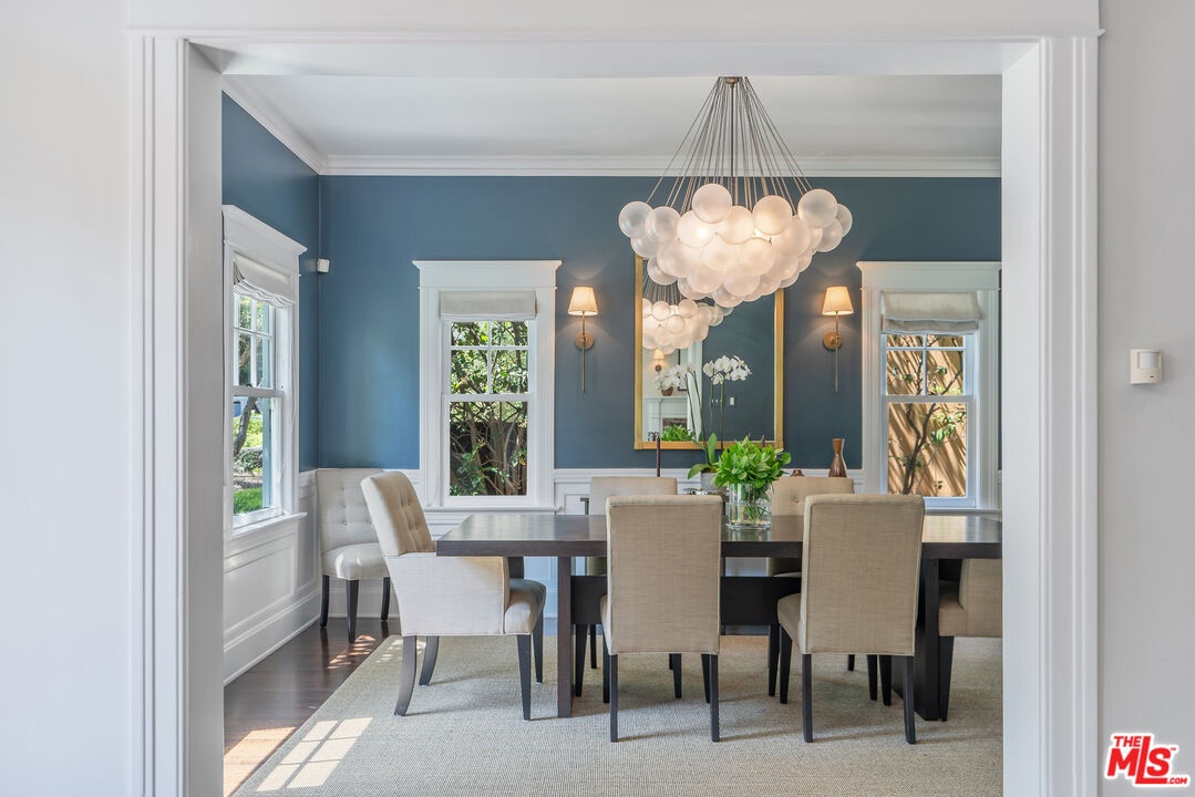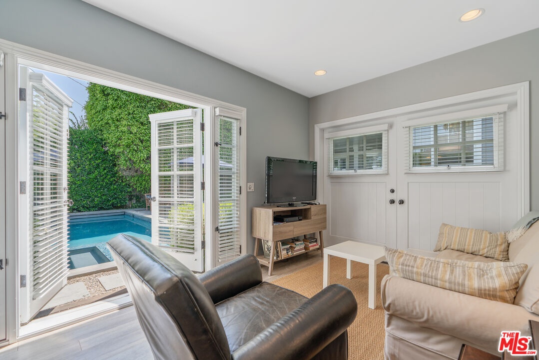 Beautiful East Coast Traditional on Coveted Irving Blvd in Prime Windsor Square. Welcome to this light-filled home that's been lovingly remodeled while keeping all its original charm. A graceful center hall with a sweeping staircase sets the tone as you step inside. To the right, a bright living room with a fireplace opens through French doors to a cozy den overlooking the yard, the perfect spot to relax, watch TV or read a book. A breakfast room connects to the fantastic cook's kitchen featuring high-end appliances, a large center island, tons of storage, and endless counter space. There's even a casual dining area and hangout space with views of the gardens. The back of the house opens to a large entertaining deck that's ideal for summer BBQs and family dinners. You'll also find a formal dining room, a small butler's pantry, and a stylish powder room on this level. Upstairs, the spacious primary suite sits quietly at the back of the house and includes a large walk-in closet, a spa-like bath with a steam shower, and a private roof deck with city and neighborhood views. Three additional bedrooms, two beautifully remodeled bathrooms, and a laundry room complete the second floor. The third floor offers a great bonus space perfect for a gym, playroom, or home office. Out back, the private, hedged yard feels like your own little retreat with a newer pool and spa, outdoor shower, and a great guest house for family and friends. All this just moments from Larchmont Village and everything Windsor Square has to offer. Square footage includes the main house, 3rd floor gym/office and guest house.