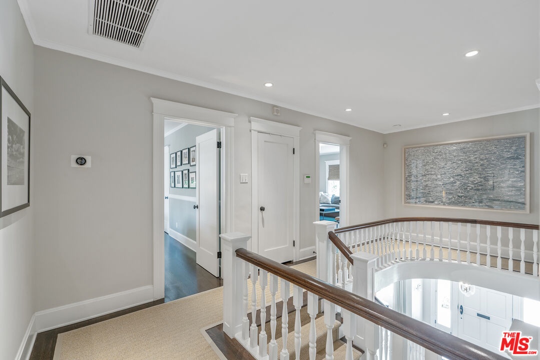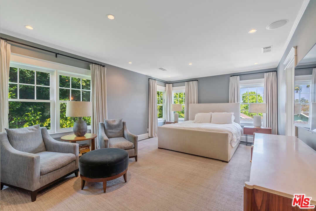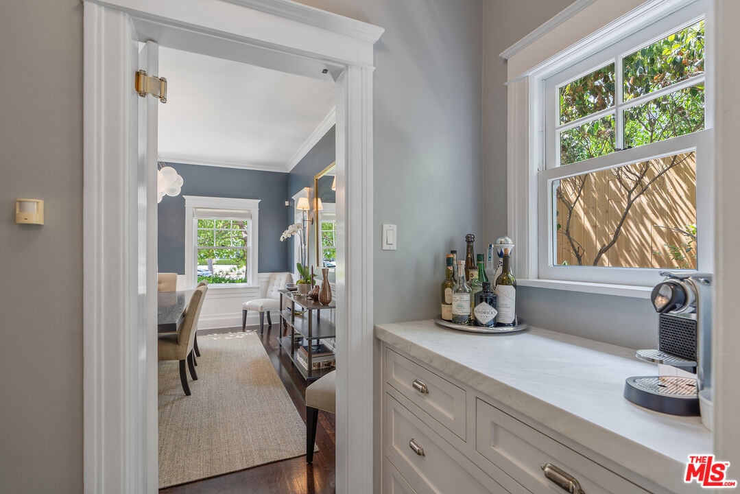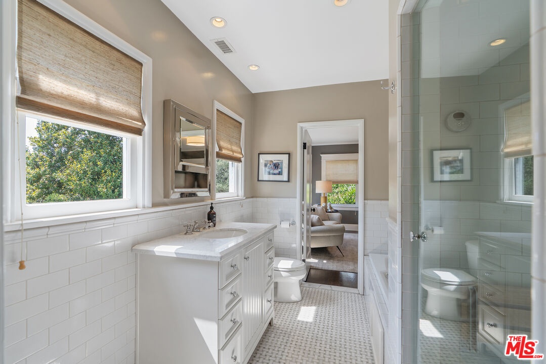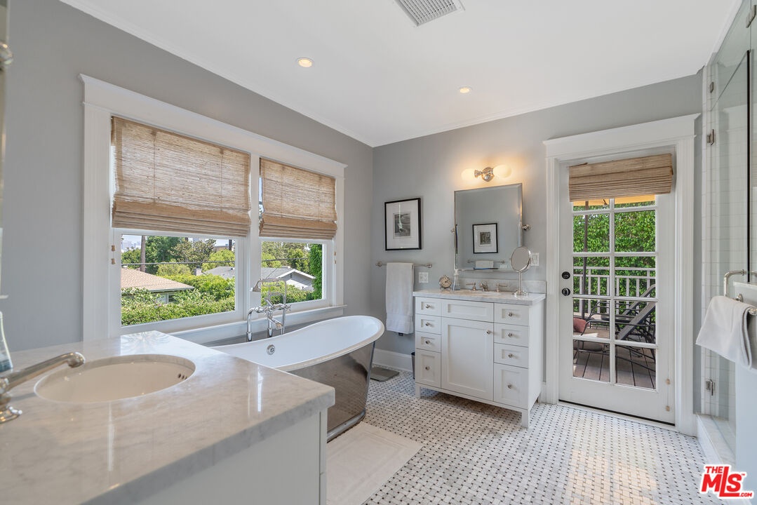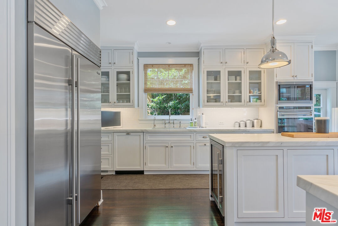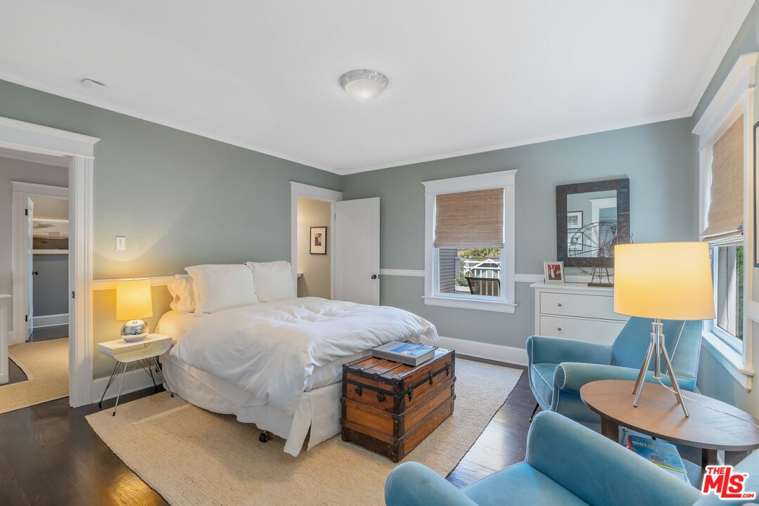 Beautiful East Coast Traditional on Coveted Irving Blvd in Prime Windsor Square. Welcome to this light-filled home that's been lovingly remodeled while keeping all its original charm. A graceful center hall with a sweeping staircase sets the tone as you step inside. To the right, a bright living room with a fireplace opens through French doors to a cozy den overlooking the yard, the perfect spot to relax, watch TV or read a book. A breakfast room connects to the fantastic cook's kitchen featuring high-end appliances, a large center island, tons of storage, and endless counter space. There's even a casual dining area and hangout space with views of the gardens. The back of the house opens to a large entertaining deck that's ideal for summer BBQs and family dinners. You'll also find a formal dining room, a small butler's pantry, and a stylish powder room on this level. Upstairs, the spacious primary suite sits quietly at the back of the house and includes a large walk-in closet, a spa-like bath with a steam shower, and a private roof deck with city and neighborhood views. Three additional bedrooms, two beautifully remodeled bathrooms, and a laundry room complete the second floor. The third floor offers a great bonus space perfect for a gym, playroom, or home office. Out back, the private, hedged yard feels like your own little retreat with a newer pool and spa, outdoor shower, and a great guest house for family and friends. All this just moments from Larchmont Village and everything Windsor Square has to offer. Square footage includes the main house, 3rd floor gym/office and guest house.