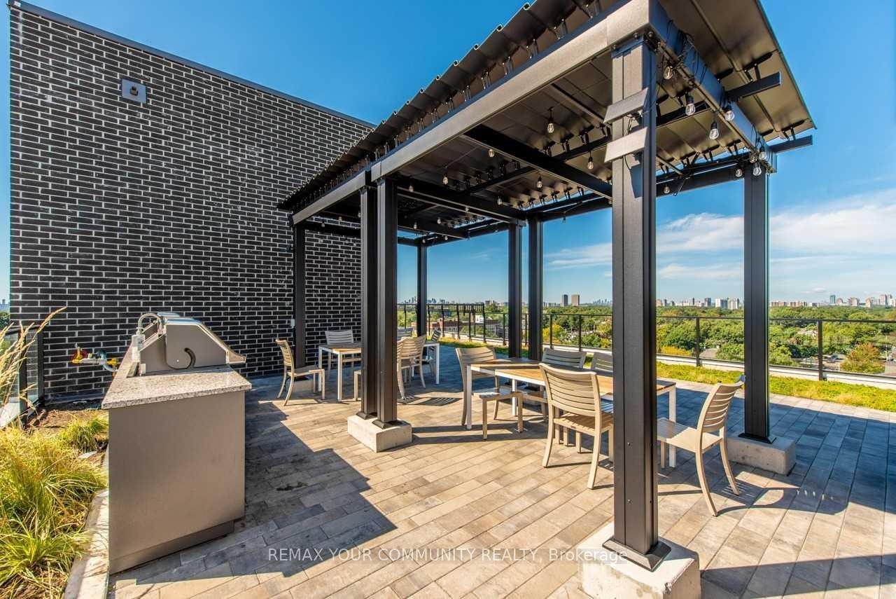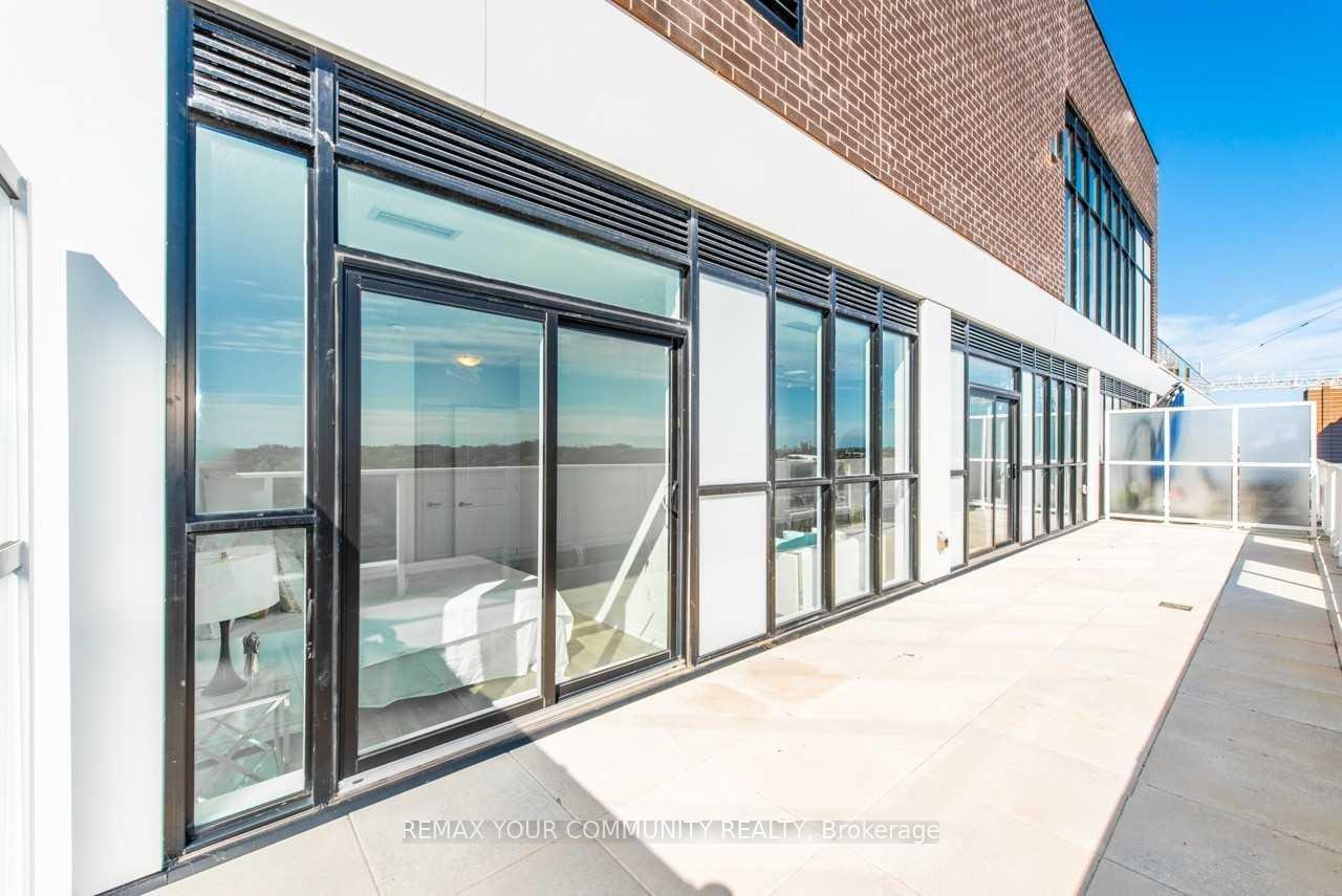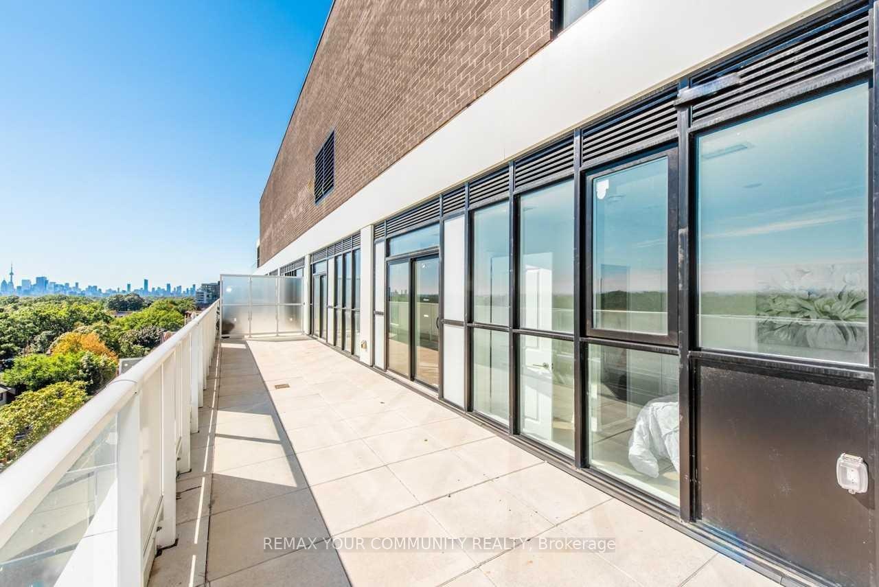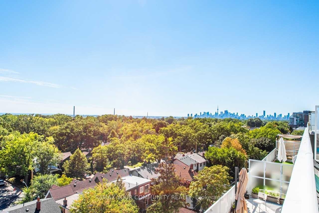 Welcome to this stunning penthouse at CANVAS Boutique Condos. This fully furnished 2-bedroom, 2-bathroom suite offers unobstructed southwest views from the top floor, showcasing the Toronto skyline, Toronto Islands, lush green space, and the waterfront. Floor-to-ceiling windows and 9ft ceilings, flood the unit with natural light and provide breathtaking panoramic views. Access to your 416 sqft private terrace from the living room and primary room with your own BBQ gas line! This unit is fully upgraded with with pot lights throughout, granite countertops, backsplash, stainless steel appliances and a paneled dishwasher, and a deep sink. Includes one parking space and one locker for added convenience. Just move in and enjoy an unbeatable location steps to the subway, shops, cafés, The Beaches, Danforth GO Station, and all the amenities of this vibrant neighbourhood. Building comes with an exercise room, rooftop BBQ with fireplace, parcel room, concierge and 24hr security.