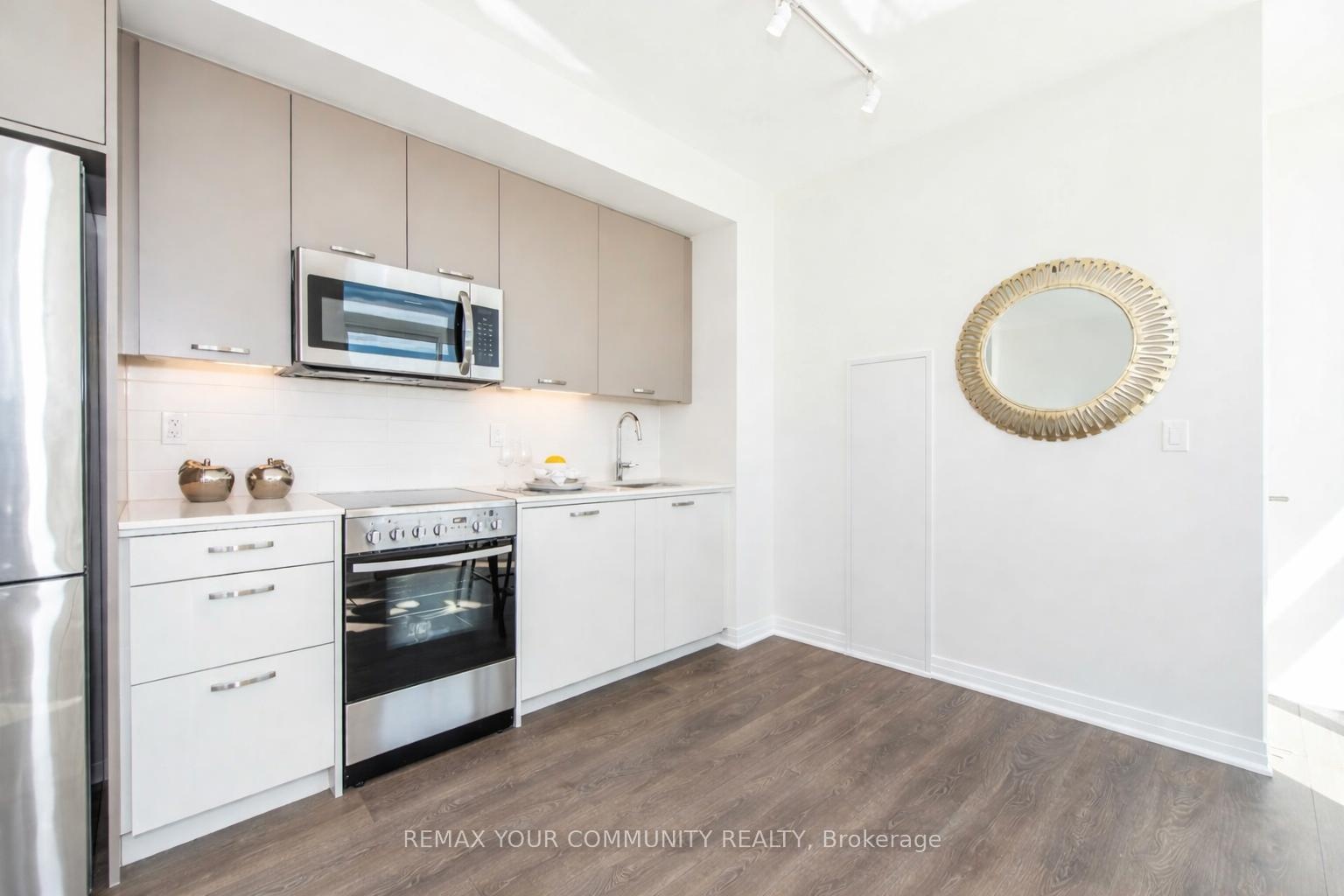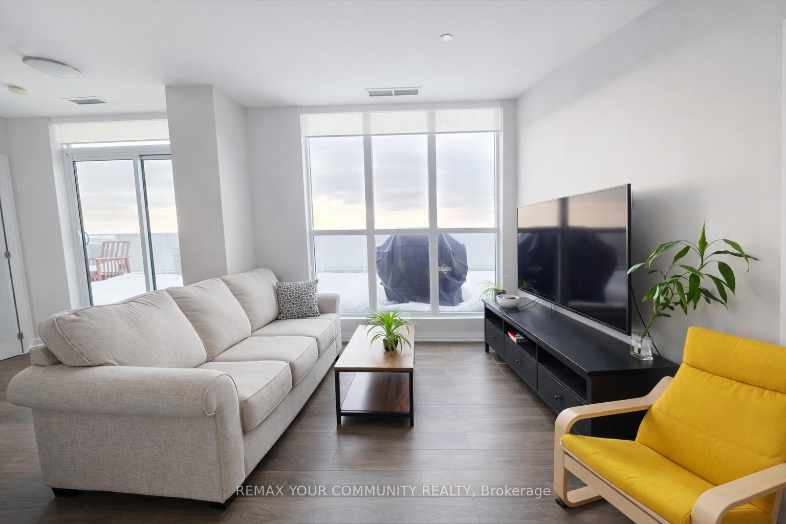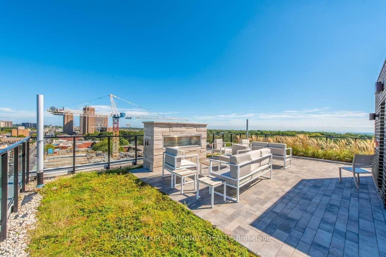 Welcome to this stunning penthouse at CANVAS Boutique Condos. This fully furnished 2-bedroom, 2-bathroom suite offers unobstructed southwest views from the top floor, showcasing the Toronto skyline, Toronto Islands, lush green space, and the waterfront. Floor-to-ceiling windows and 9ft ceilings, flood the unit with natural light and provide breathtaking panoramic views. Access to your 416 sqft private terrace from the living room and primary room with your own BBQ gas line! This unit is fully upgraded with with pot lights throughout, granite countertops, backsplash, stainless steel appliances and a paneled dishwasher, and a deep sink. Includes one parking space and one locker for added convenience. Just move in and enjoy an unbeatable location steps to the subway, shops, cafés, The Beaches, Danforth GO Station, and all the amenities of this vibrant neighbourhood. Building comes with an exercise room, rooftop BBQ with fireplace, parcel room, concierge and 24hr security.