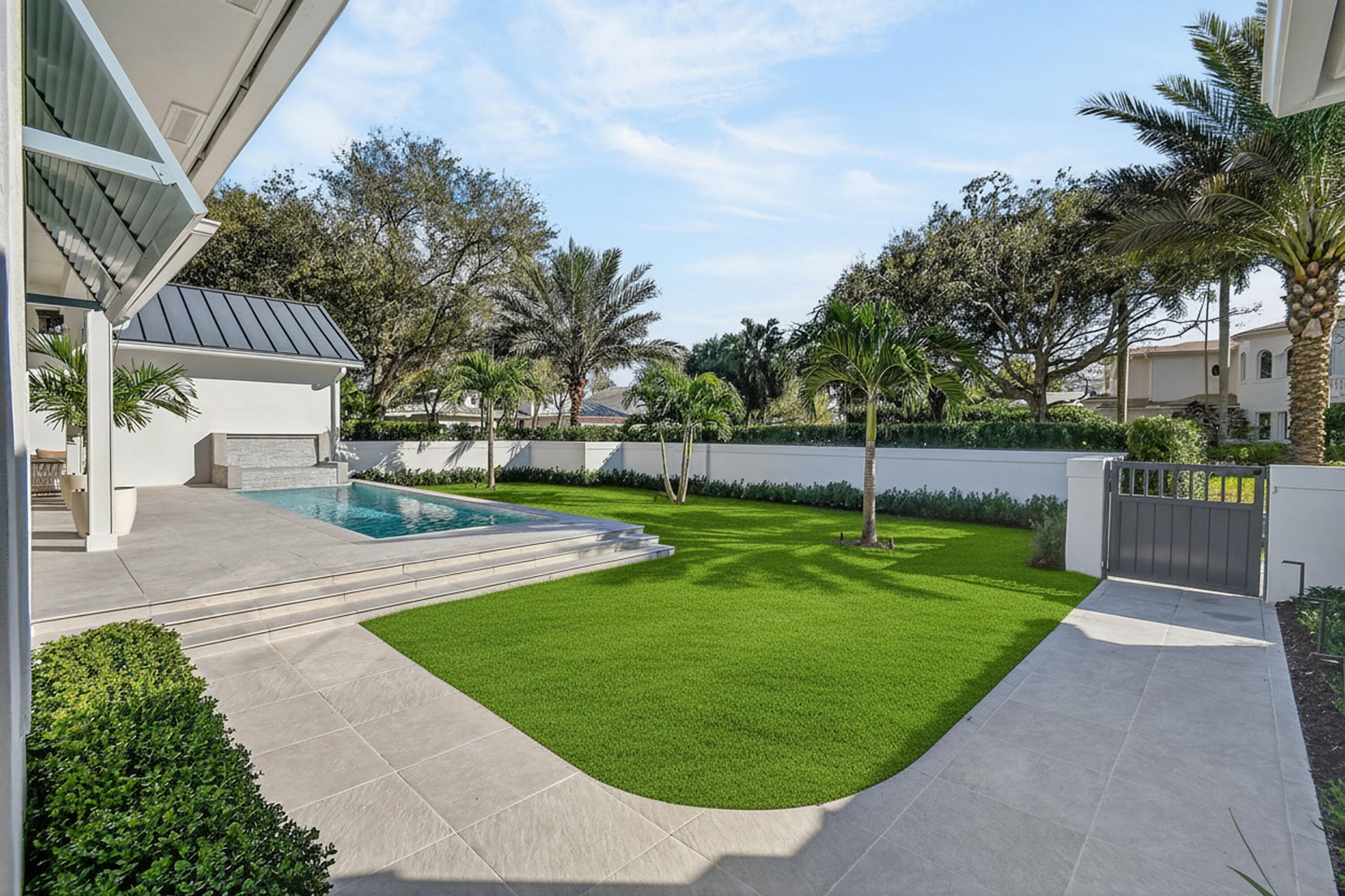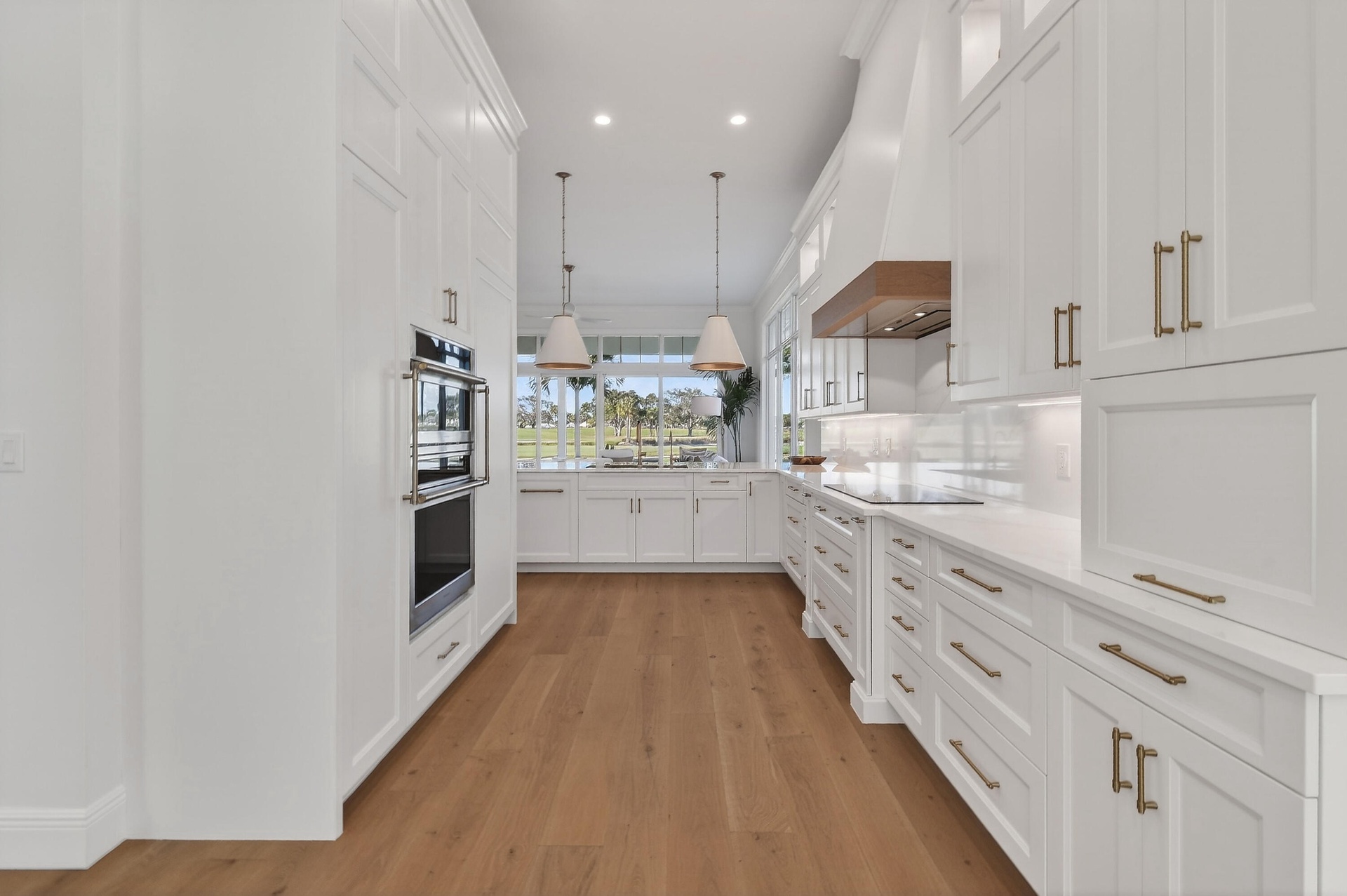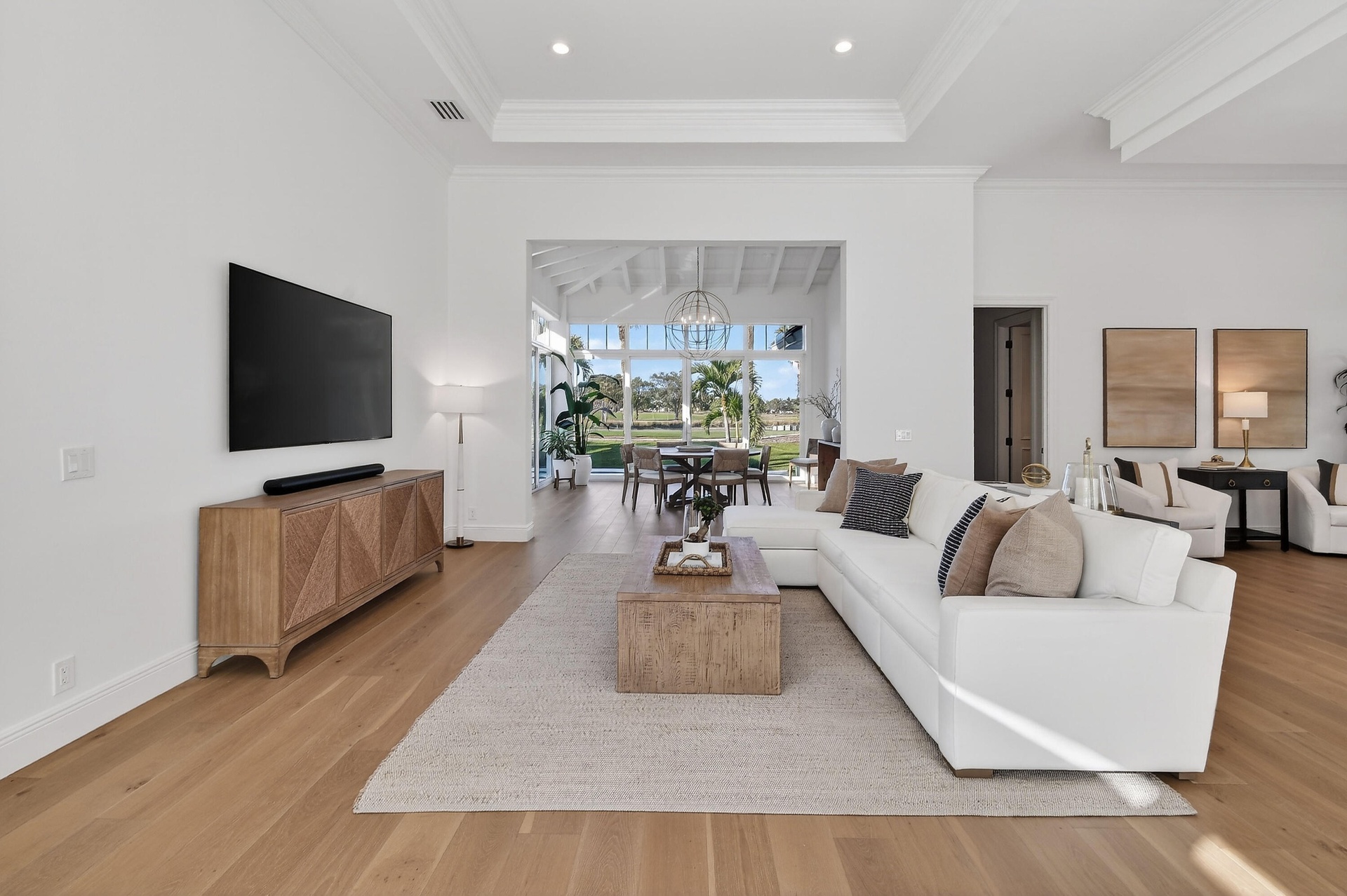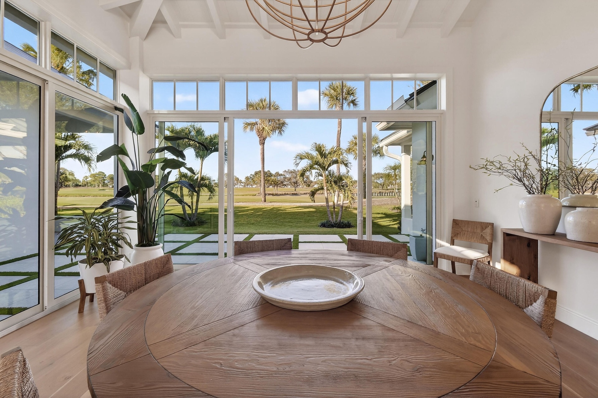 Set along the 18th fairway of The Loxahatchee Club, this fully renovated single-level Key West Contemporary blends coastal charm with modern luxury. Walls of impact glass fill the home with natural light, framing golf and water views that blur the line between indoors and out. Light oak flooring and a designer kitchen with integrated appliances complement the open layout, enhanced by a climate-controlled wine bar. The gathering room features tongue-and-groove ceilings with exposed beams. The primary suite offers dual walk-ins and a spa-inspired bath. With 866 sqft of covered outdoor living, new tropical landscaping, and a 1,210 sqft three-car garage with golf-cart entry, this home delivers refined Florida living along one of the club's most iconic fairways. This 4,564 sq ft single-level Key West Contemporary residence combines coastal design with modern craftsmanship in one of Jupiter's most sought-after private golf communities. Positioned along the 18th fairway, the home captures dramatic golf and water views from its main living spaces and primary suite. A fully permitted, top-to-bottom renovation brings together premium materials, updated systems, a warm coastal palette inspired by South Florida's natural textures, organic shapes, and landscape.