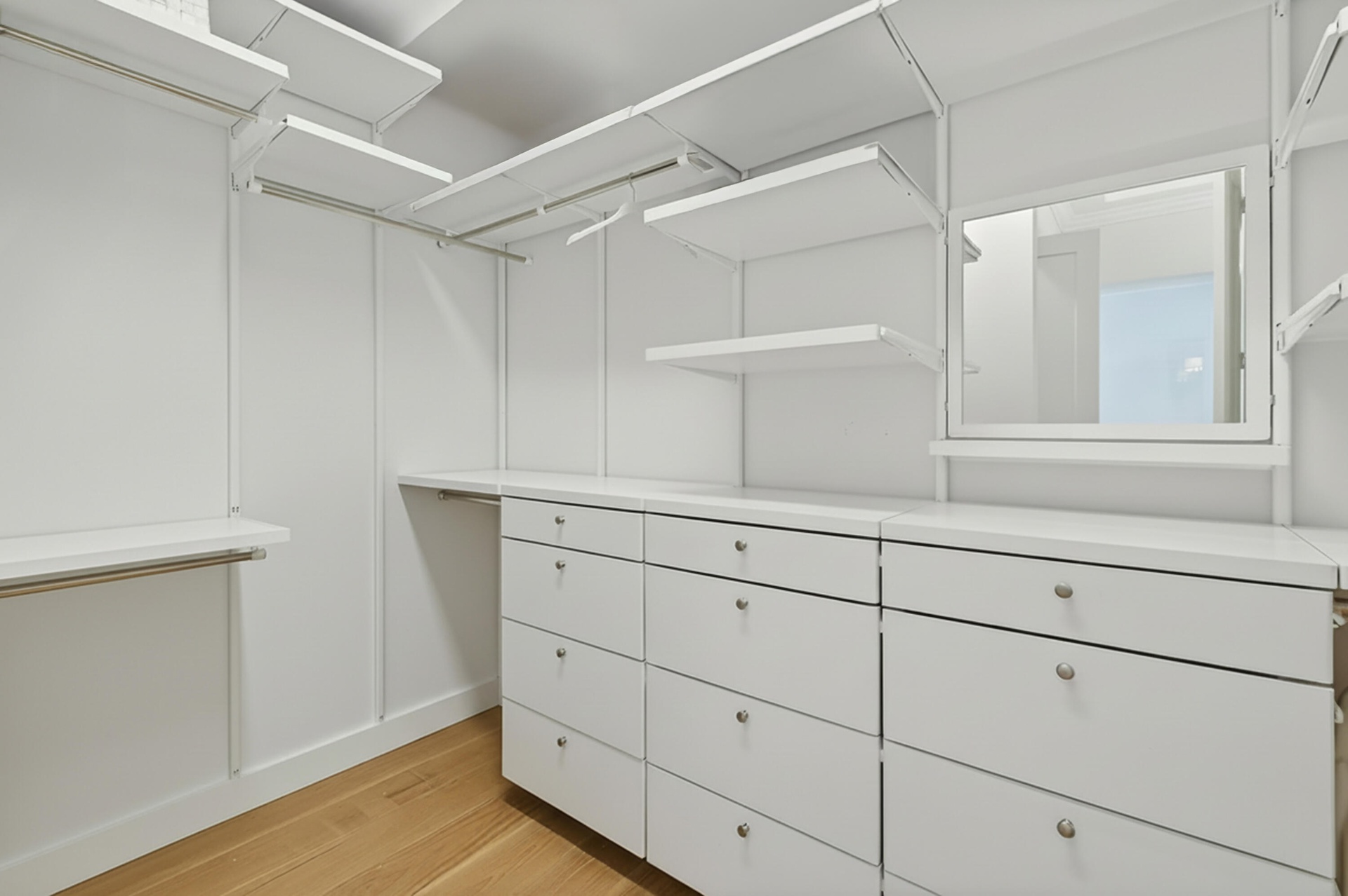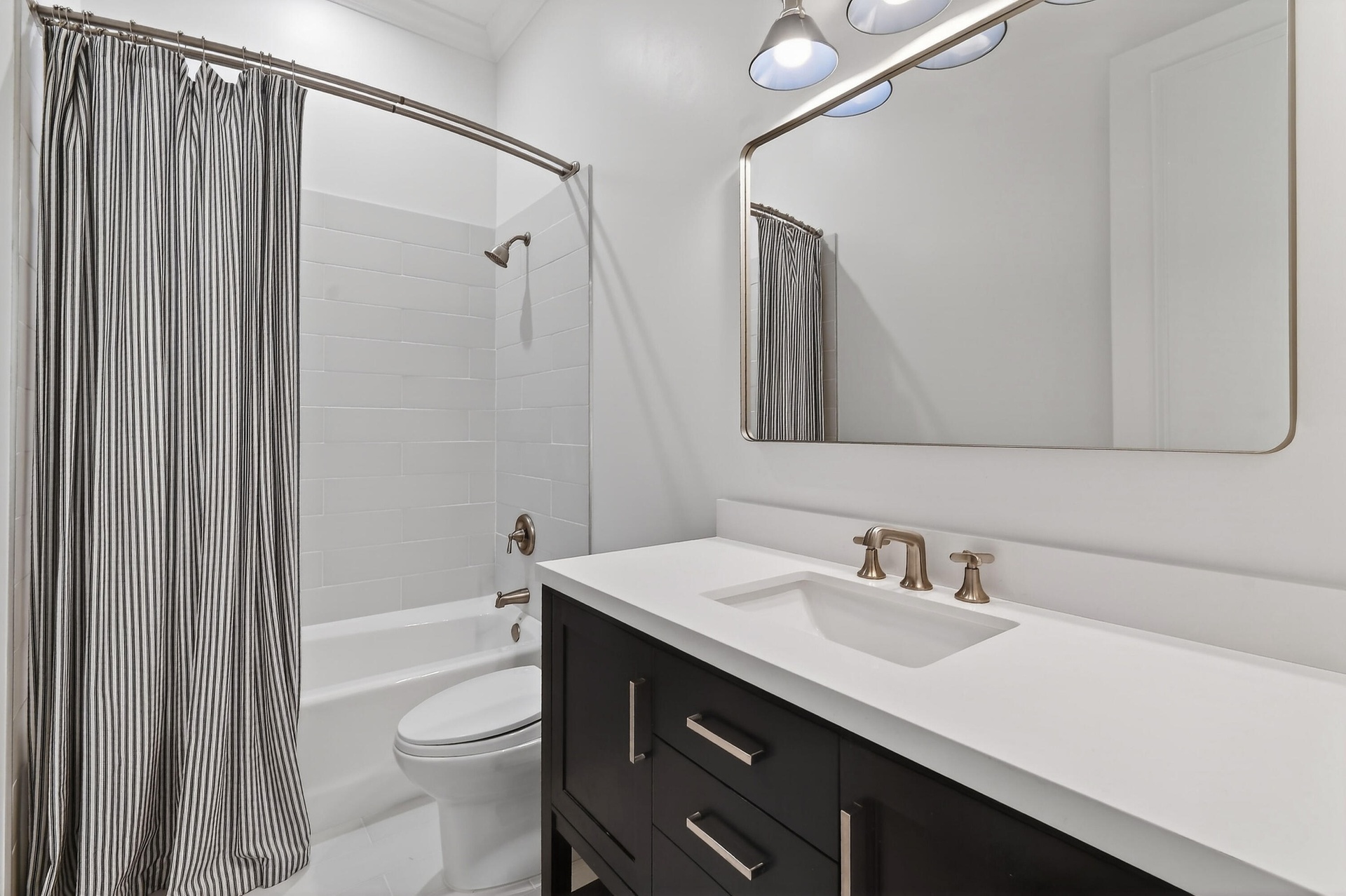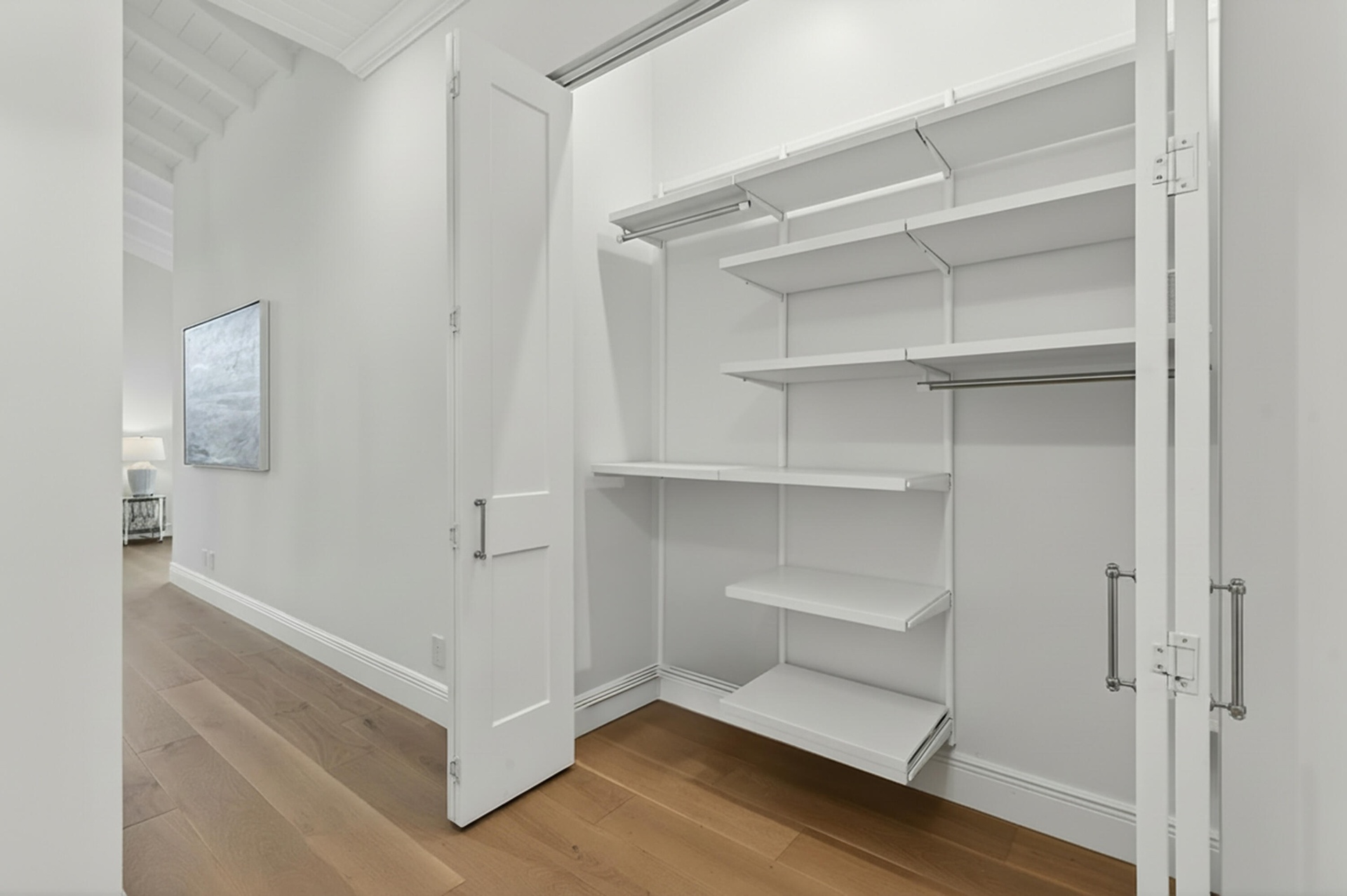 The primary suite is a serene retreat with dual walk-in closets and a spa-inspired bath finished with all-white quartz countertops, a frameless glass shower, and modern fixtures. Four additional bedroomseach with custom-built closets and updated en-suite bathsprovide flexibility for guests, family, or dedicated workspaces.