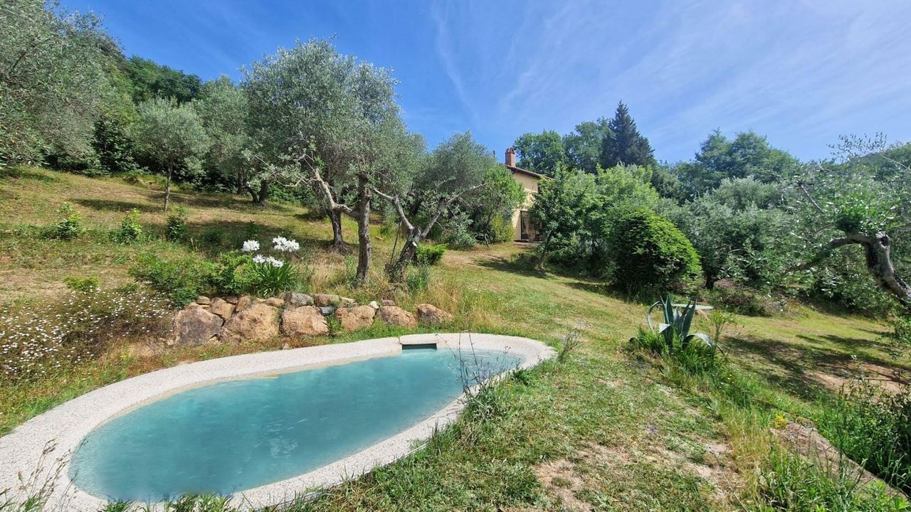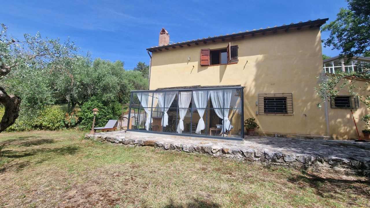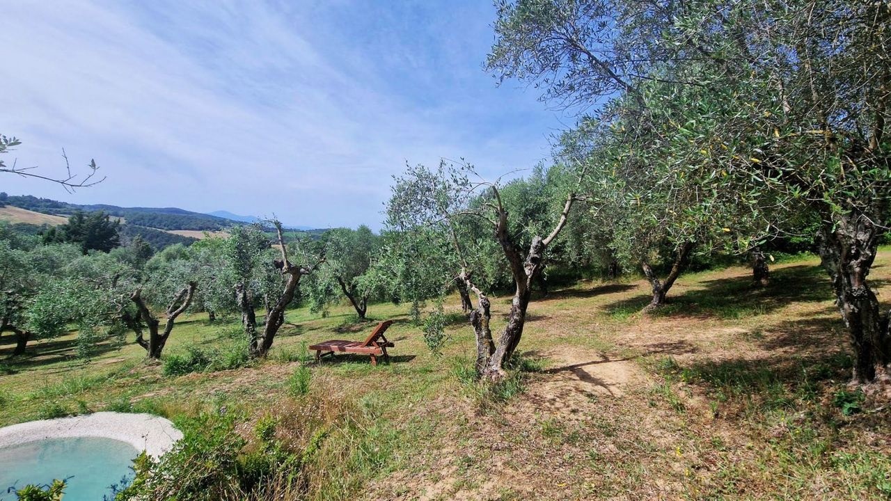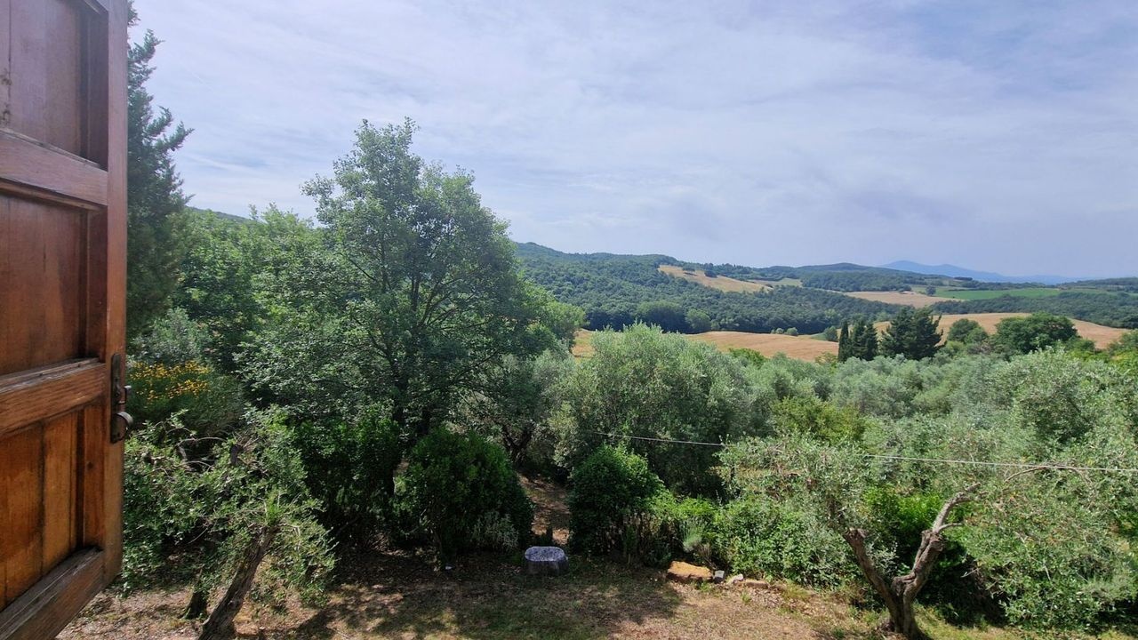 This small detached farmhouse with swimming pool and 1.8 hectares of land is for sale in the relaxing landscape of the Tuscan hills, in a panoramic position less than 2 km from the charming village of Trequanda.