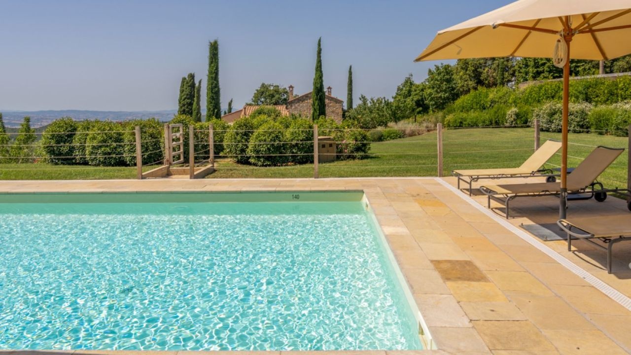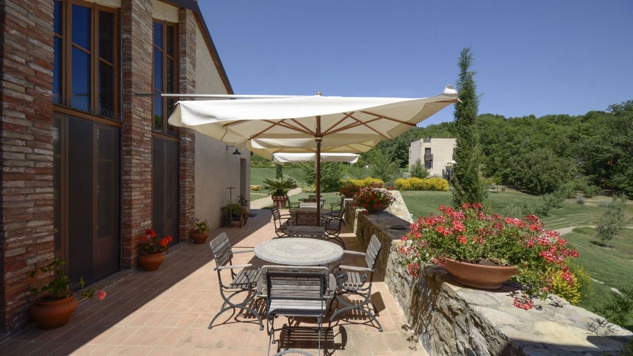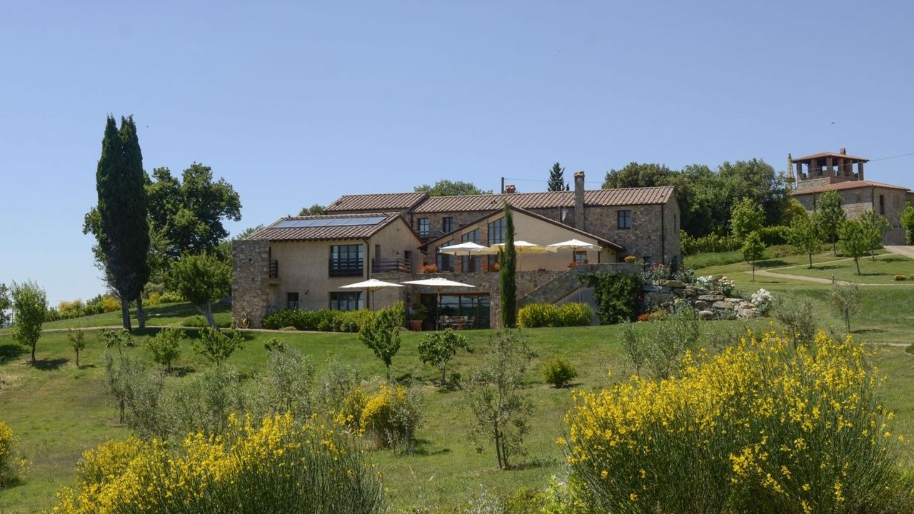 Prestigious residence for sale in the green hills of Maremma, on the edge of the charming Val D'Orcia, surrounded by the vineyards of Montecucco and a short distance from the crystal-clear waters of the Tuscan coast.