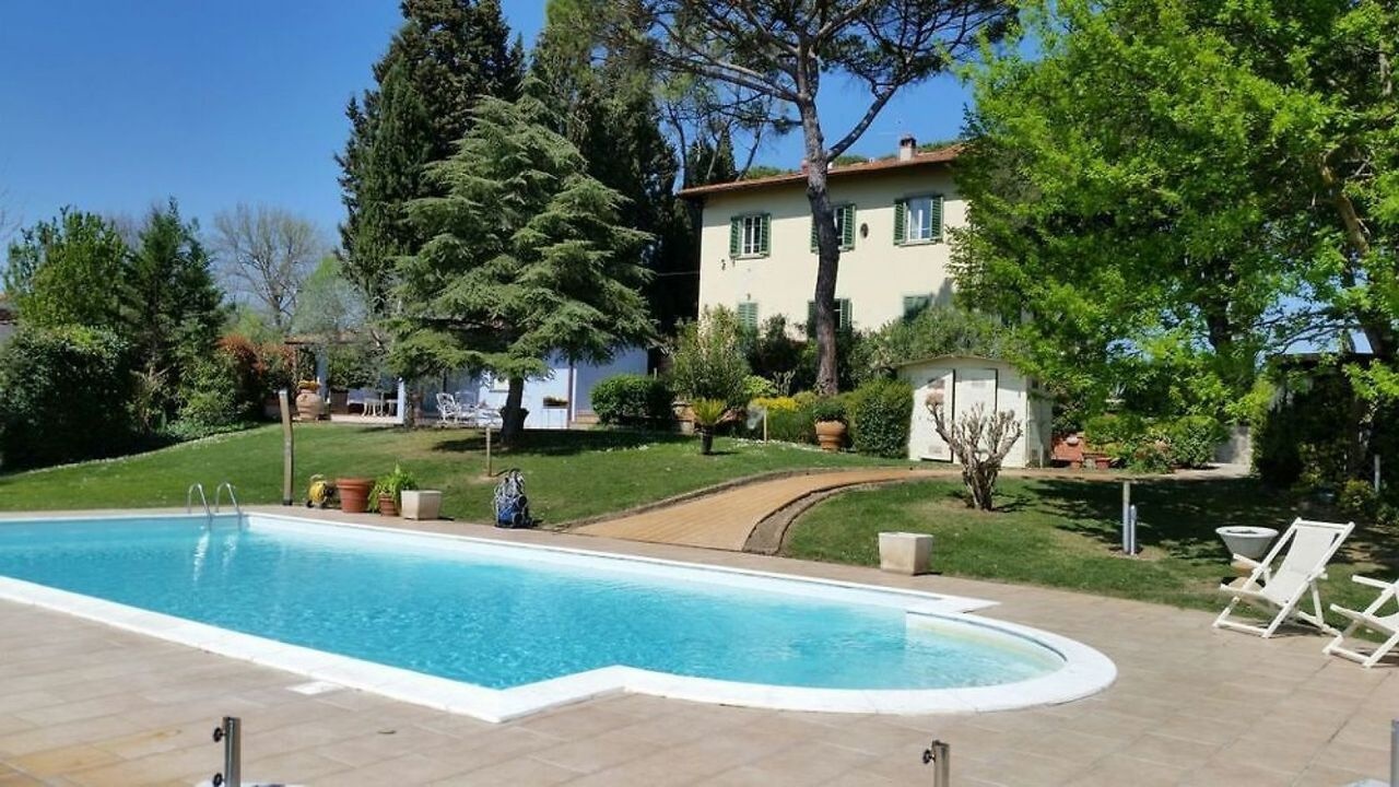Nestled in the exclusive landscape of the Tuscan hills surrounding Florence, this prestigious early 20th-century villa represents a rare blend of historic elegance and contemporary comfort. Set in a dominant and private position, yet perfectly connected to the city and only 3 km from the renowned luxury outlet The Mall, the property offers absolute privacy and a natural setting of extraordinary beauty.
