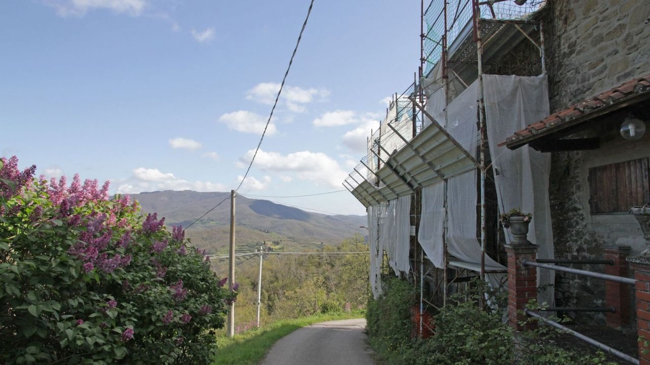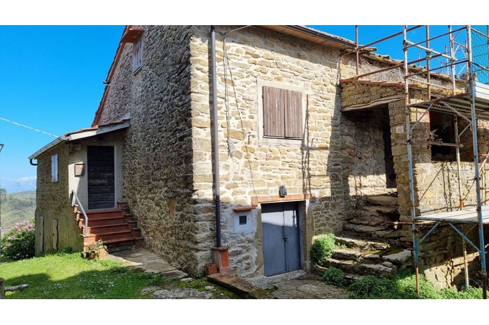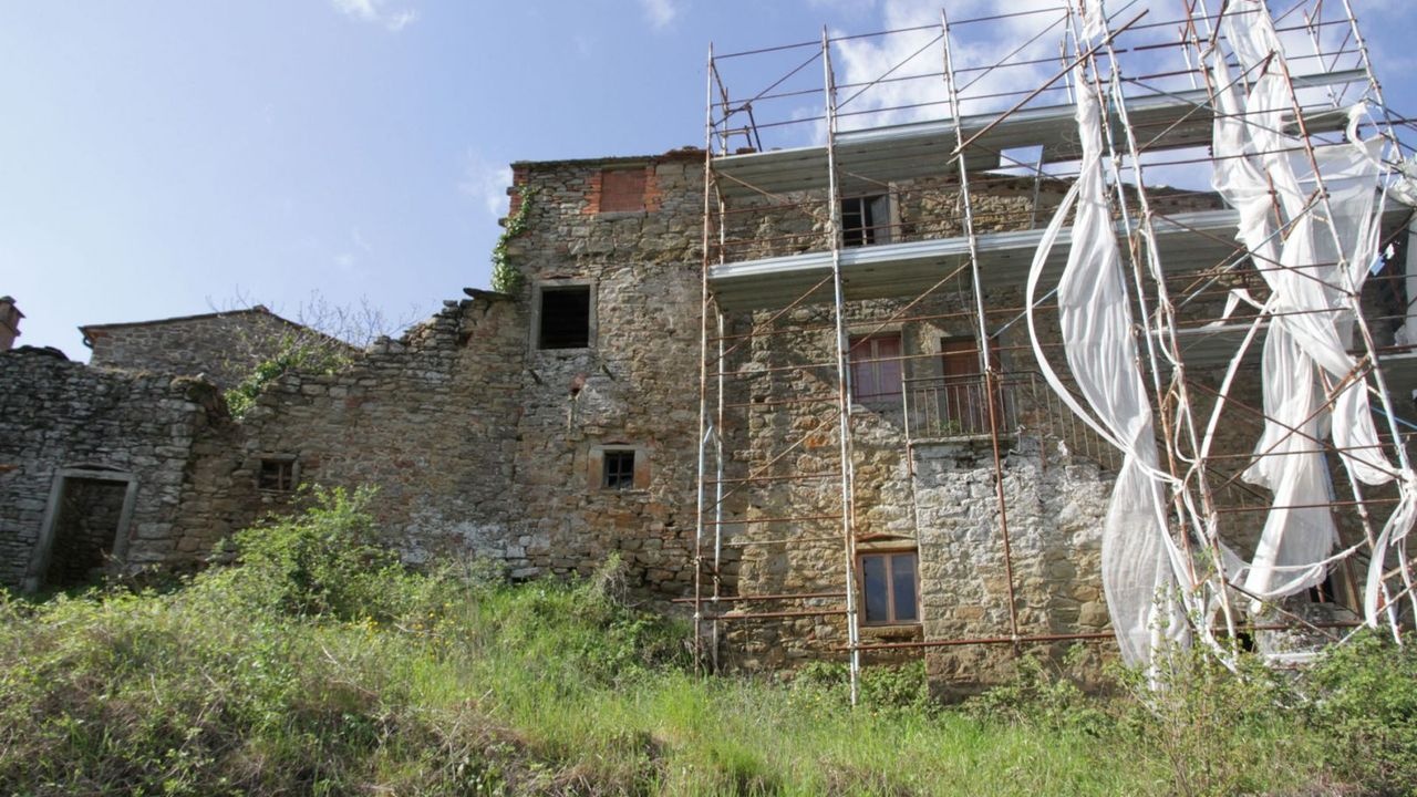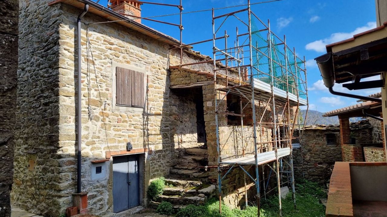 Property in unfinished state forming part of a typical Tuscan stone hamlet in the process of restoration.