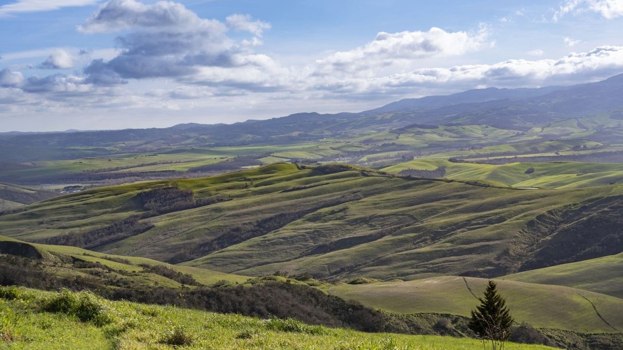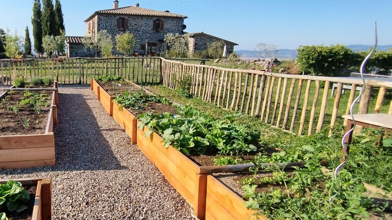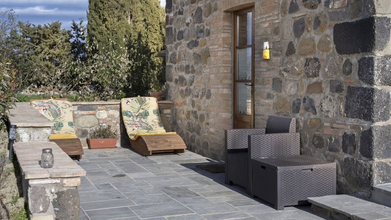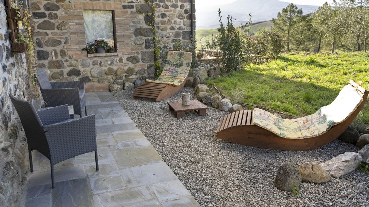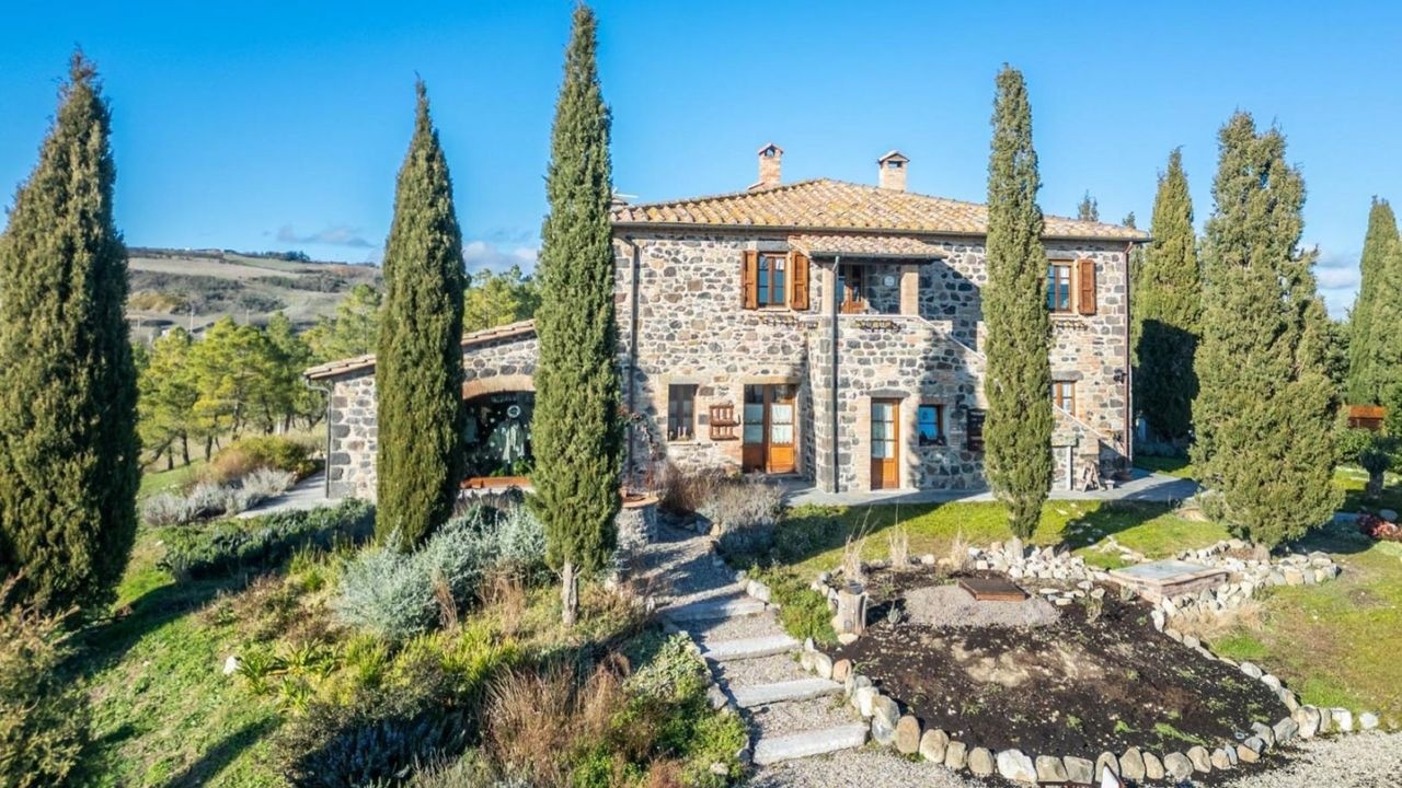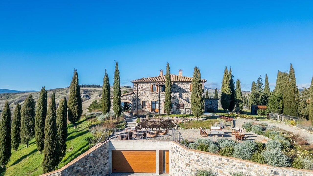 Situated in a dominant position on the ridge, the 450 m2 property enjoys an open view that stretches from the historic tower of Radicofani to the slopes of Monte Amiata, embracing the entire Val d'Orcia landscape.