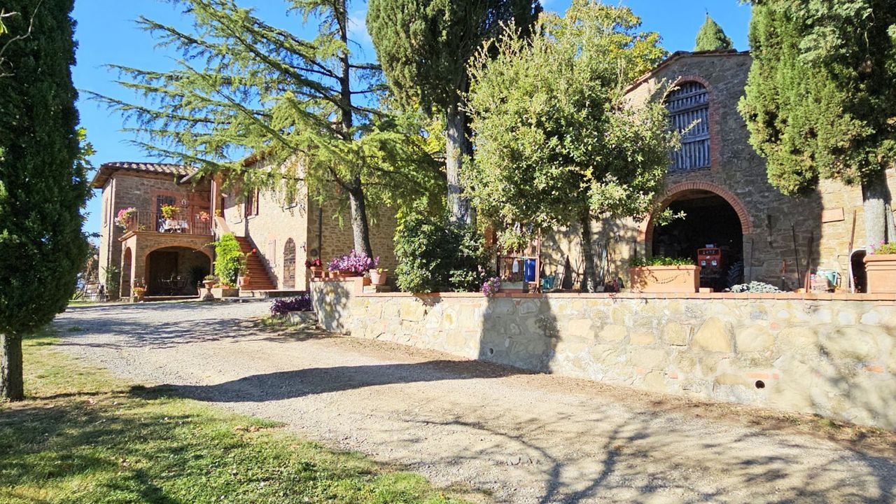 Access to the property is majestic and spectacular, thanks to a private driveway lined with centuries-old cypress trees leading to the large courtyard, dominated by the imposing farmhouse that perfectly embodies the timeless charm of the Tuscan countryside.