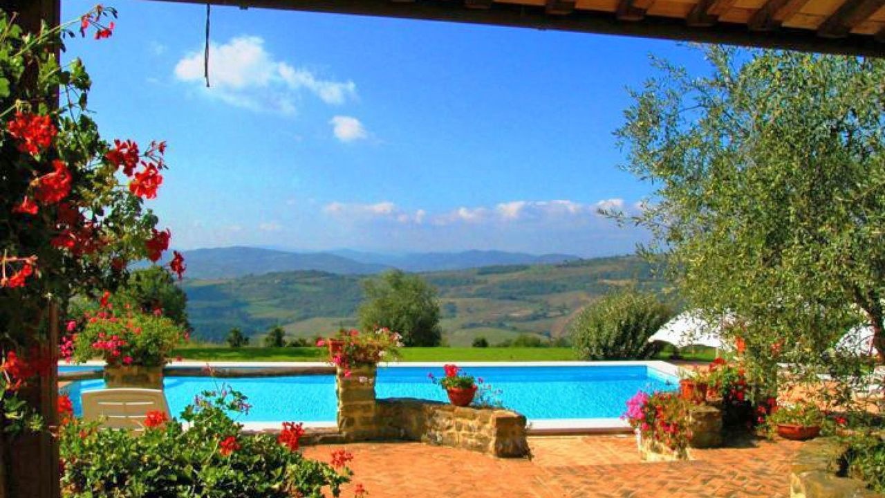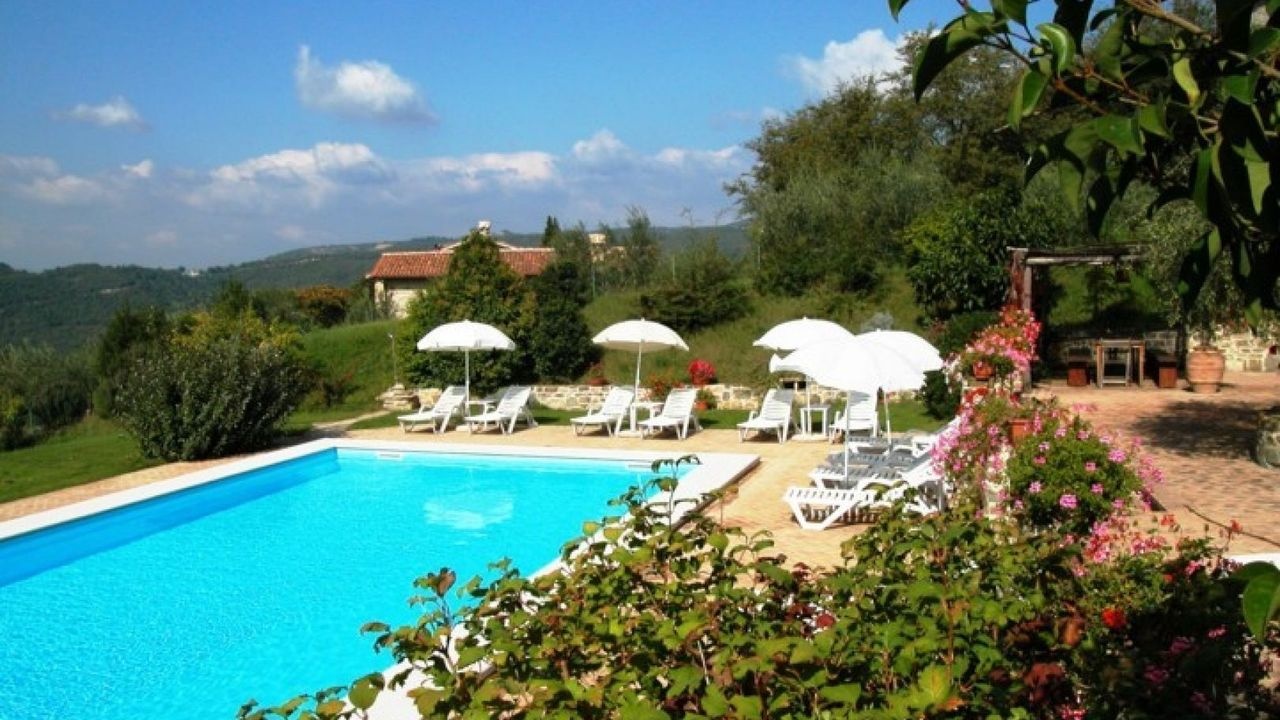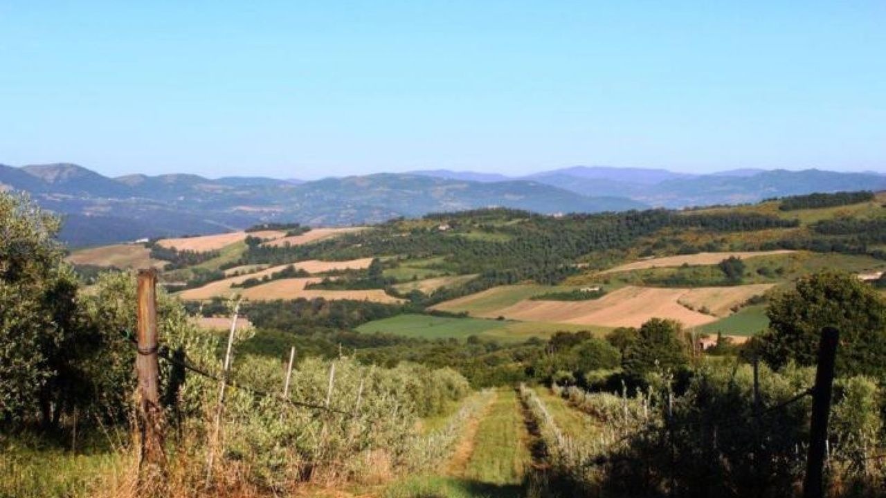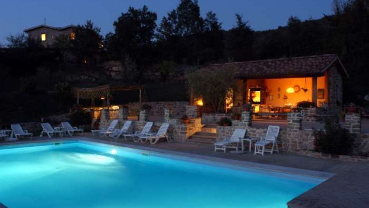 The farm consists of 2 historic stone farmhouses, a business centre and a 14x6 swimming pool situated in a dominant and panoramic position over the Tiber valley.