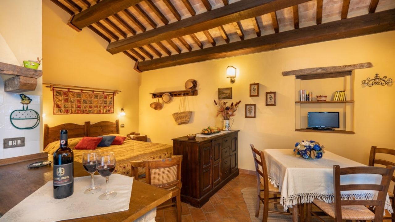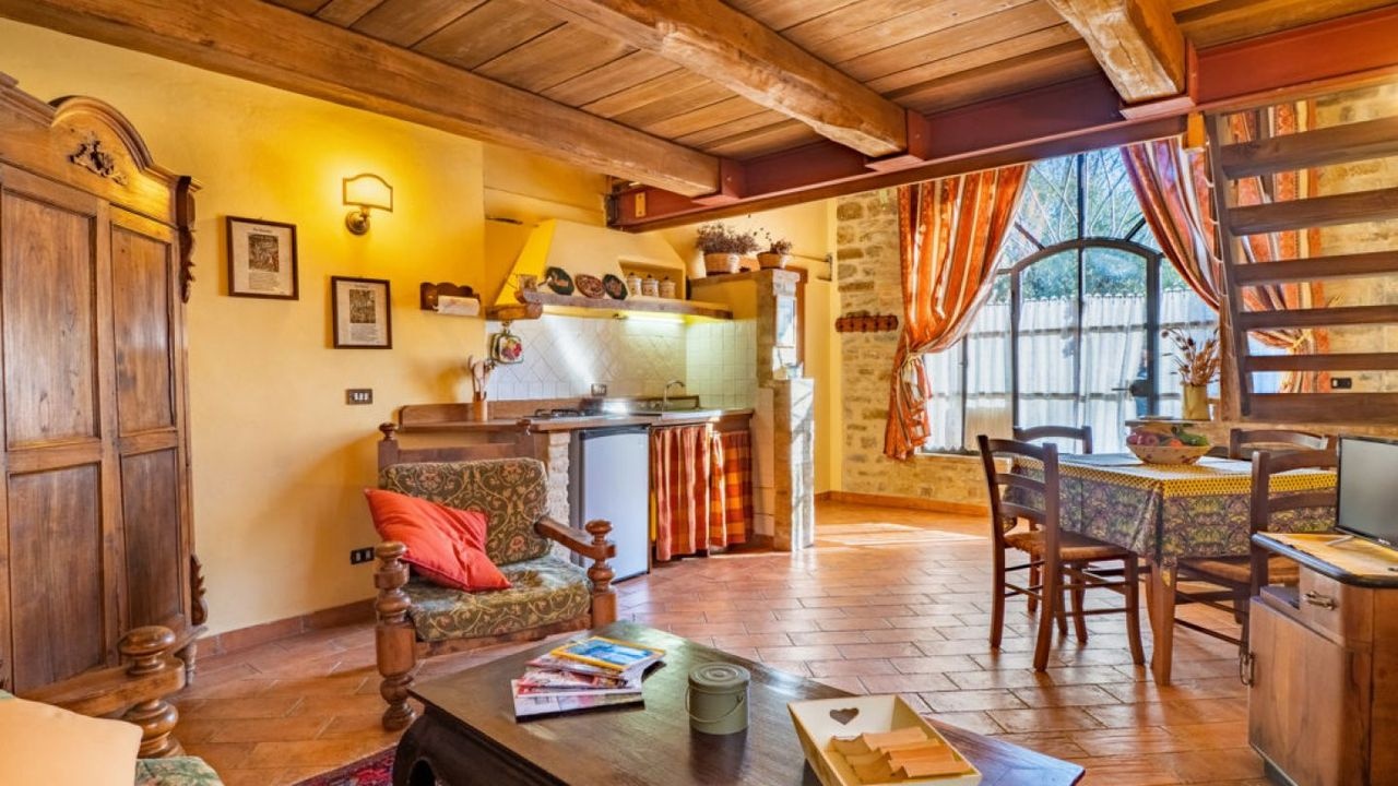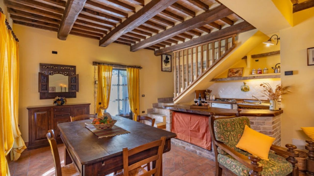 The main farmhouse of about 380 square metres offers a total of 6 flats, of which 3 are one-room flats, 2 two-room flats and a loft, and has been renovated maintaining the rustic style characteristic of the place. From some rooms there is a wonderful view of the Umbrian hills.