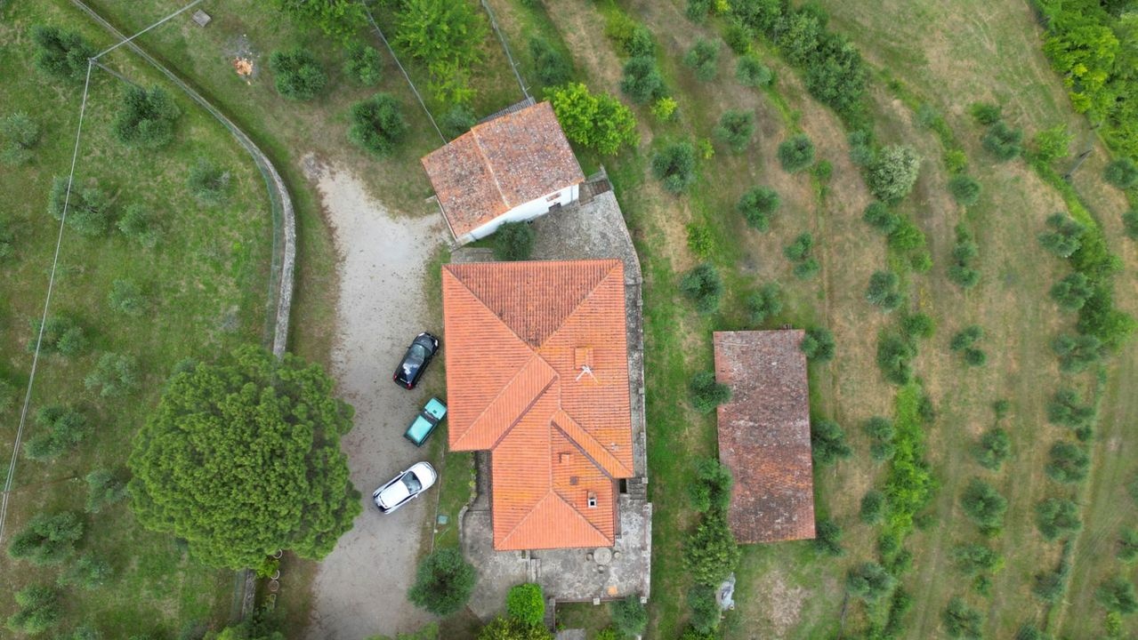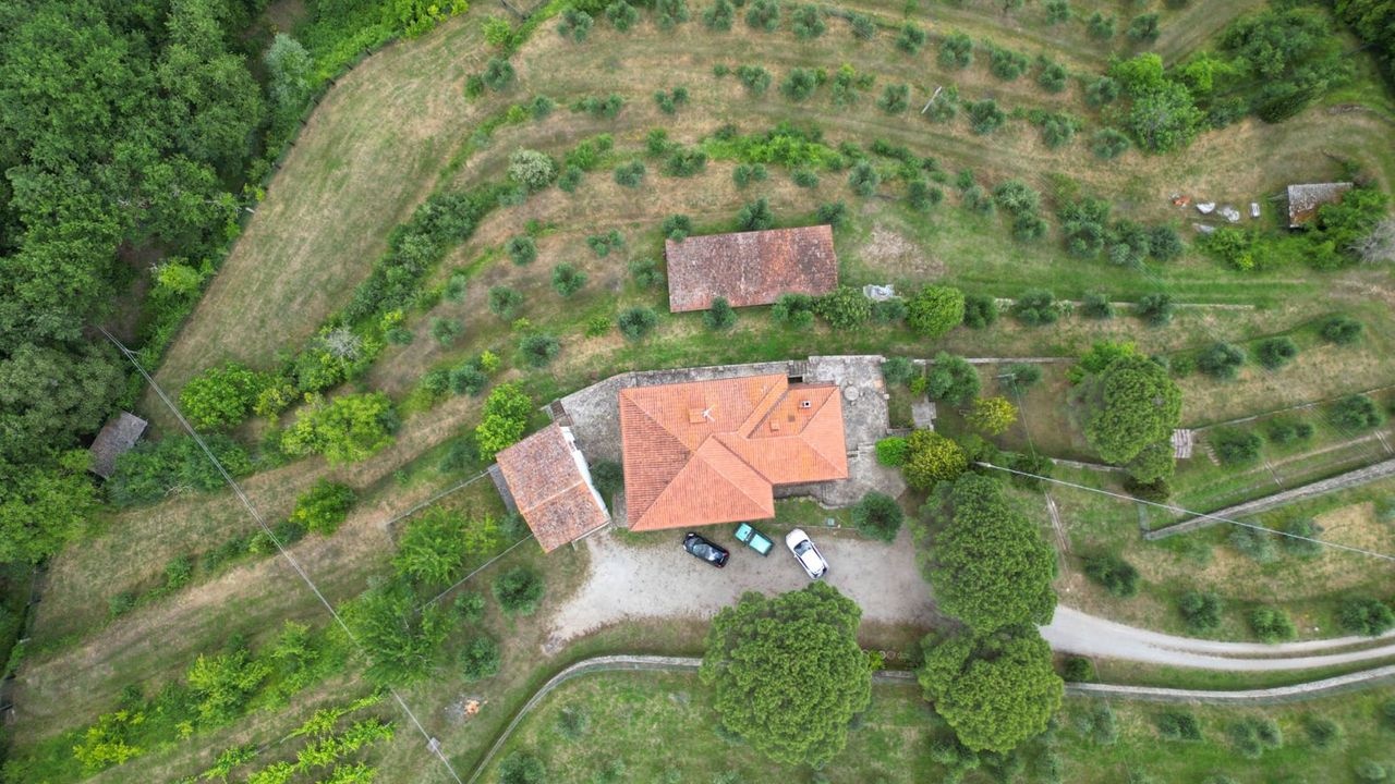 The property is surrounded by 5.4 ha of land divided into an olive grove with approximately 350 trees, a 3000 sqm vineyard, 1.50 ha of arable land and 1.28 ha of woodland.