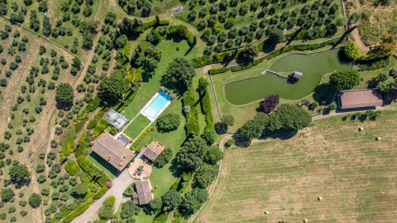 The property's 12.9 hectares extend over a gentle hillside and offer a variety of terrain, including a 3.9 ha olive grove that produces a quality extra-virgin olive oil, with olive varieties such as Leccino, Pendolino, Ciliegino, Frantoio and Correggiolo. In some seasons, the annual production can reach up to 1,500 kg of oil.