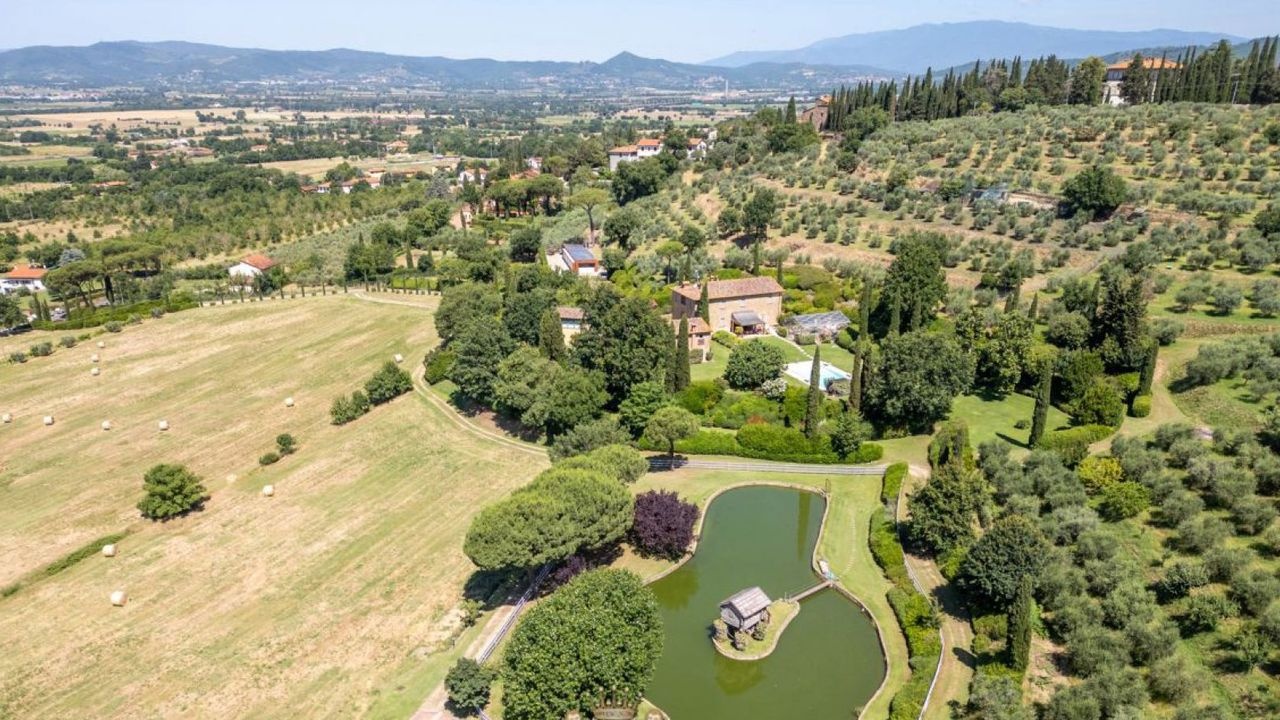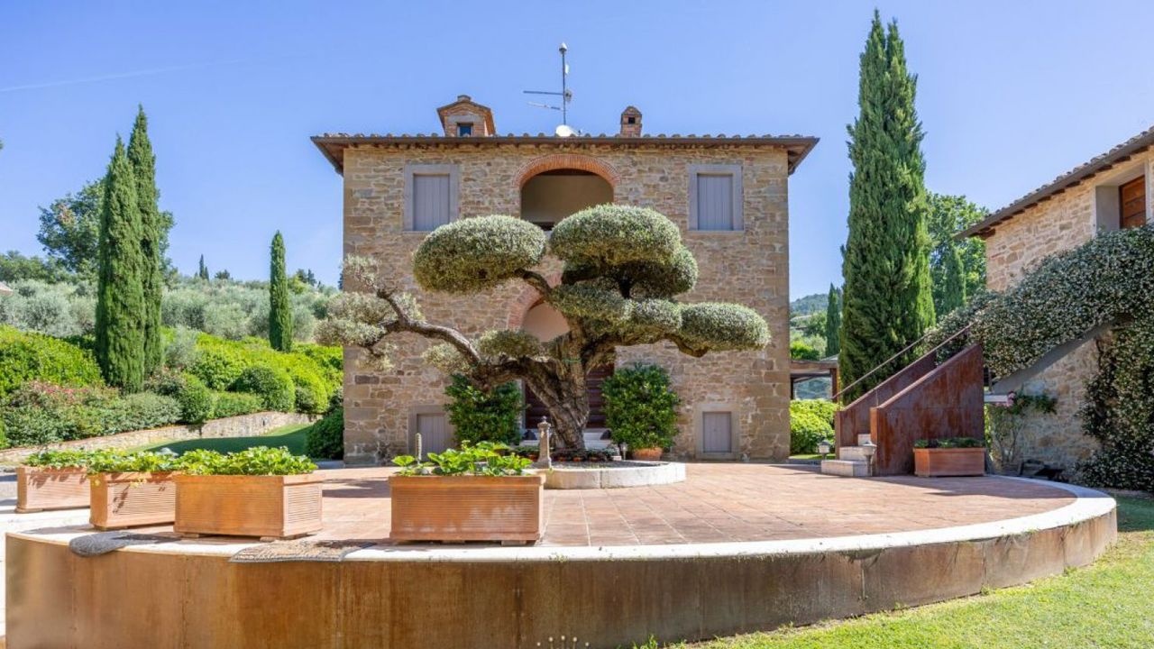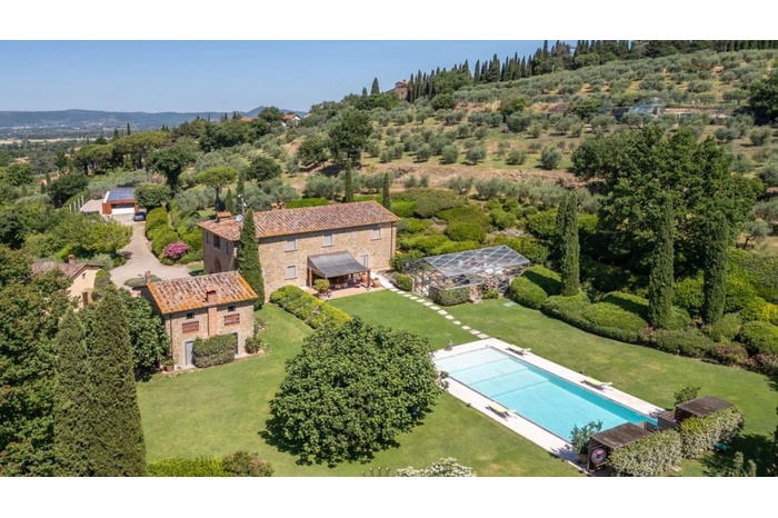 Luxury villa with agricultural land and olive grove, for sale in a beautiful hillside location just a few kilometres from Arezzo.