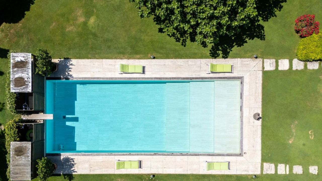 The enchanting garden of 7,350 sqm houses the wonderful swimming pool.